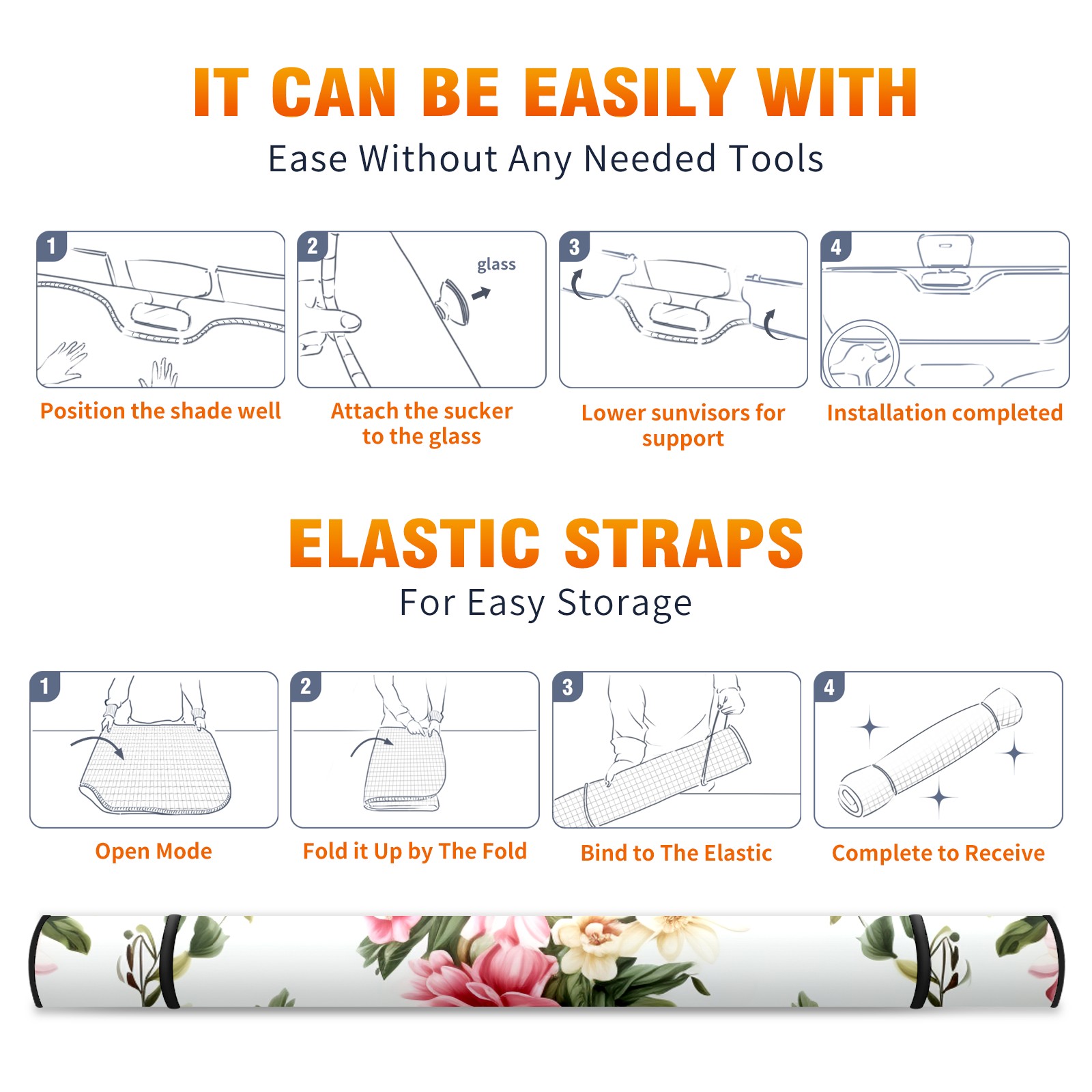 <b>ZXIVGOQFR Foldable Premium Car Windshield Sunshade is your great solution to reduce your car’s interior temperature dramatically! This is definitely a must-have item for your summer travel! </b> <br> ●<b>Size: 63"L x 33.5"W </b> <br></b> ●<b>Blocking Uv Rays & Heat Insulation<br></b> Our vehicle sunshade provides effective UV, sun, and summer heat protection .Maintains dashboards by preventing fading and cracking <br> ●<b>Easy-To-Store Folding Design Makes Storage Convenient <br></b> ZXIVGOQFR car sunshades come with removable suction cups and elastic bands that you can install easily and quickly, and the removable suction cups will not leave any marks on your windows when removed. Within seconds, windshield visor can be installed and removed. When not in use,the front windshield can be easily and effectively placed on the door pocket or the dashboard, which is beautiful and does not take up space in the car.<br> <br> <b>PUT UP A 'PROTECTIVE UMBRELLA' FOR YOUR BELOVED CAR!</b>