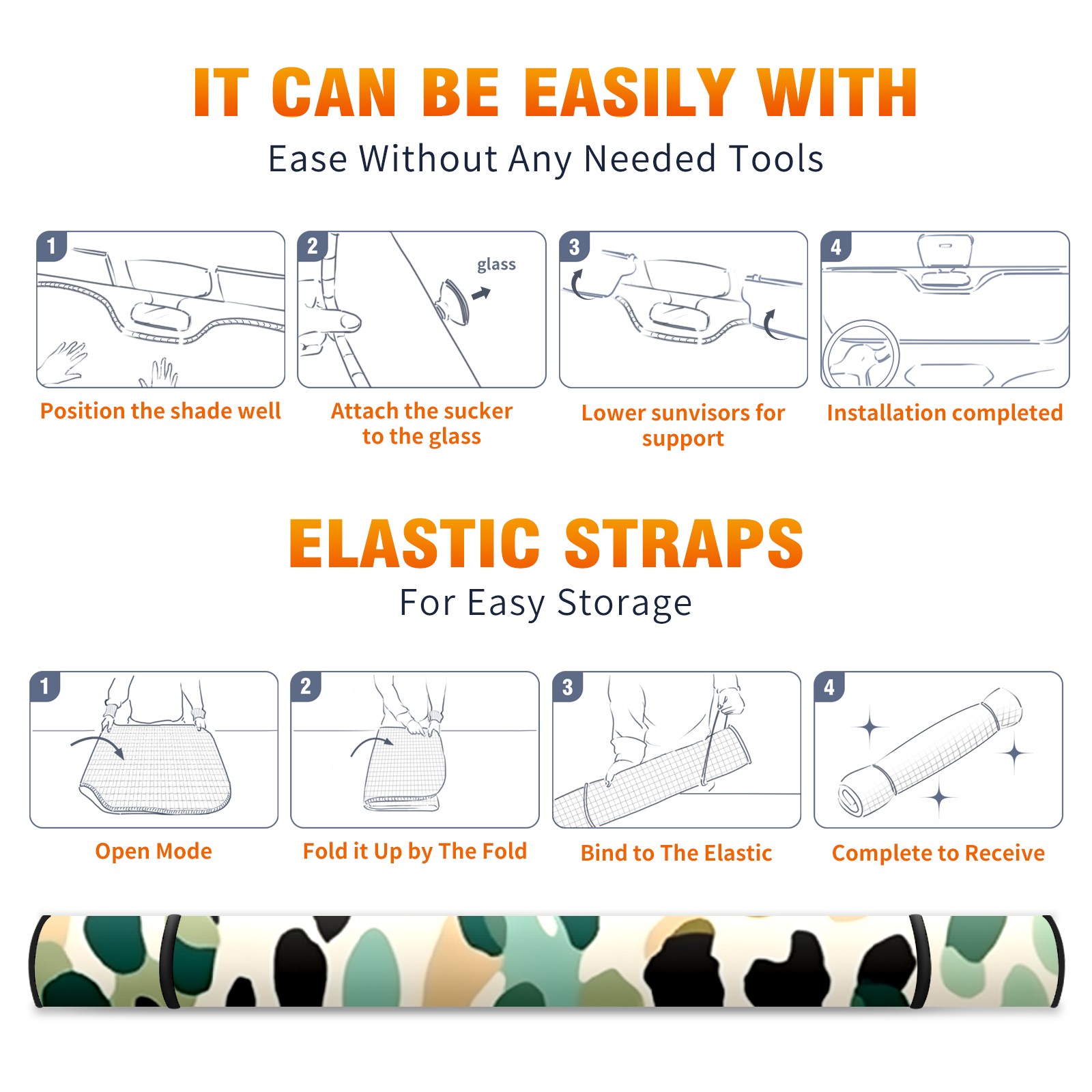 <b>ZXIVGOQFR Foldable Premium Car Windshield Sunshade is your great solution to reduce your car’s interior temperature dramatically! This is definitely a must-have item for your summer travel! </b> <br> ●<b>Size: 63"L x 33.5"W </b> <br></b> ●<b>Blocking Uv Rays & Heat Insulation<br></b> Our vehicle sunshade provides effective UV, sun, and summer heat protection .Maintains dashboards by preventing fading and cracking <br> ●<b>Easy-To-Store Folding Design Makes Storage Convenient <br></b> ZXIVGOQFR car sunshades come with removable suction cups and elastic bands that you can install easily and quickly, and the removable suction cups will not leave any marks on your windows when removed. Within seconds, windshield visor can be installed and removed. When not in use,the front windshield can be easily and effectively placed on the door pocket or the dashboard, which is beautiful and does not take up space in the car.<br> <br> <b>PUT UP A 'PROTECTIVE UMBRELLA' FOR YOUR BELOVED CAR!</b>