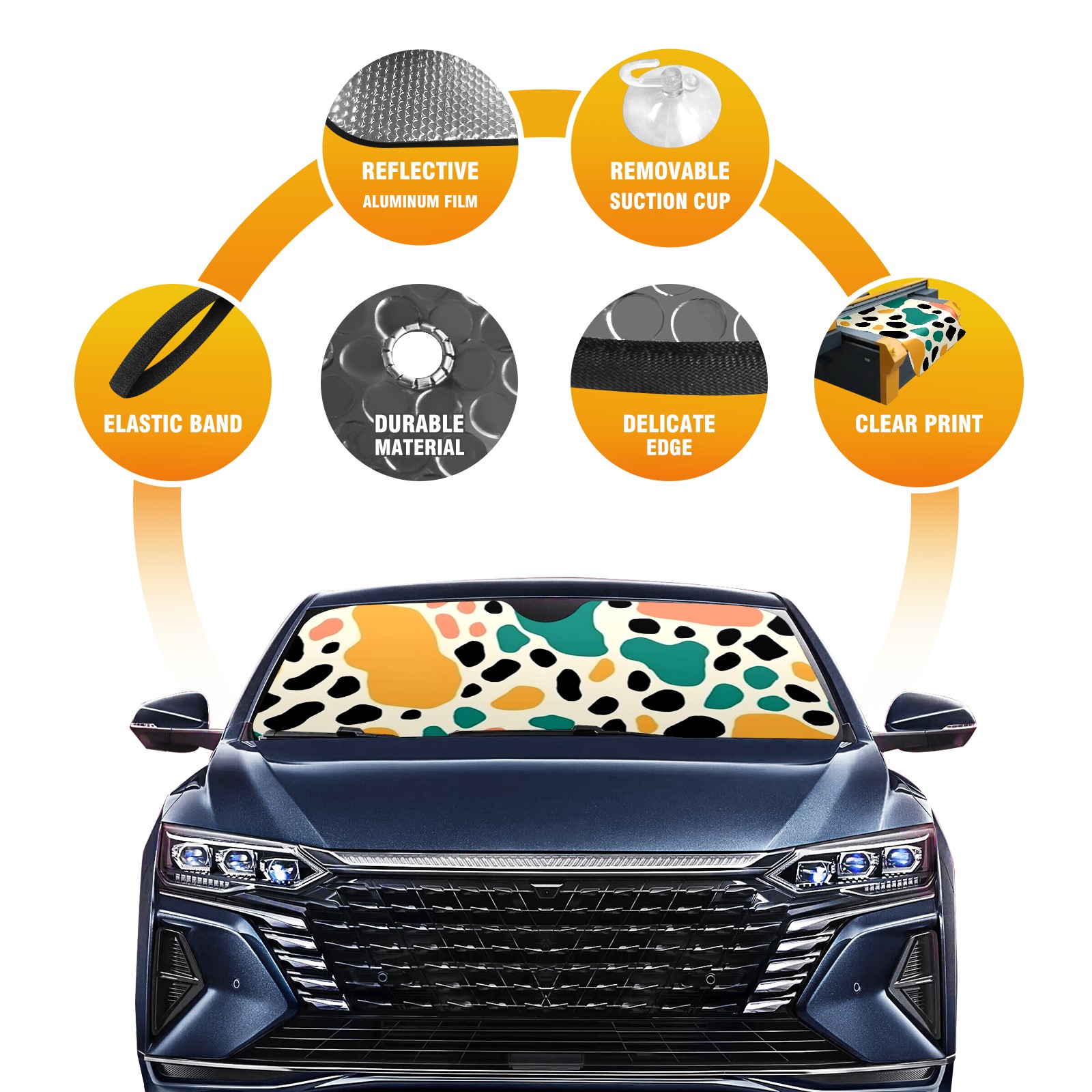 <b>ZXIVGOQFR Foldable Premium Car Windshield Sunshade is your great solution to reduce your car’s interior temperature dramatically! This is definitely a must-have item for your summer travel! </b> <br> ●<b>Size: 63"L x 33.5"W </b> <br></b> ●<b>Blocking Uv Rays & Heat Insulation<br></b> Our vehicle sunshade provides effective UV, sun, and summer heat protection .Maintains dashboards by preventing fading and cracking <br> ●<b>Easy-To-Store Folding Design Makes Storage Convenient <br></b> ZXIVGOQFR car sunshades come with removable suction cups and elastic bands that you can install easily and quickly, and the removable suction cups will not leave any marks on your windows when removed. Within seconds, windshield visor can be installed and removed. When not in use,the front windshield can be easily and effectively placed on the door pocket or the dashboard, which is beautiful and does not take up space in the car.<br> <br> <b>PUT UP A 'PROTECTIVE UMBRELLA' FOR YOUR BELOVED CAR!</b>