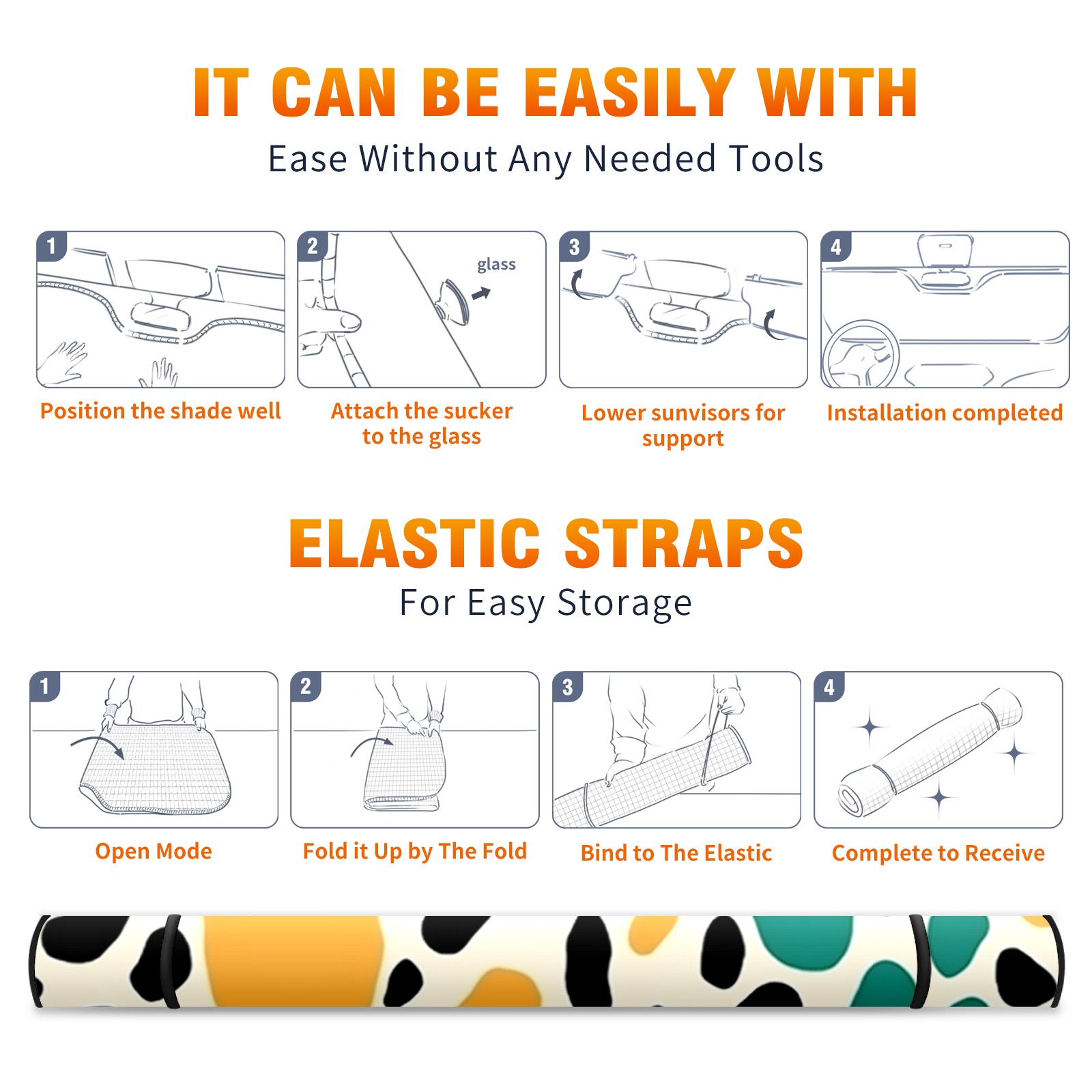 • <b>ZXIVGOQFR Foldable Premium Car Windshield Sunshade is your great solution to reduce your car’s interior temperature dramatically! This is definitely a must-have item for your summer travel! </b> <br> ●<b>Size: 63"L x 33.5"W </b> <br></b> ●<b>Blocking Uv Rays & Heat Insulation<br></b> Our vehicle sunshade provides effective UV, sun, and summer heat protection .Maintains dashboards by preventing fading and cracking <br> ●<b>Easy-To-Store Folding Design Makes Storage Convenient <br></b> ZXIVGOQFR car sunshades come with removable suction cups and elastic bands that you can install easily and quickly, and the removable suction cups will not leave any marks on your windows when removed. Within seconds, windshield visor can be installed and removed. When not in use,the front windshield can be easily and effectively placed on the door pocket or the dashboard, which is beautiful and does not take up space in the car.<br> <br> <b>PUT UP A 'PROTECTIVE UMBRELLA' FOR YOUR BELOVED CAR!</b>