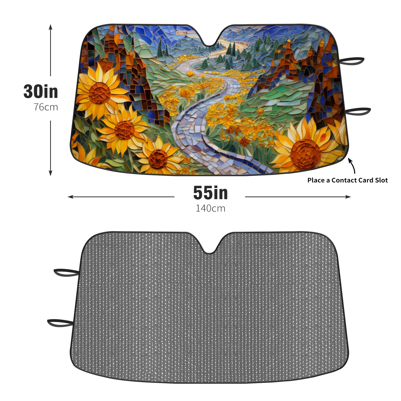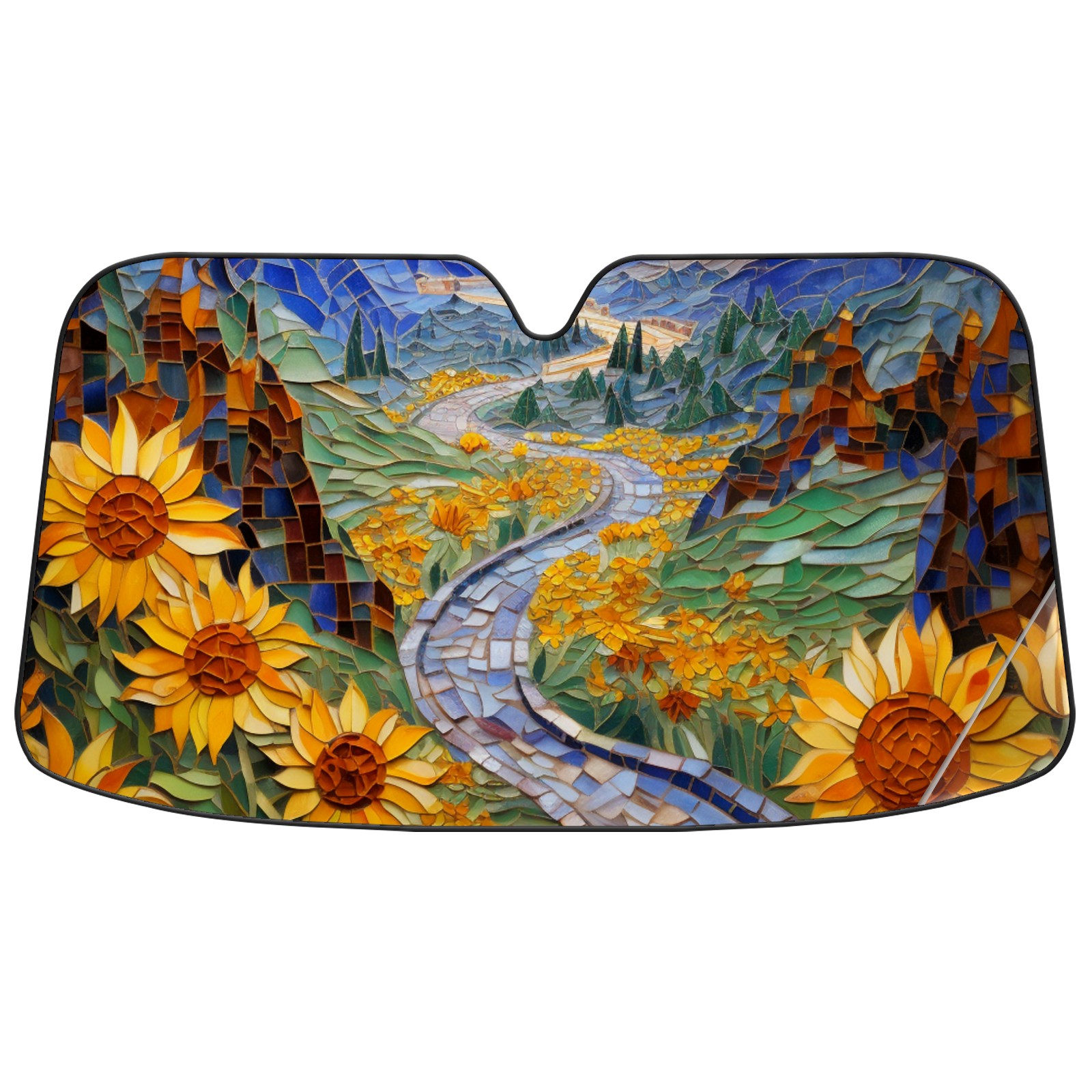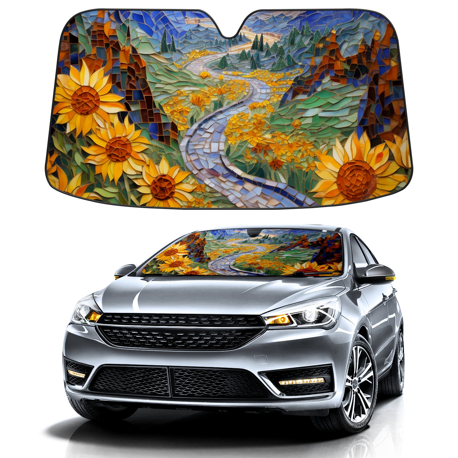 Car Windshield Sun Shade for Front Window Bjkj_tile_mosaic_early_mist_hiking_path_through_sunflower_fiel_605b2495-8d57-43a6-854f-40ada58255cf Foldable Vehicle Windshield Car Sun Visor Covers Automotive Window Protector Car Privacy Sun Blocker