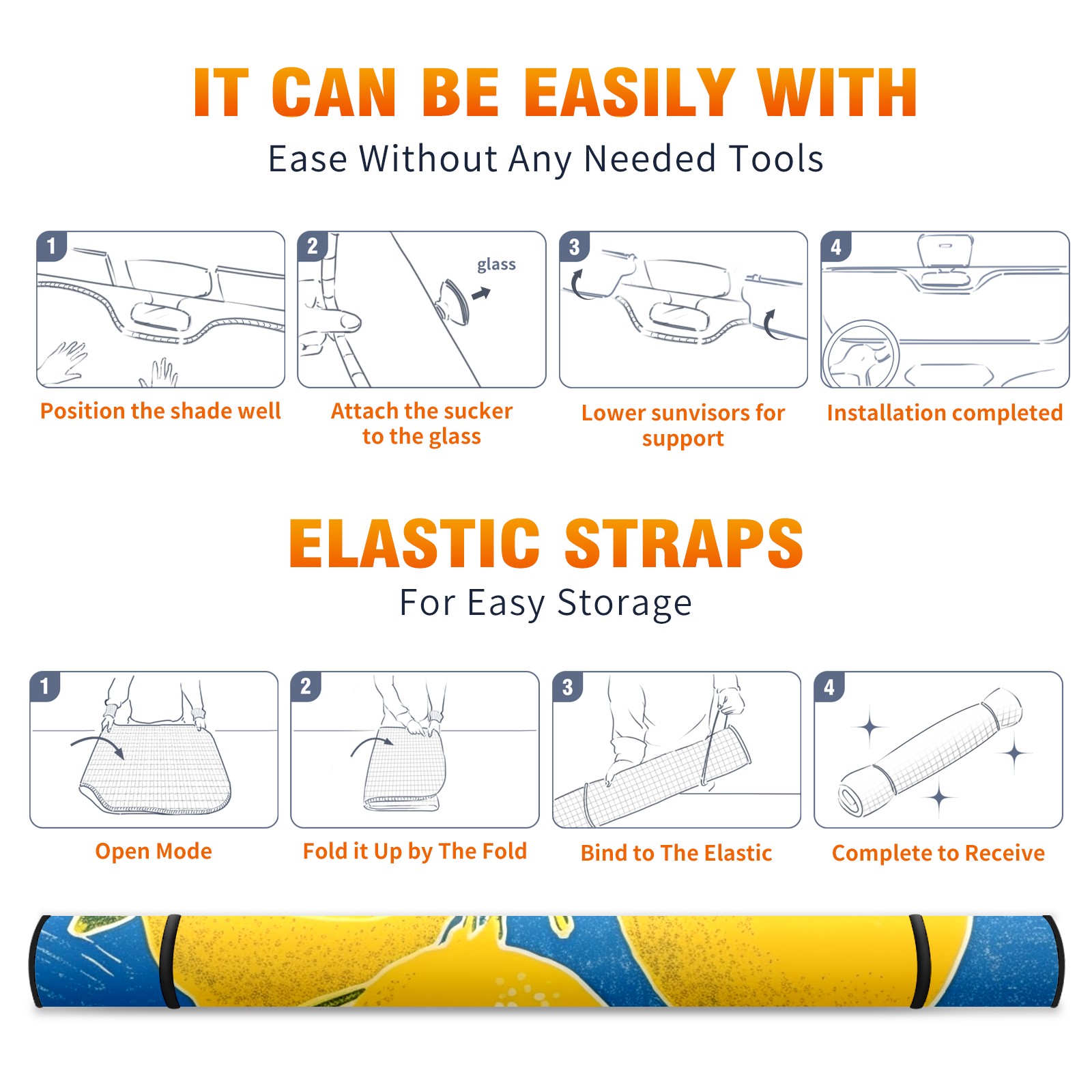 • <b>ZXIVGOQFR Foldable Premium Car Windshield Sunshade is your great solution to reduce your car’s interior temperature dramatically! This is definitely a must-have item for your summer travel! </b> <br> ●<b>Size: 63"L x 33.5"W </b> <br></b> ●<b>Blocking Uv Rays & Heat Insulation<br></b> Our vehicle sunshade provides effective UV, sun, and summer heat protection .Maintains dashboards by preventing fading and cracking <br> ●<b>Easy-To-Store Folding Design Makes Storage Convenient <br></b> ZXIVGOQFR car sunshades come with removable suction cups and elastic bands that you can install easily and quickly, and the removable suction cups will not leave any marks on your windows when removed. Within seconds, windshield visor can be installed and removed. When not in use,the front windshield can be easily and effectively placed on the door pocket or the dashboard, which is beautiful and does not take up space in the car.<br> <br> <b>PUT UP A 'PROTECTIVE UMBRELLA' FOR YOUR BELOVED CAR!</b>