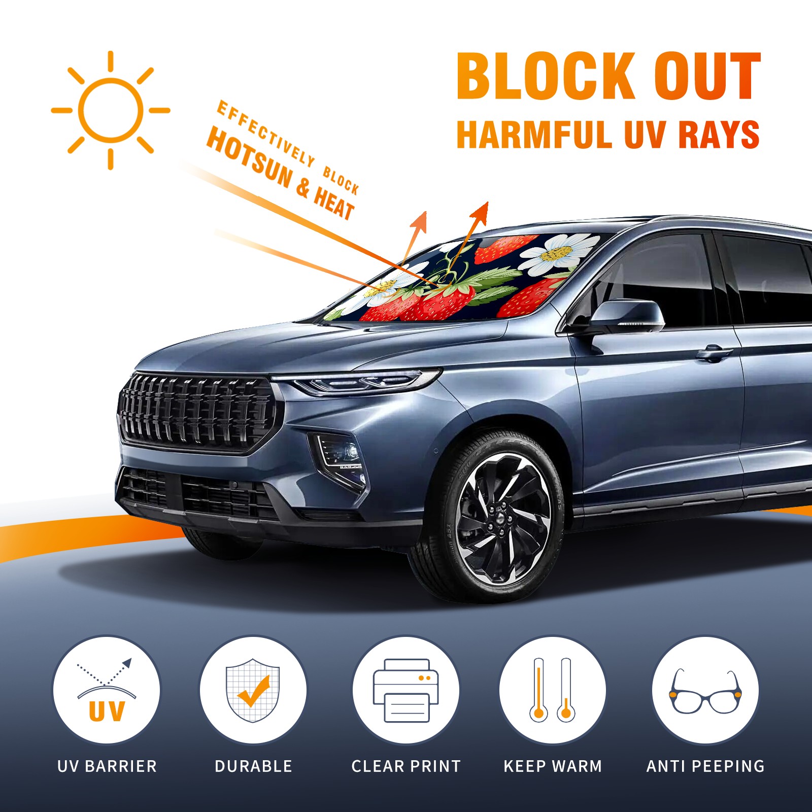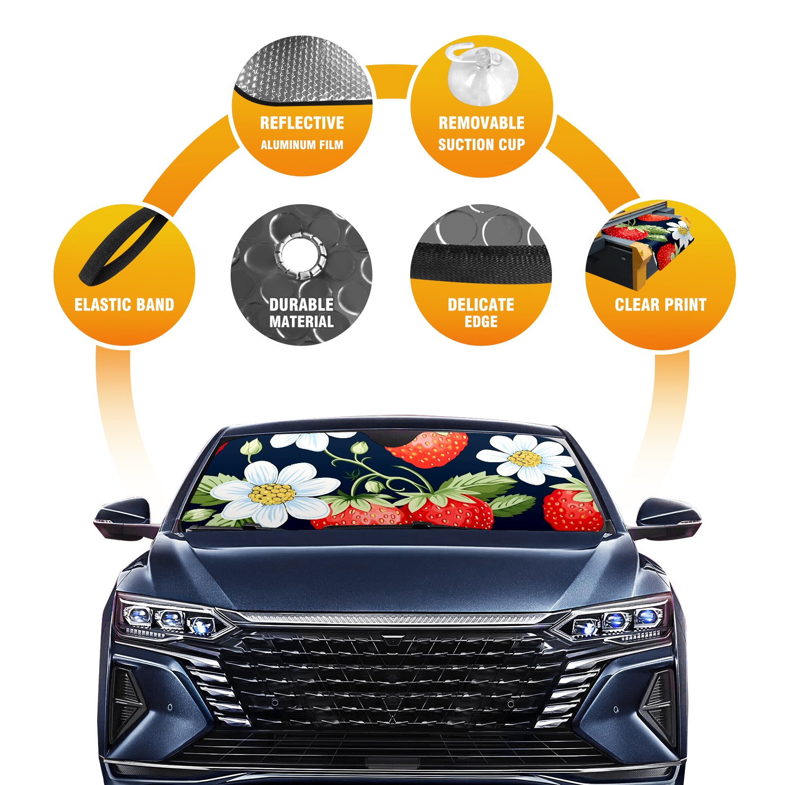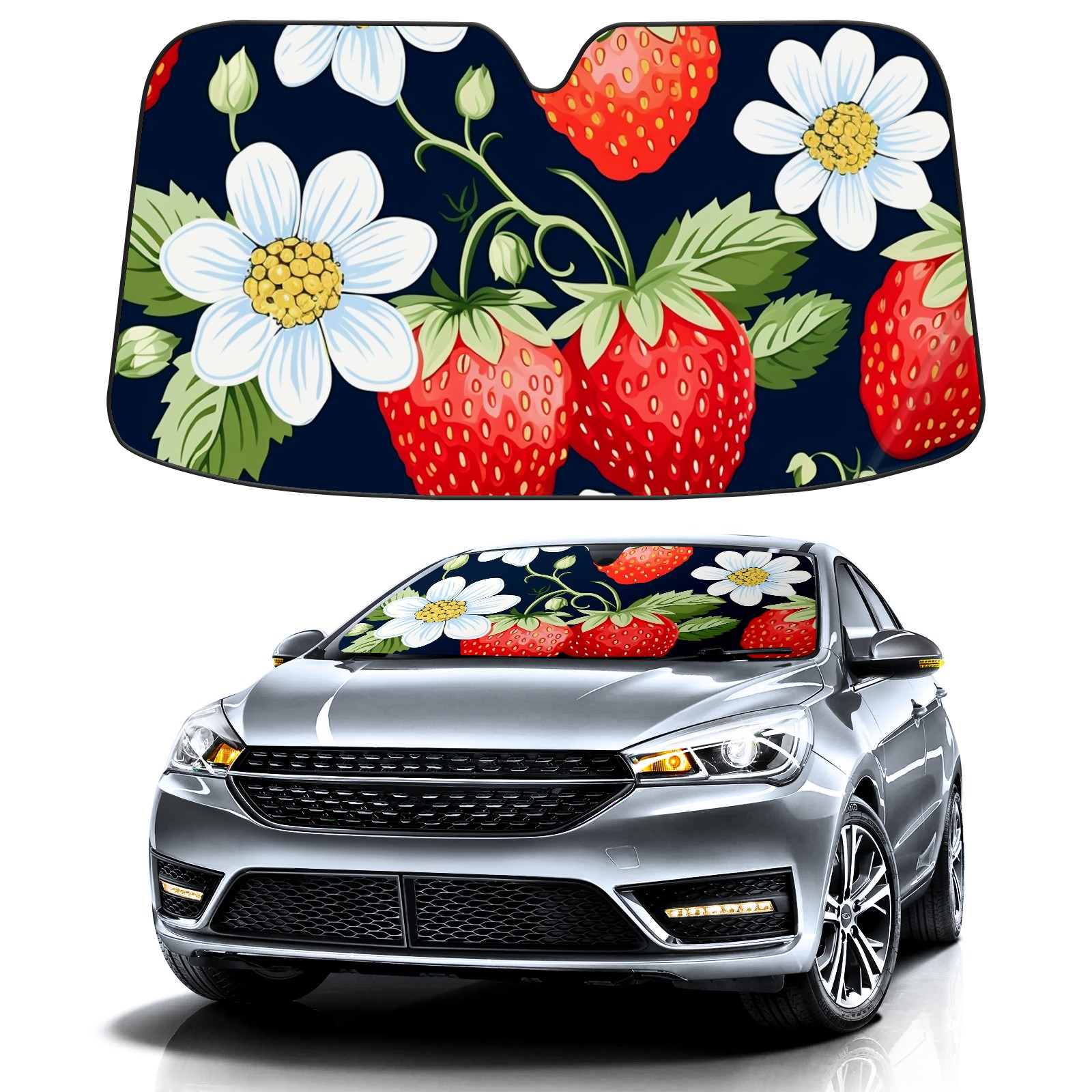 Car Windshield Sun Shade for Front Window Cute Strawberry (43) Foldable Vehicle Windshield Car Sun Visor Covers Automotive Window Protector Car Privacy Sun Blocker