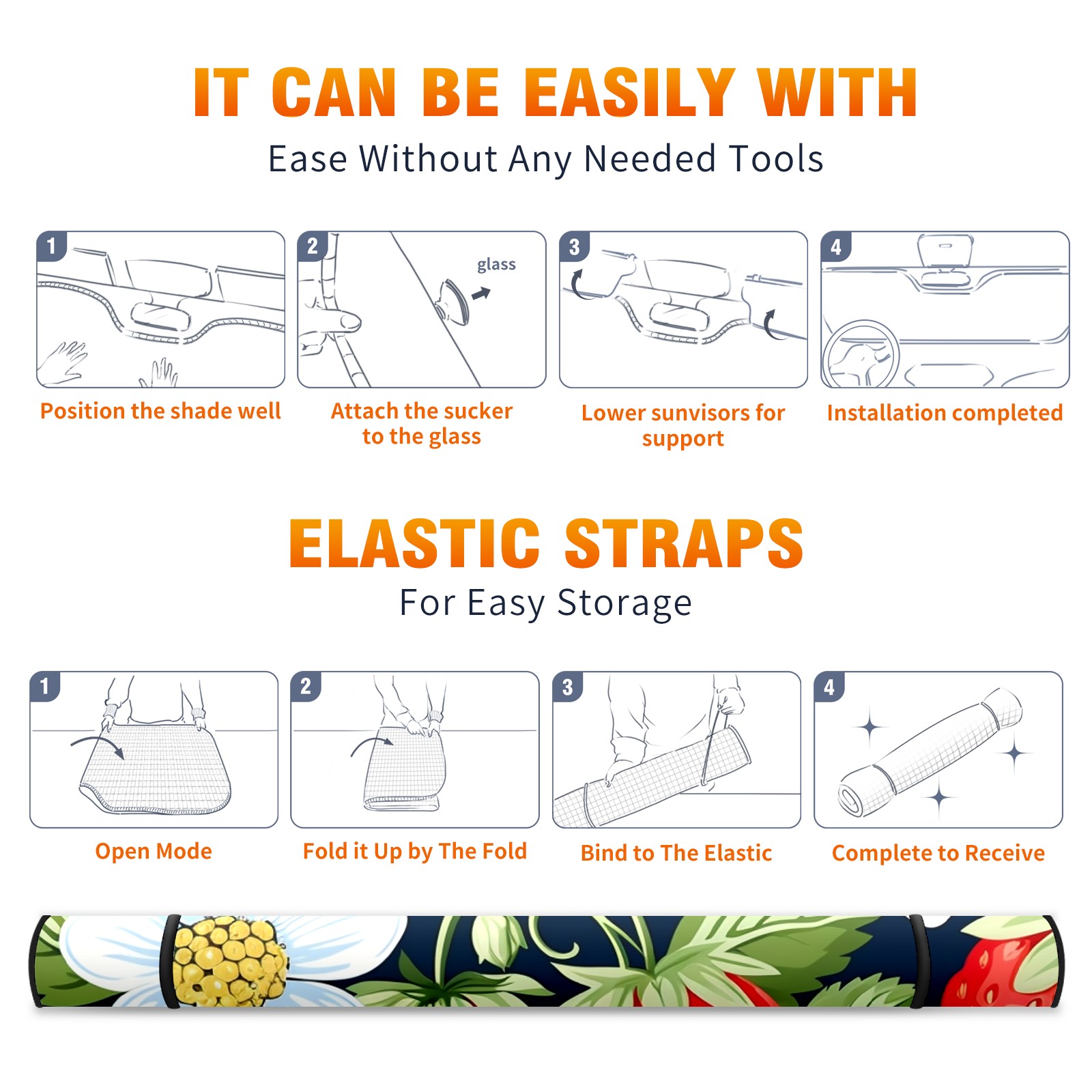 <b>ZXIVGOQFR Foldable Premium Car Windshield Sunshade is your great solution to reduce your car’s interior temperature dramatically! This is definitely a must-have item for your summer travel! </b> <br> ●<b>Size: 63"L x 33.5"W </b> <br></b> ●<b>Blocking Uv Rays & Heat Insulation<br></b> Our vehicle sunshade provides effective UV, sun, and summer heat protection .Maintains dashboards by preventing fading and cracking <br> ●<b>Easy-To-Store Folding Design Makes Storage Convenient <br></b> ZXIVGOQFR car sunshades come with removable suction cups and elastic bands that you can install easily and quickly, and the removable suction cups will not leave any marks on your windows when removed. Within seconds, windshield visor can be installed and removed. When not in use,the front windshield can be easily and effectively placed on the door pocket or the dashboard, which is beautiful and does not take up space in the car.<br> <br> <b>PUT UP A 'PROTECTIVE UMBRELLA' FOR YOUR BELOVED CAR!</b>