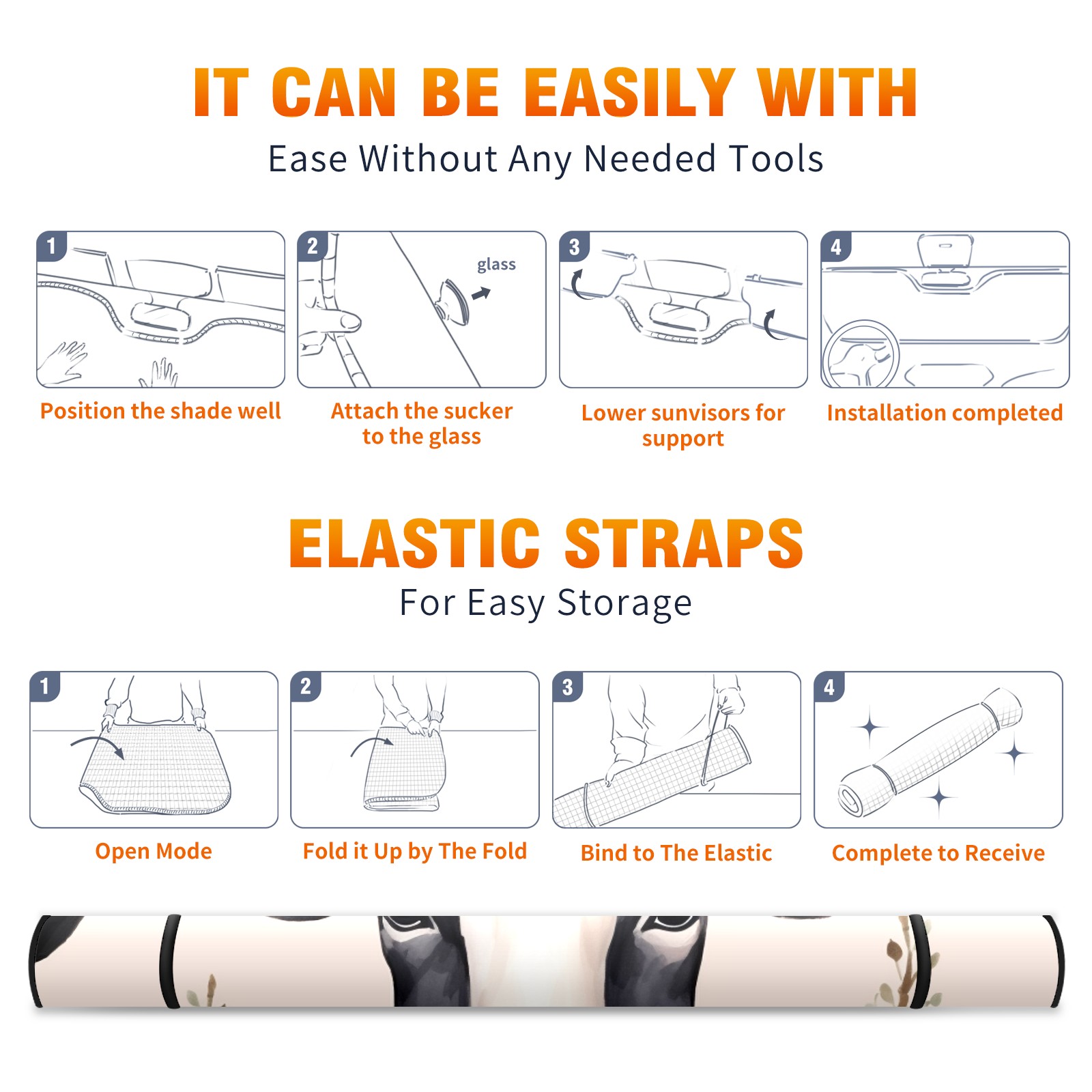 <b>ZXIVGOQFR Foldable Premium Car Windshield Sunshade is your great solution to reduce your car’s interior temperature dramatically! This is definitely a must-have item for your summer travel! </b> <br> ●<b>Size: 63"L x 33.5"W </b> <br></b> ●<b>Blocking Uv Rays & Heat Insulation<br></b> Our vehicle sunshade provides effective UV, sun, and summer heat protection .Maintains dashboards by preventing fading and cracking <br> ●<b>Easy-To-Store Folding Design Makes Storage Convenient <br></b> ZXIVGOQFR car sunshades come with removable suction cups and elastic bands that you can install easily and quickly, and the removable suction cups will not leave any marks on your windows when removed. Within seconds, windshield visor can be installed and removed. When not in use,the front windshield can be easily and effectively placed on the door pocket or the dashboard, which is beautiful and does not take up space in the car.<br> <br> <b>PUT UP A 'PROTECTIVE UMBRELLA' FOR YOUR BELOVED CAR!</b>