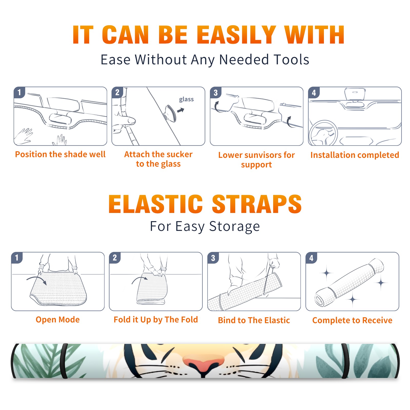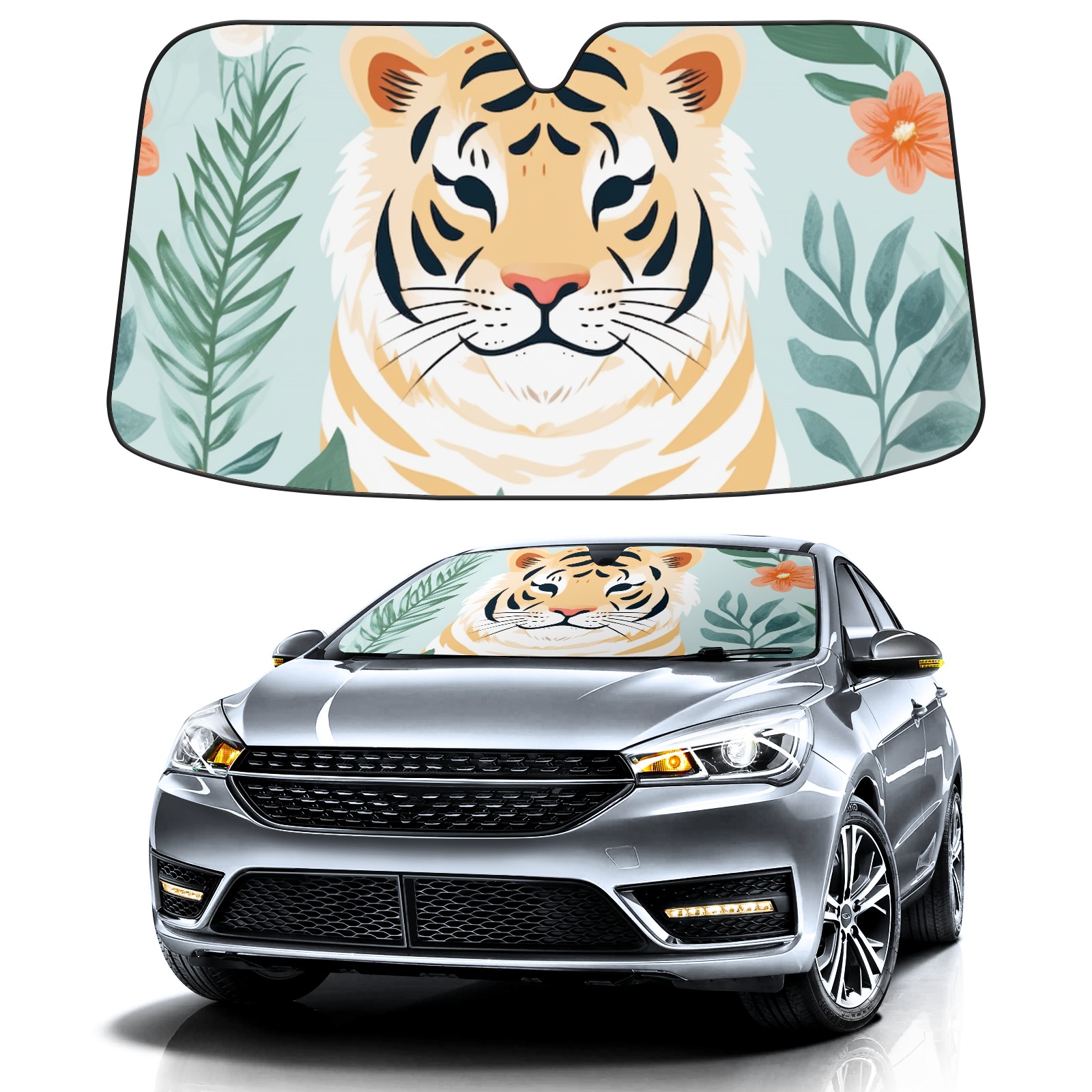 Car Windshield Sun Shade for Front Window Cute Tiger (16) Foldable Vehicle Windshield Car Sun Visor Covers Automotive Window Protector Car Privacy Sun Blocker