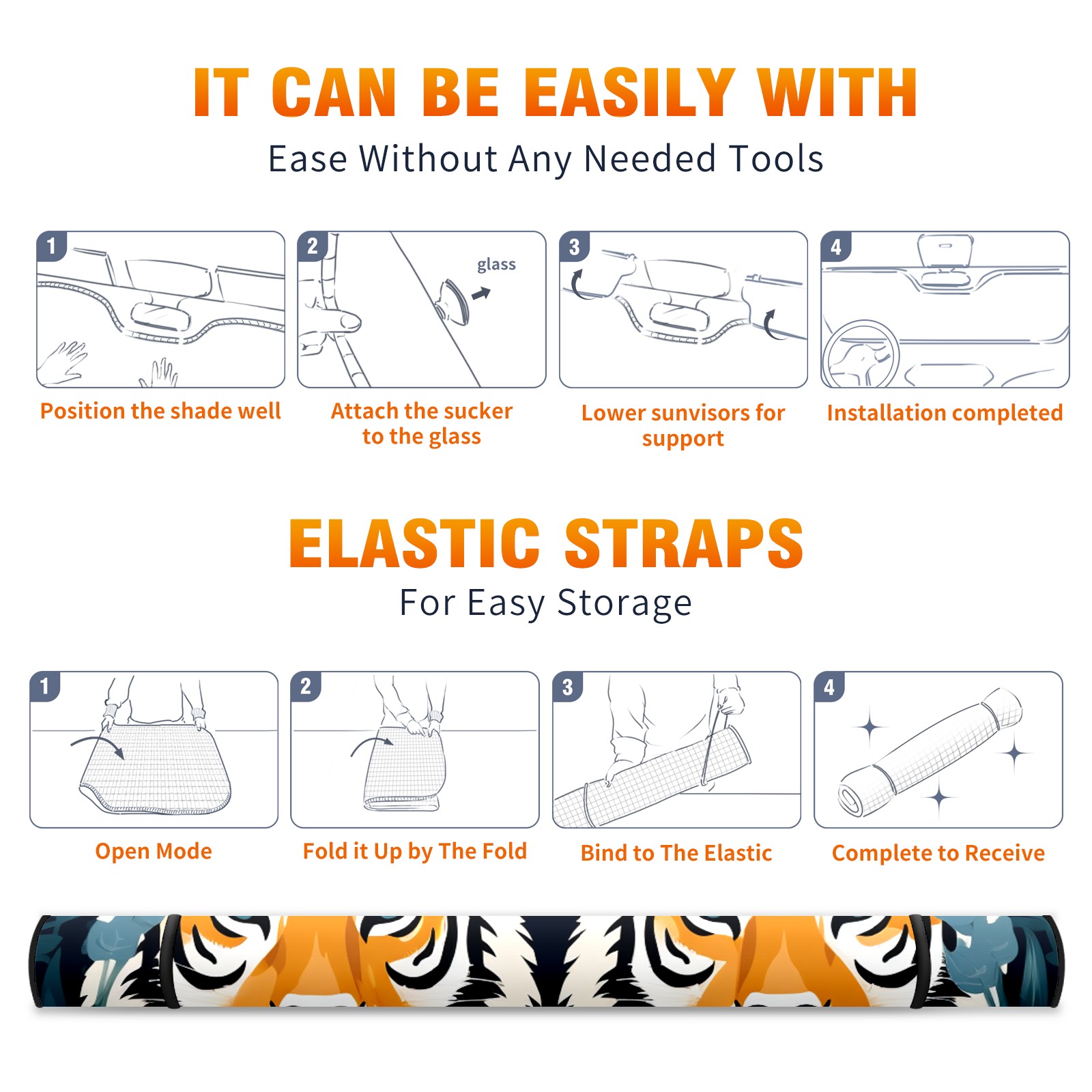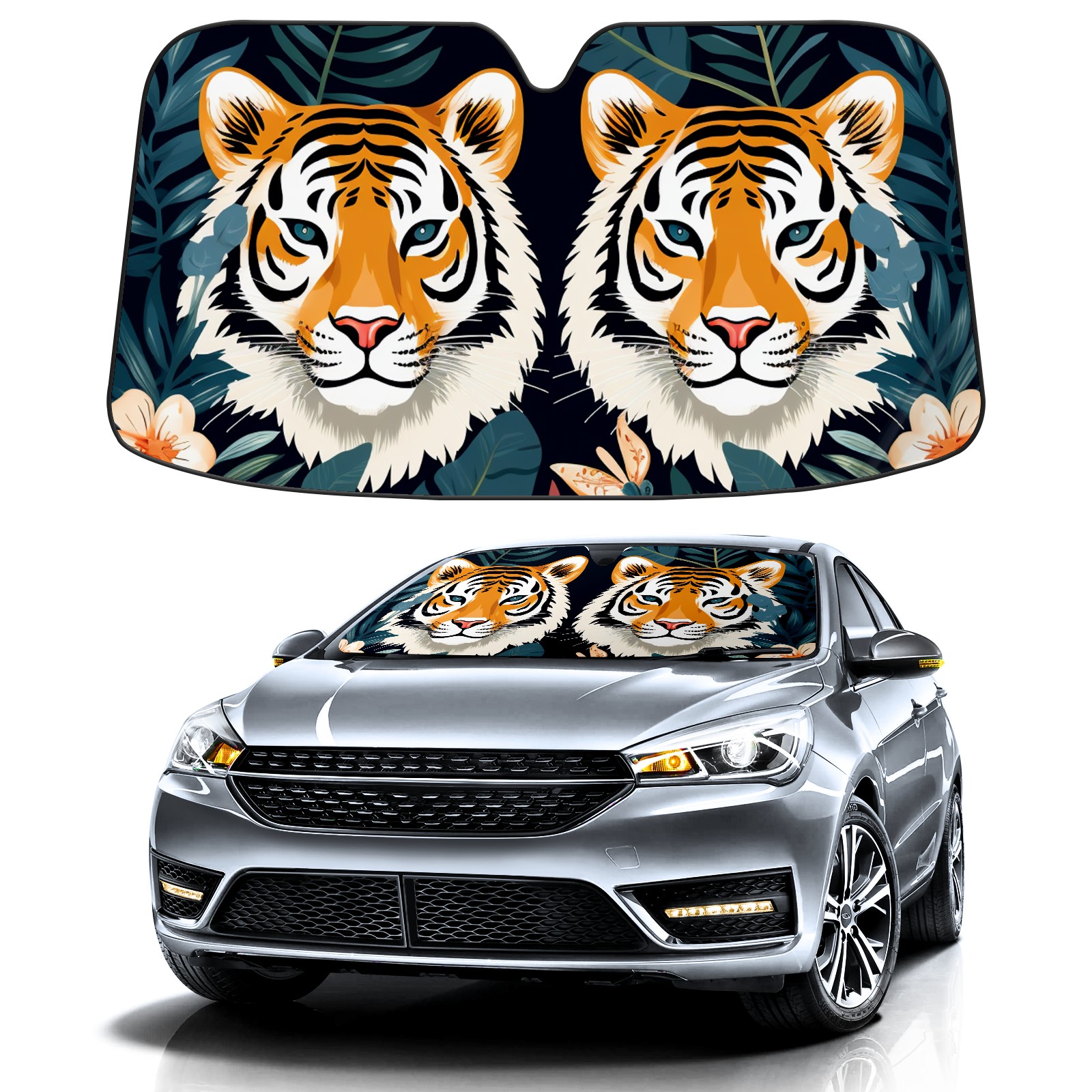 Car Windshield Sun Shade for Front Window Cute Tiger (27) Foldable Vehicle Windshield Car Sun Visor Covers Automotive Window Protector Car Privacy Sun Blocker
