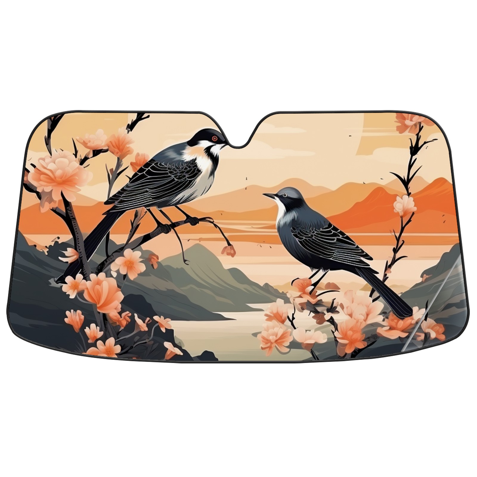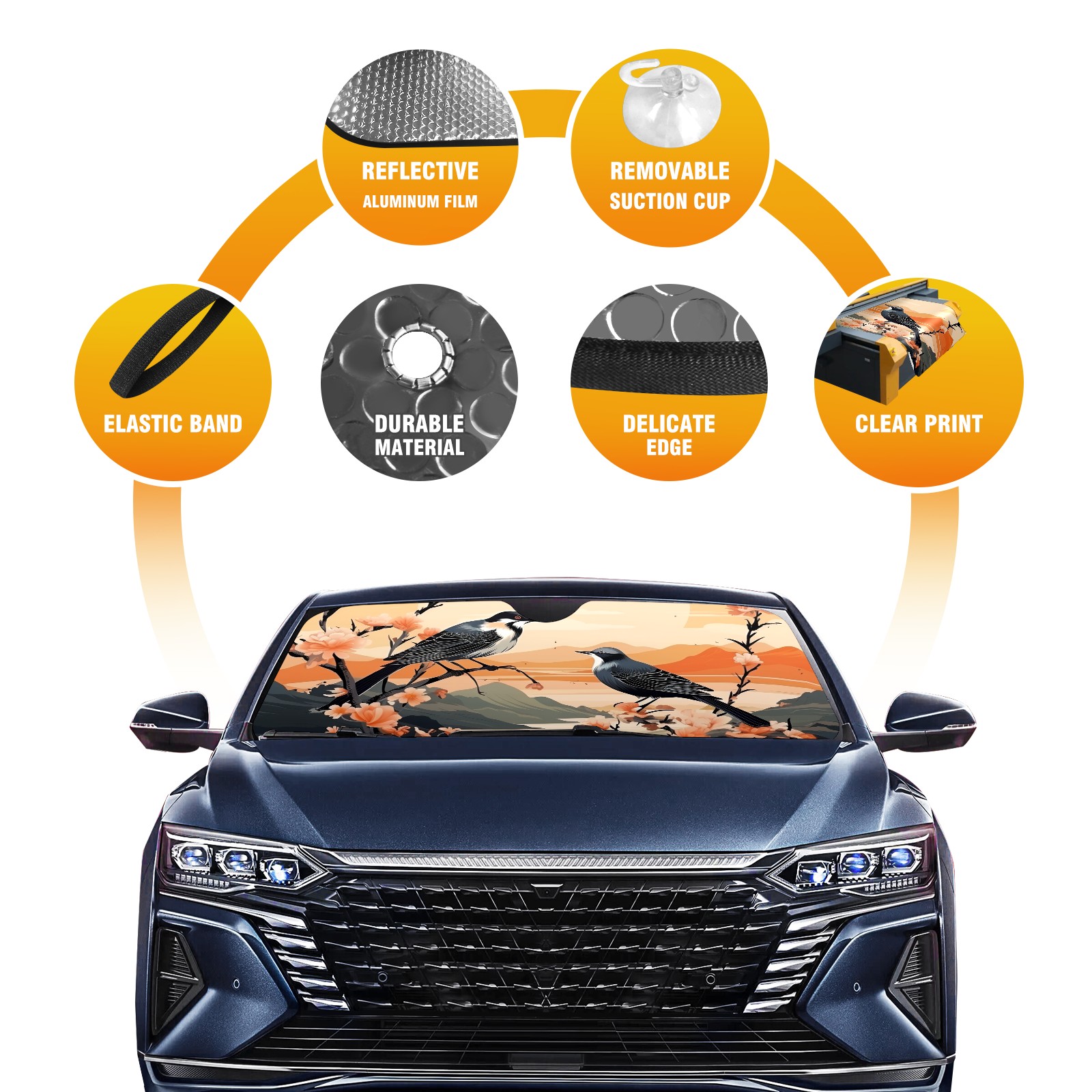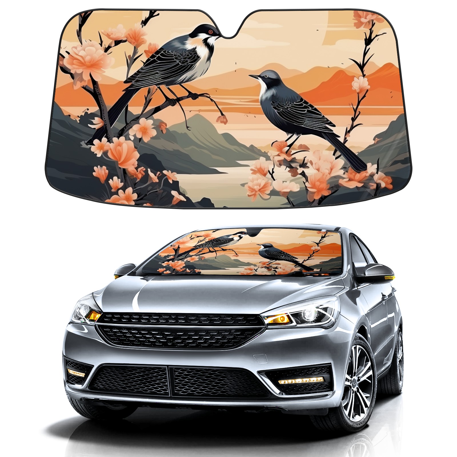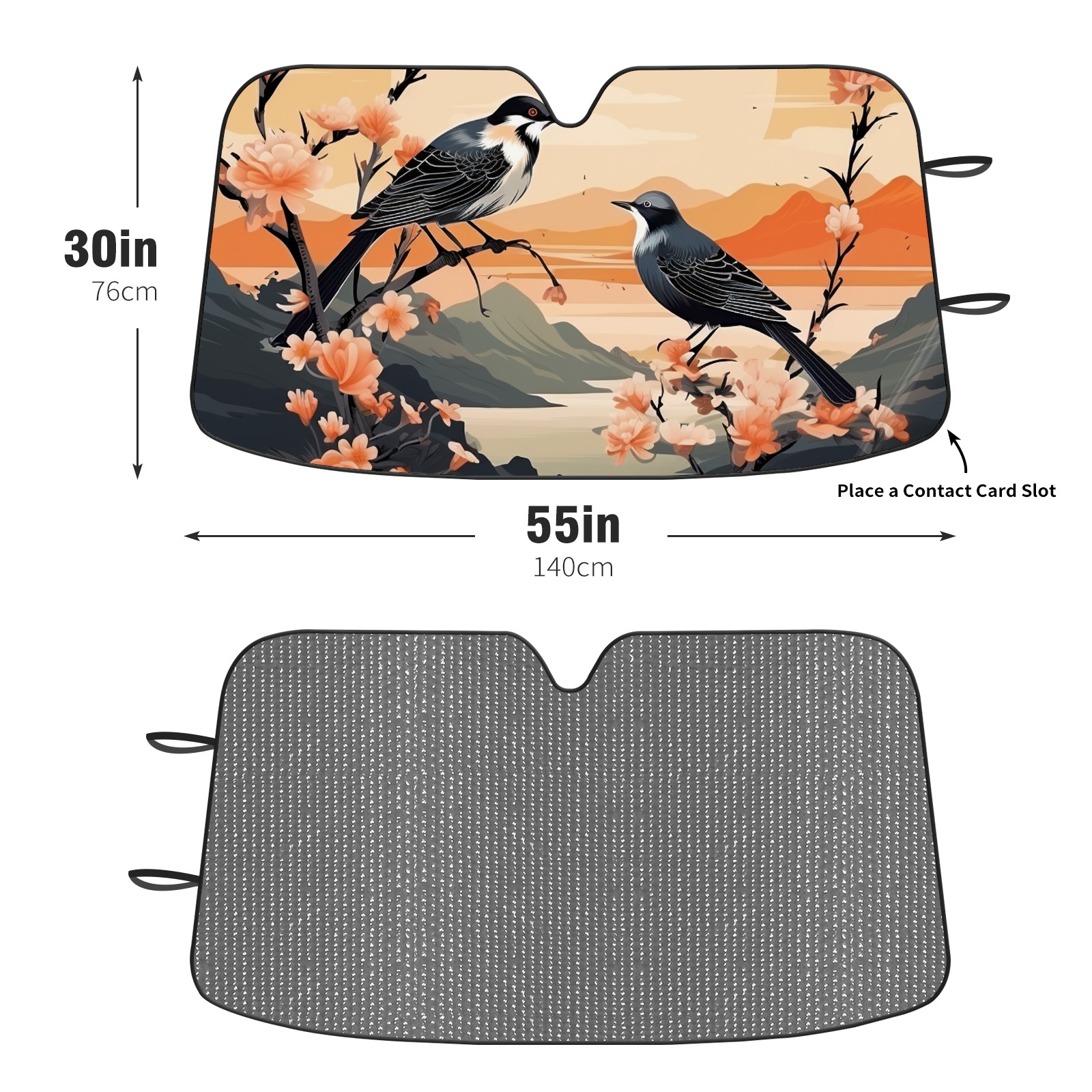 Car Windshield Sun Shade for Front Window Chinese Painting Bird (7) Foldable Vehicle Windshield Car Sun Visor Covers Automotive Window Protector Car Privacy Sun Blocker