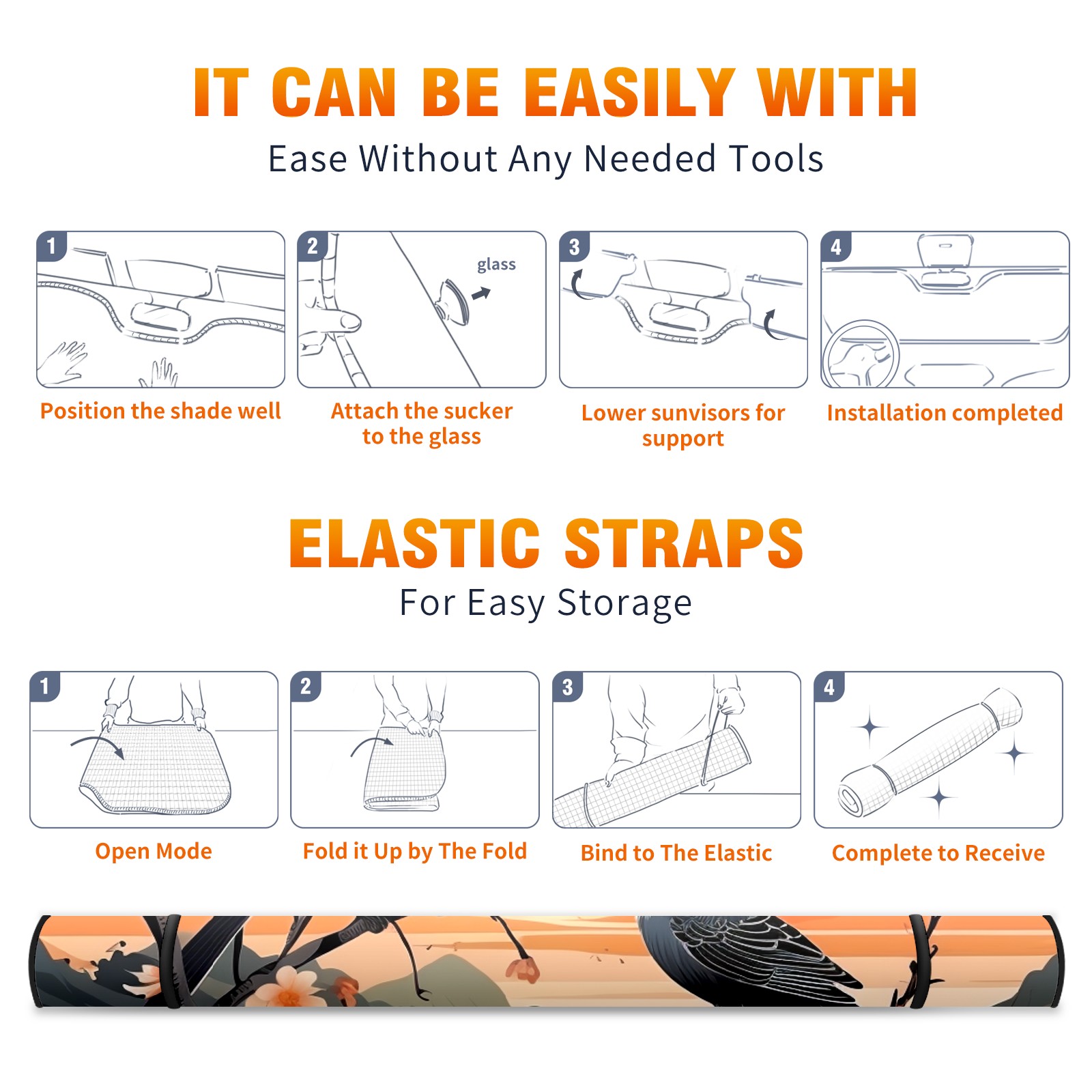 <b>ZXIVGOQFR Foldable Premium Car Windshield Sunshade is your great solution to reduce your car’s interior temperature dramatically! This is definitely a must-have item for your summer travel! </b> <br> ●<b>Size: 63"L x 33.5"W </b> <br></b> ●<b>Blocking Uv Rays & Heat Insulation<br></b> Our vehicle sunshade provides effective UV, sun, and summer heat protection .Maintains dashboards by preventing fading and cracking <br> ●<b>Easy-To-Store Folding Design Makes Storage Convenient <br></b> ZXIVGOQFR car sunshades come with removable suction cups and elastic bands that you can install easily and quickly, and the removable suction cups will not leave any marks on your windows when removed. Within seconds, windshield visor can be installed and removed. When not in use,the front windshield can be easily and effectively placed on the door pocket or the dashboard, which is beautiful and does not take up space in the car.<br> <br> <b>PUT UP A 'PROTECTIVE UMBRELLA' FOR YOUR BELOVED CAR!</b>