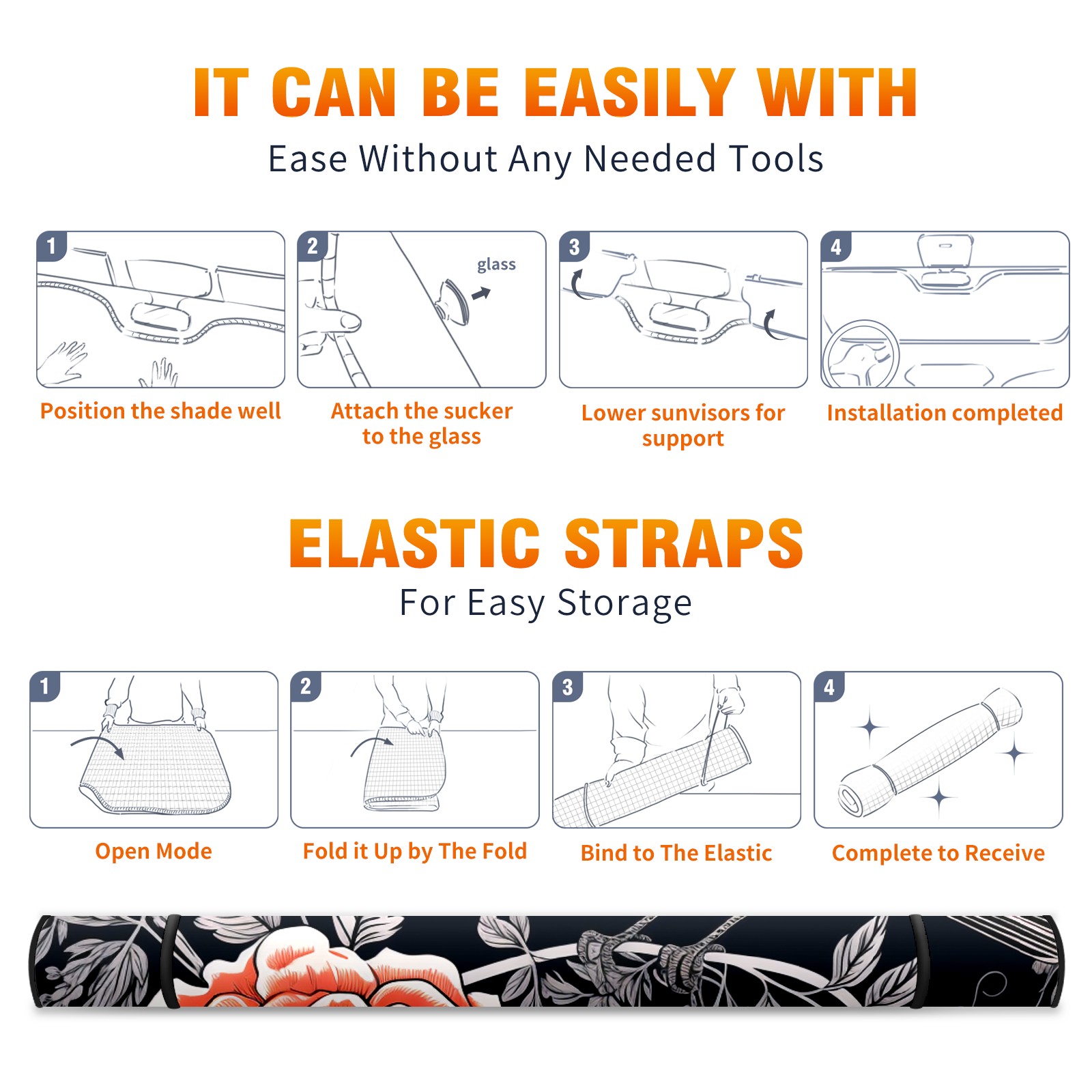 <b>ZXIVGOQFR Foldable Premium Car Windshield Sunshade is your great solution to reduce your car’s interior temperature dramatically! This is definitely a must-have item for your summer travel! </b> <br> ●<b>Size: 63"L x 33.5"W </b> <br></b> ●<b>Blocking Uv Rays & Heat Insulation<br></b> Our vehicle sunshade provides effective UV, sun, and summer heat protection .Maintains dashboards by preventing fading and cracking <br> ●<b>Easy-To-Store Folding Design Makes Storage Convenient <br></b> ZXIVGOQFR car sunshades come with removable suction cups and elastic bands that you can install easily and quickly, and the removable suction cups will not leave any marks on your windows when removed. Within seconds, windshield visor can be installed and removed. When not in use,the front windshield can be easily and effectively placed on the door pocket or the dashboard, which is beautiful and does not take up space in the car.<br> <br> <b>PUT UP A 'PROTECTIVE UMBRELLA' FOR YOUR BELOVED CAR!</b>