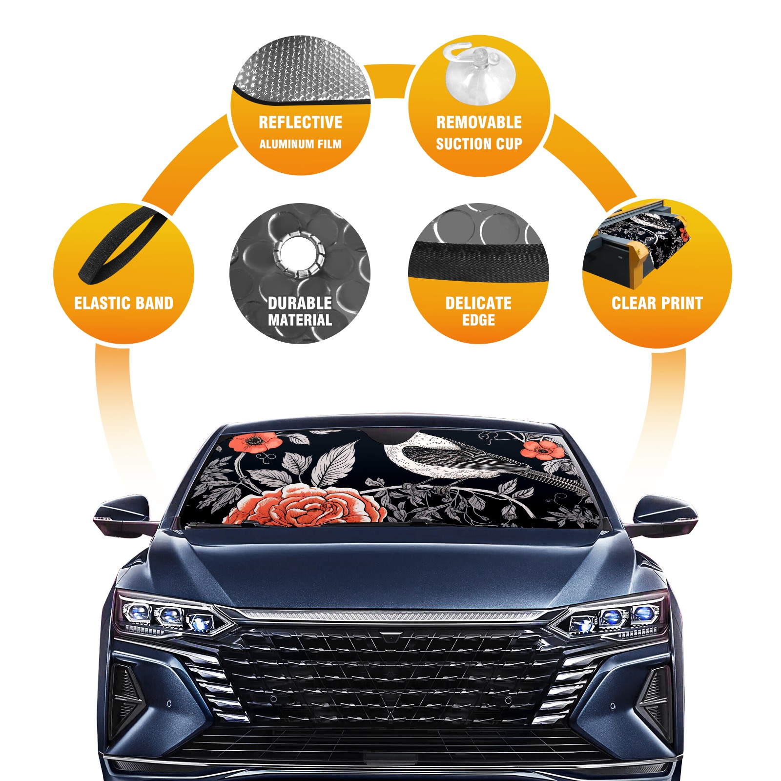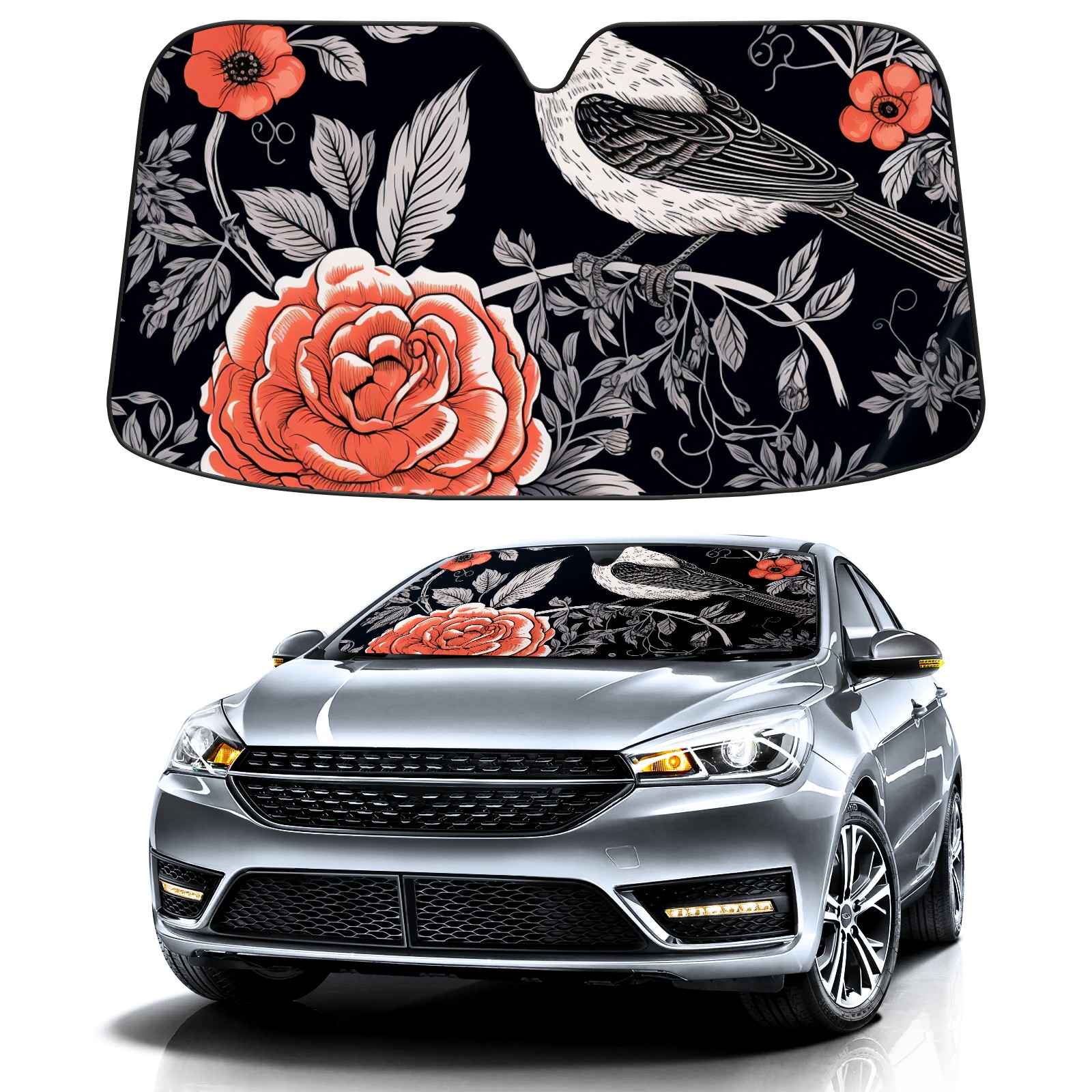 Car Windshield Sun Shade for Front Window Chinese Painting Bird (40) Foldable Vehicle Windshield Car Sun Visor Covers Automotive Window Protector Car Privacy Sun Blocker