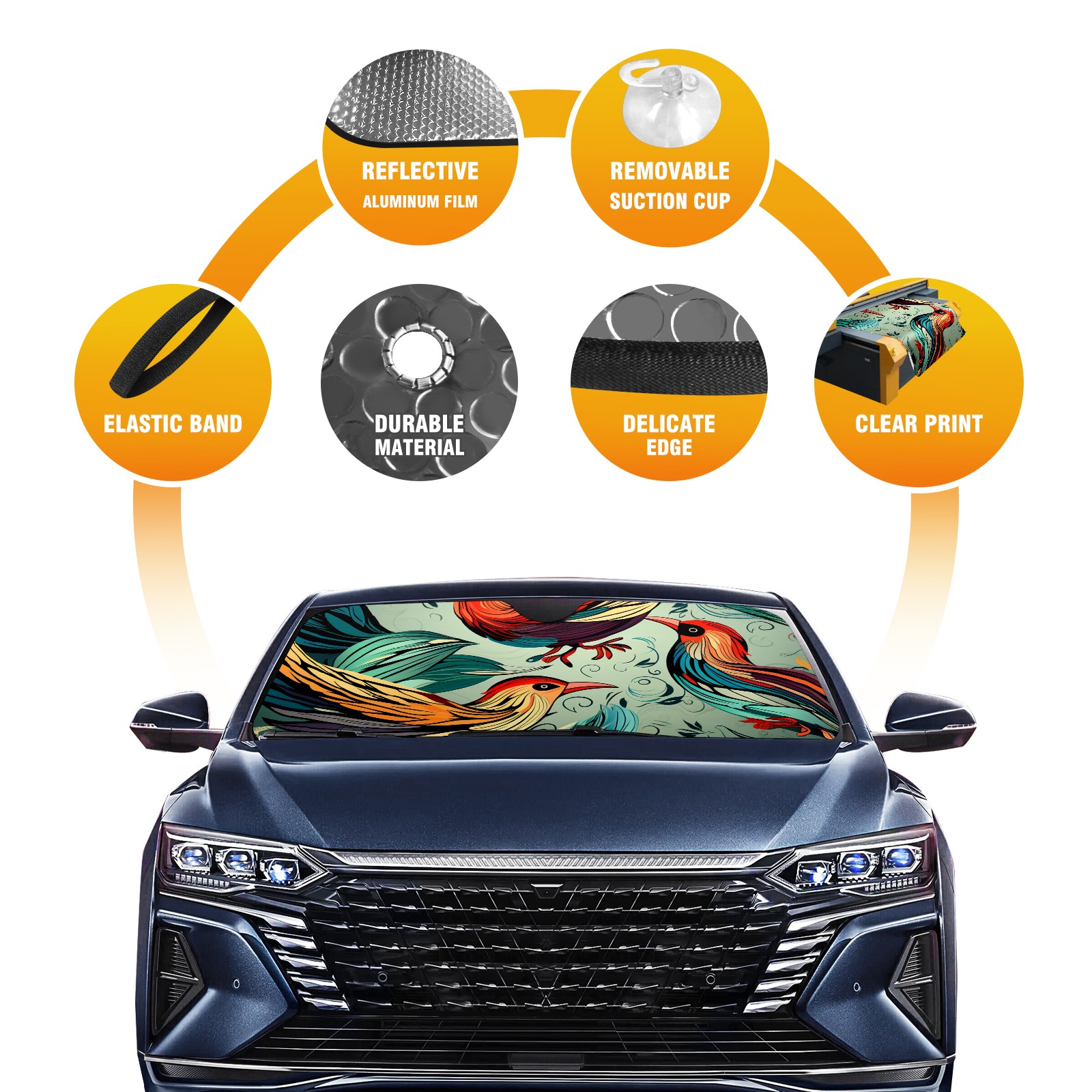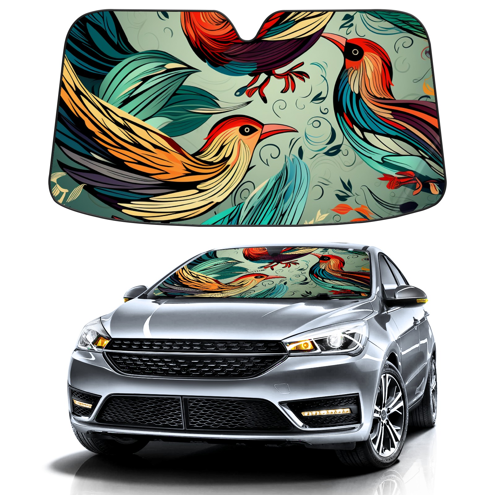 Car Windshield Sun Shade for Front Window Chinese Painting Bird (60) Foldable Vehicle Windshield Car Sun Visor Covers Automotive Window Protector Car Privacy Sun Blocker