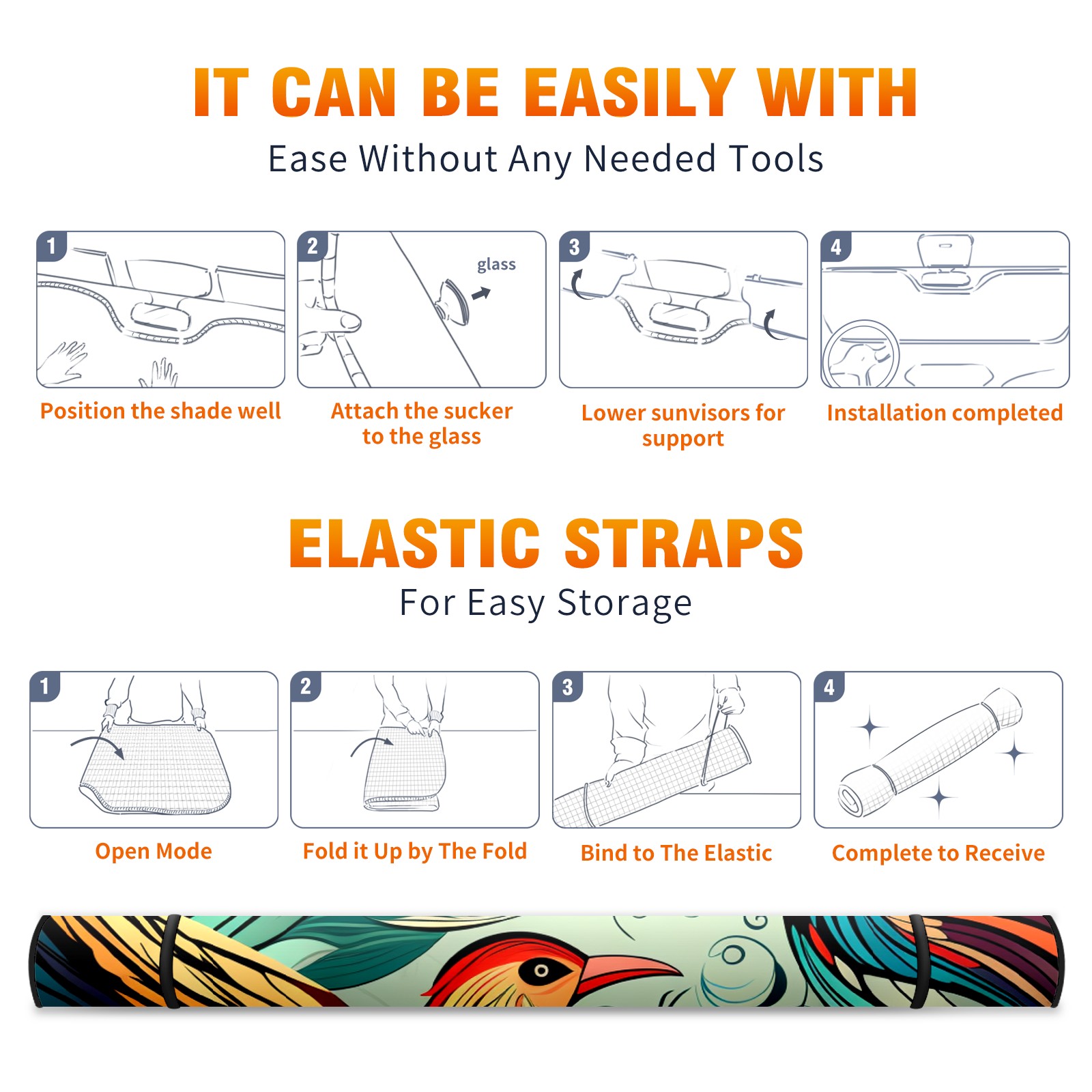 • <b>ZXIVGOQFR Foldable Premium Car Windshield Sunshade is your great solution to reduce your car’s interior temperature dramatically! This is definitely a must-have item for your summer travel! </b> <br> ●<b>Size: 63"L x 33.5"W </b> <br></b> ●<b>Blocking Uv Rays & Heat Insulation<br></b> Our vehicle sunshade provides effective UV, sun, and summer heat protection .Maintains dashboards by preventing fading and cracking <br> ●<b>Easy-To-Store Folding Design Makes Storage Convenient <br></b> ZXIVGOQFR car sunshades come with removable suction cups and elastic bands that you can install easily and quickly, and the removable suction cups will not leave any marks on your windows when removed. Within seconds, windshield visor can be installed and removed. When not in use,the front windshield can be easily and effectively placed on the door pocket or the dashboard, which is beautiful and does not take up space in the car.<br> <br> <b>PUT UP A 'PROTECTIVE UMBRELLA' FOR YOUR BELOVED CAR!</b>