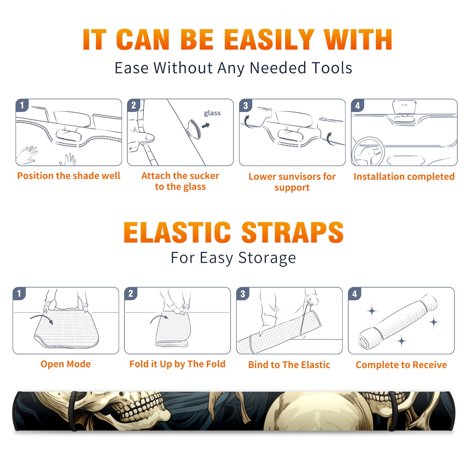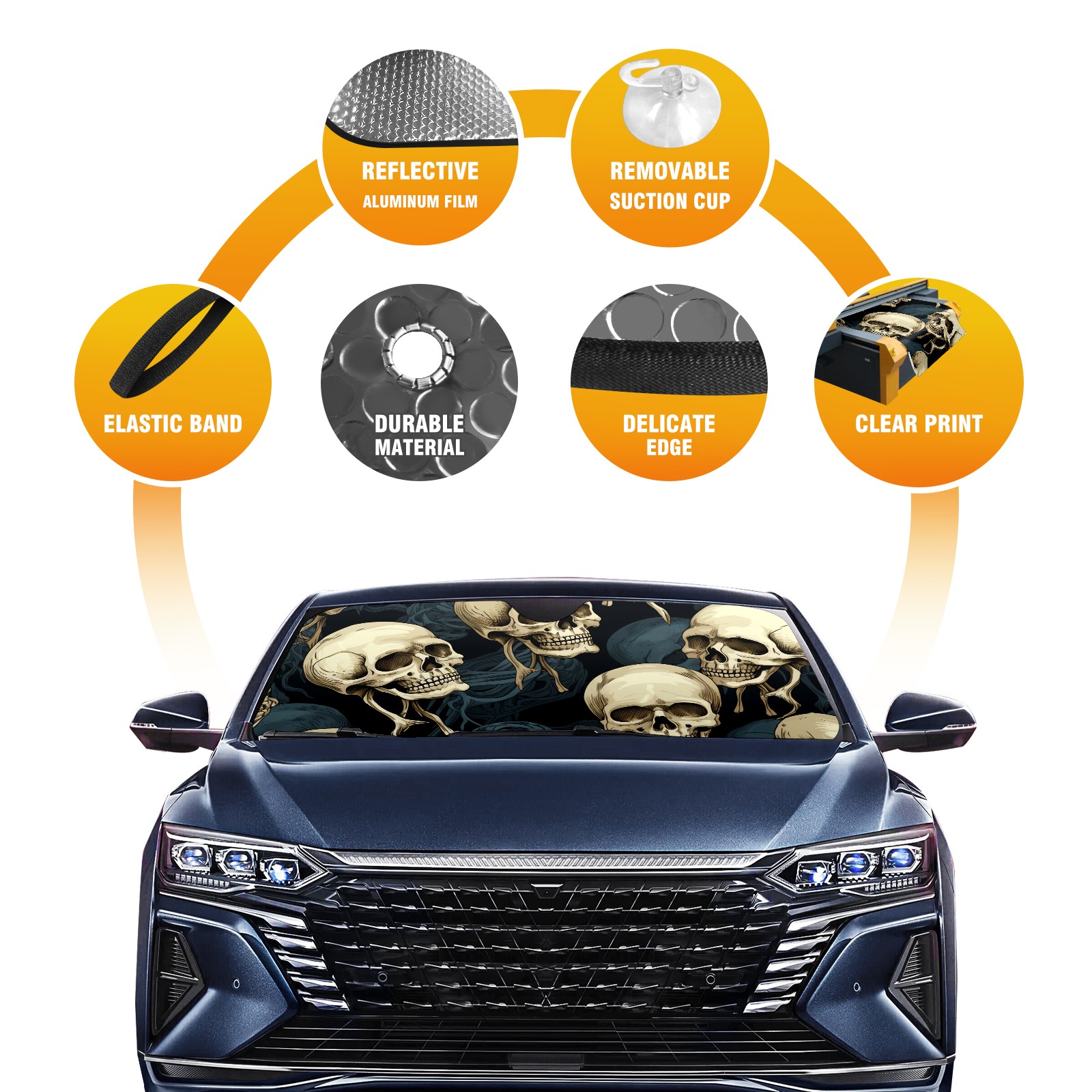 Car Windshield Sun Shade for Front Window Cute Skull (45) Foldable Vehicle Windshield Car Sun Visor Covers Automotive Window Protector Car Privacy Sun Blocker