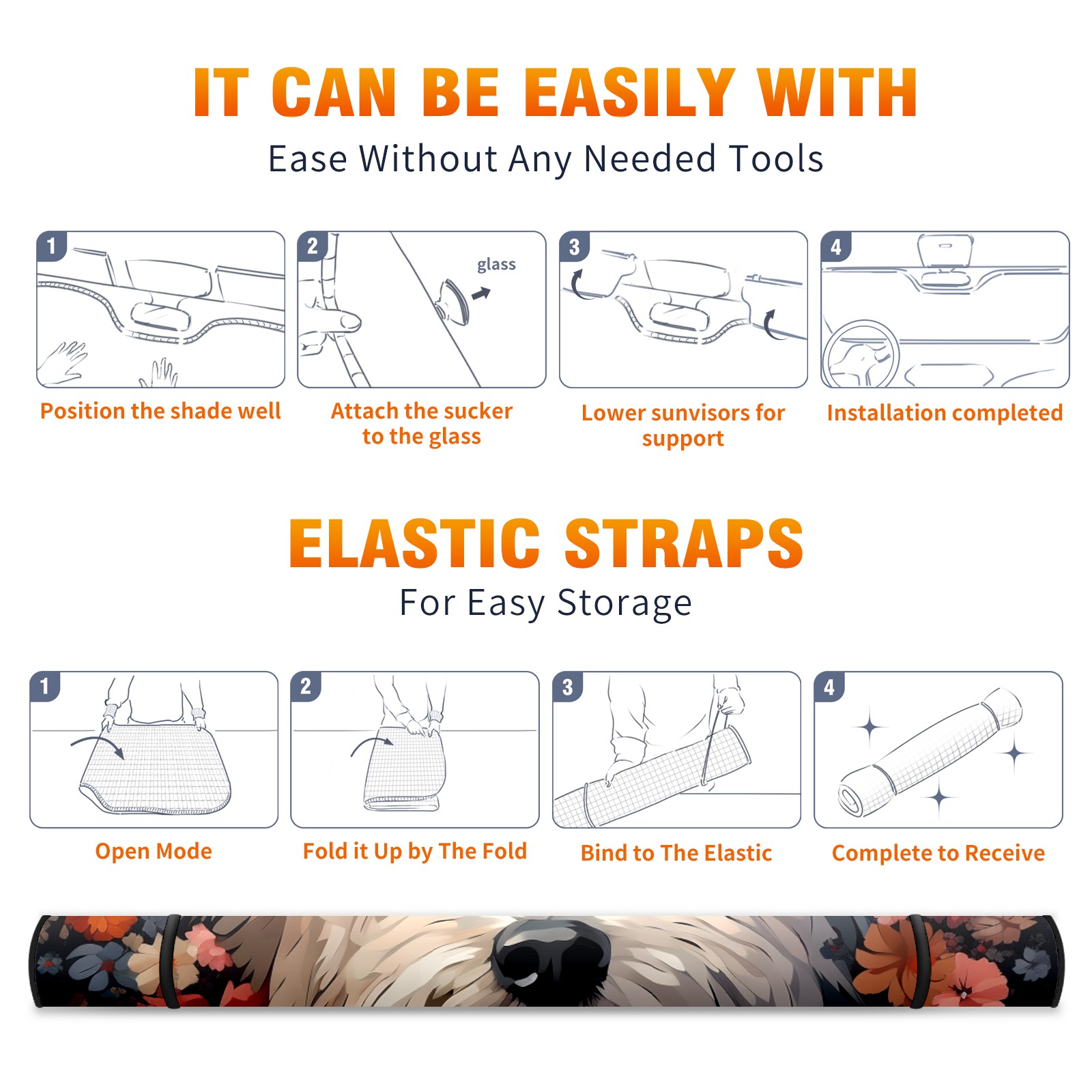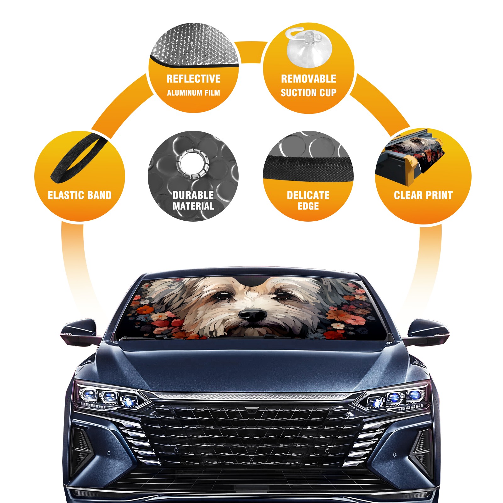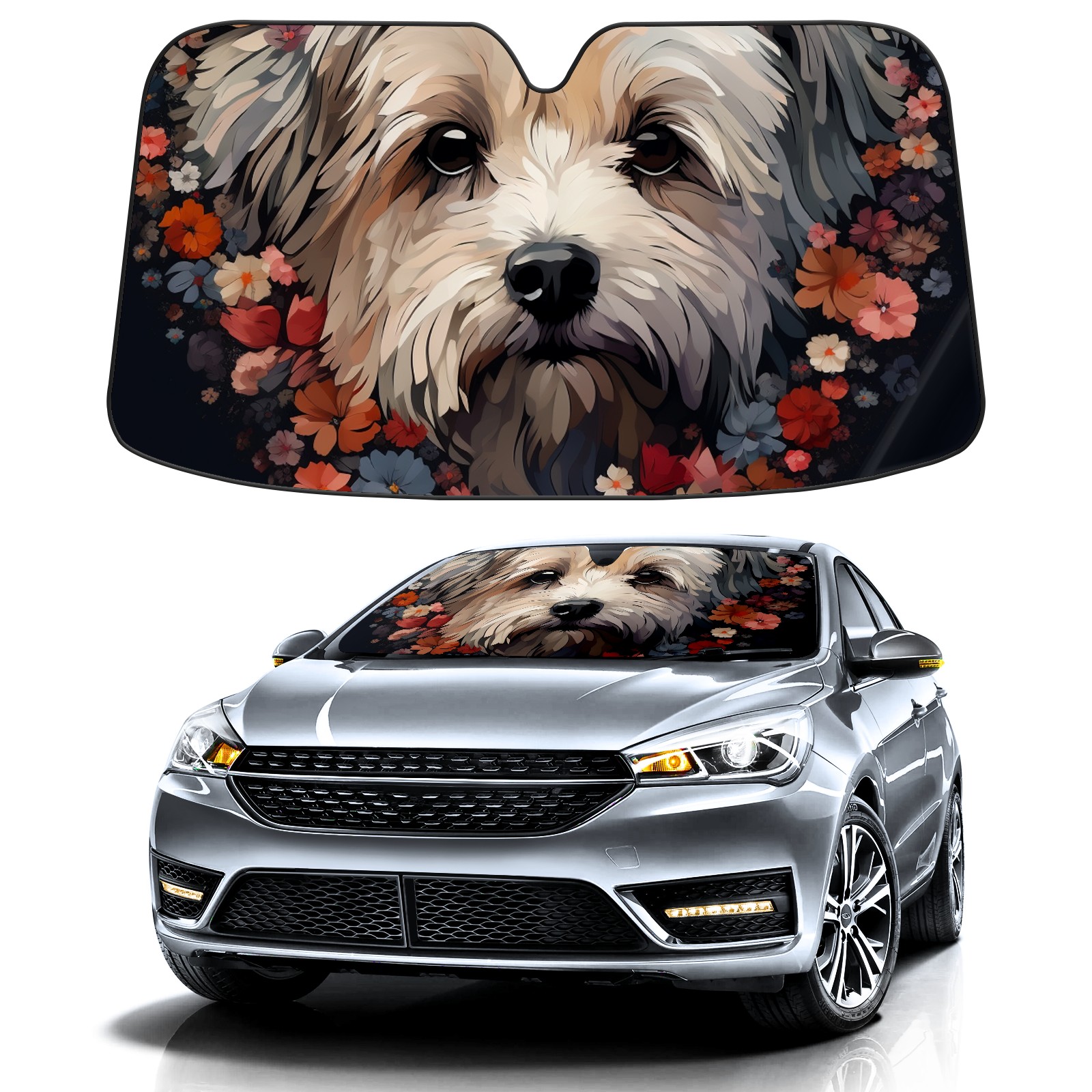 Car Windshield Sun Shade for Front Window Flowers Dog (5) Foldable Vehicle Windshield Car Sun Visor Covers Automotive Window Protector Car Privacy Sun Blocker