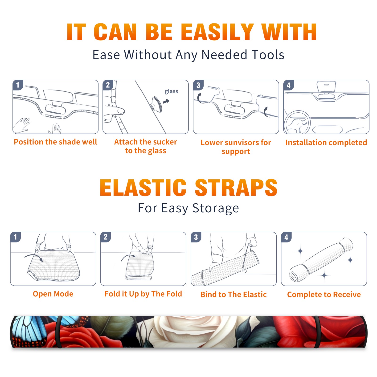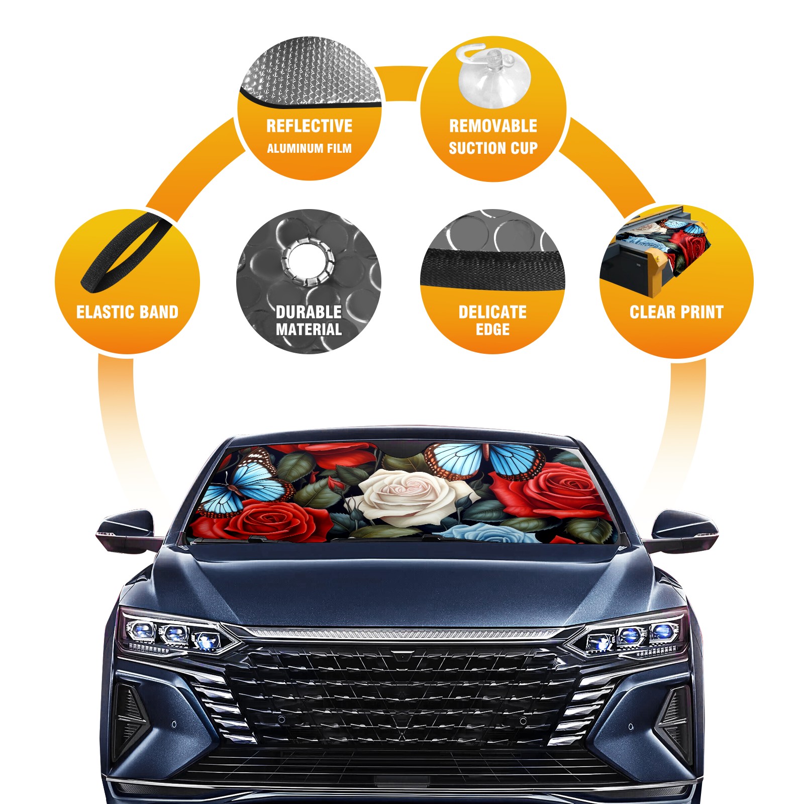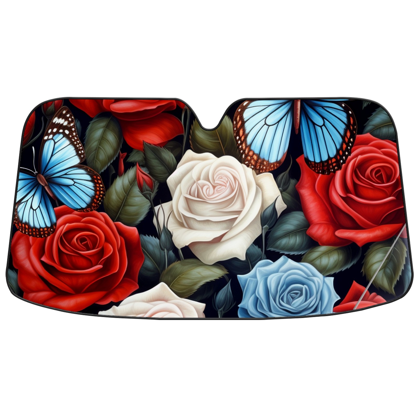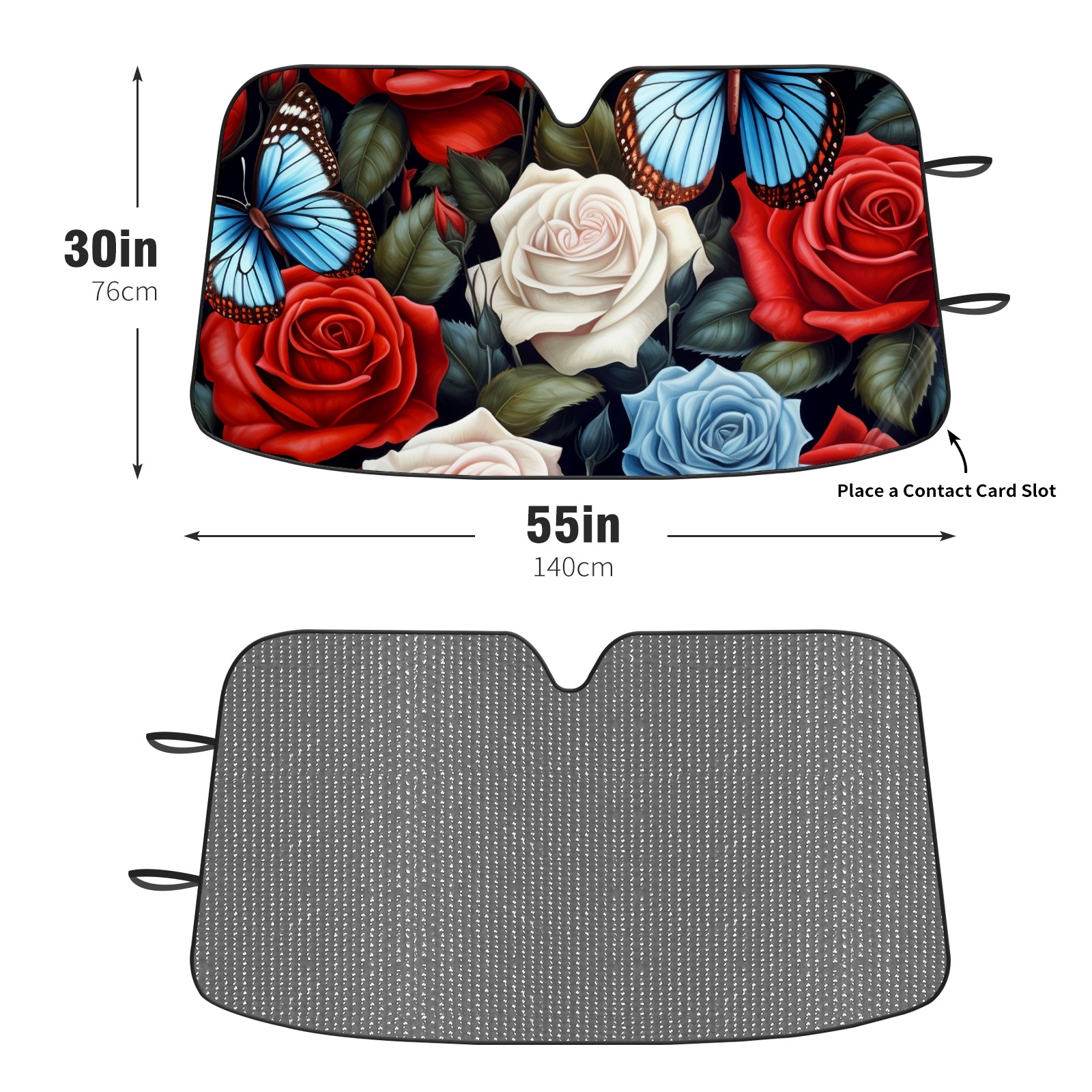 Car Windshield Sun Shade for Front Window Butterfly Rose Flower (12) Foldable Vehicle Windshield Car Sun Visor Covers Automotive Window Protector Car Privacy Sun Blocker
