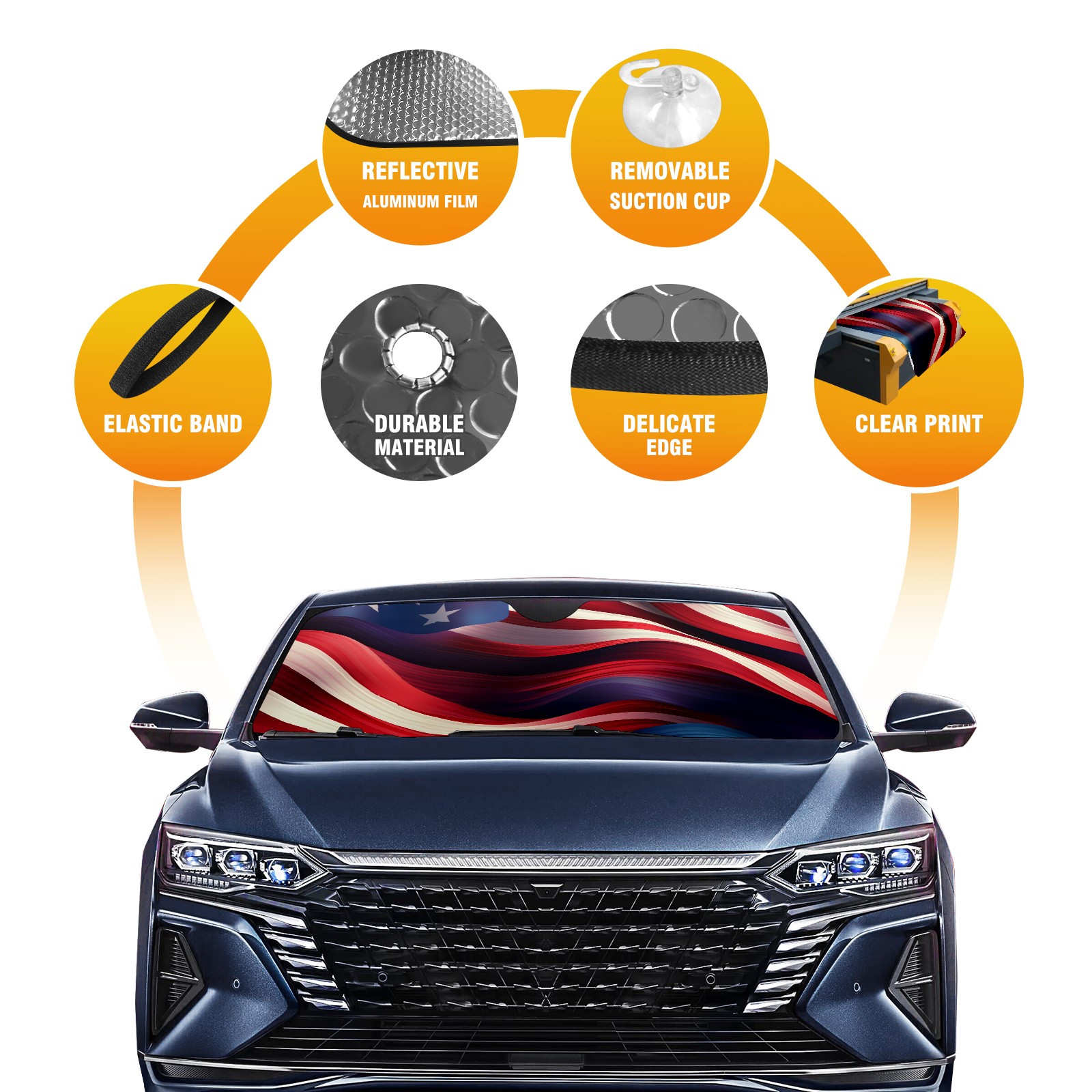 Car Windshield Sun Shade for Front Window American Flag (1) Foldable Vehicle Windshield Car Sun Visor Covers Automotive Window Protector Car Privacy Sun Blocker