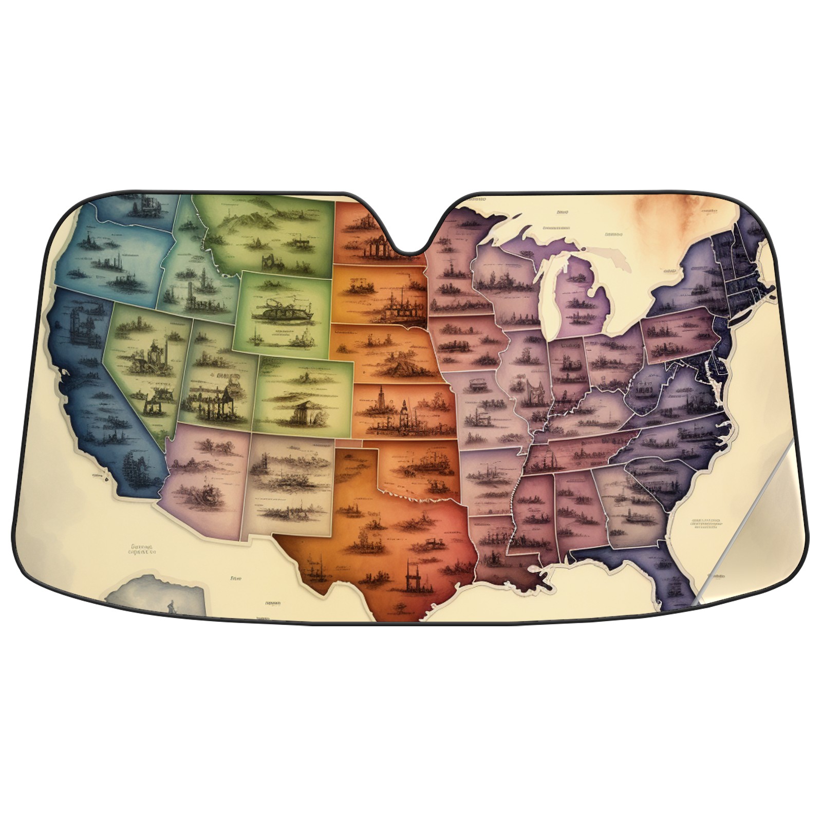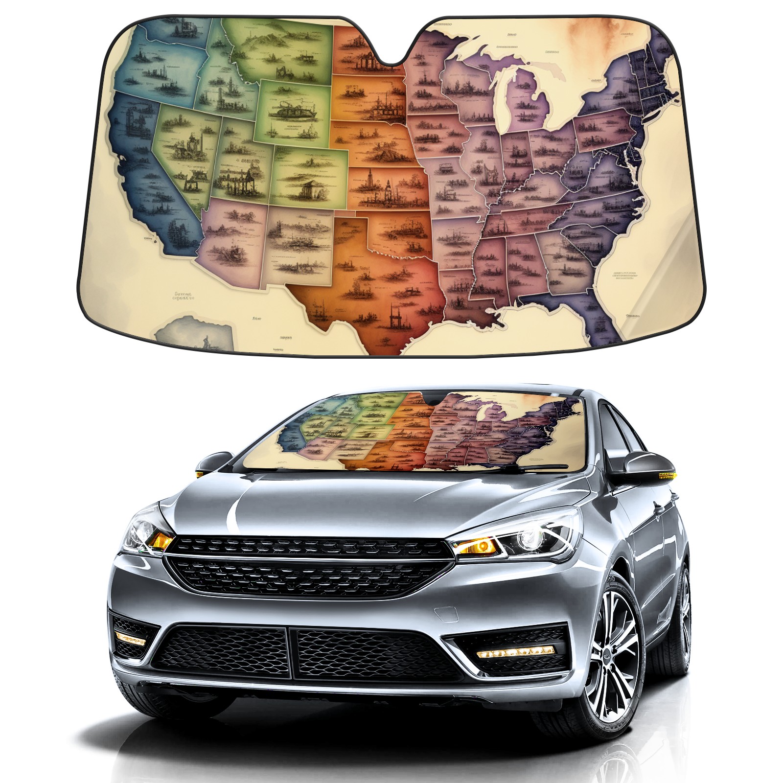 Car Windshield Sun Shade for Front Window America Map (24) Foldable Vehicle Windshield Car Sun Visor Covers Automotive Window Protector Car Privacy Sun Blocker