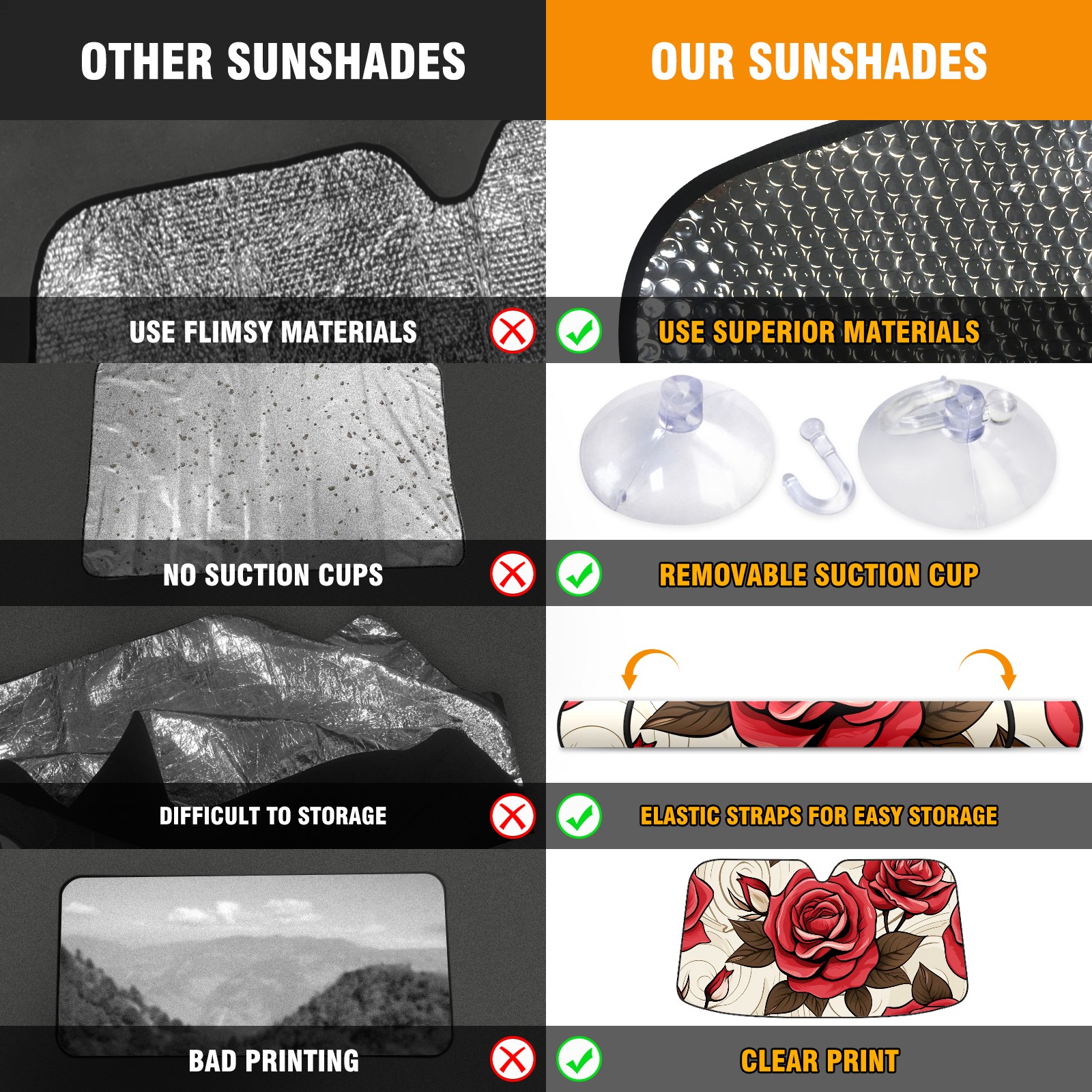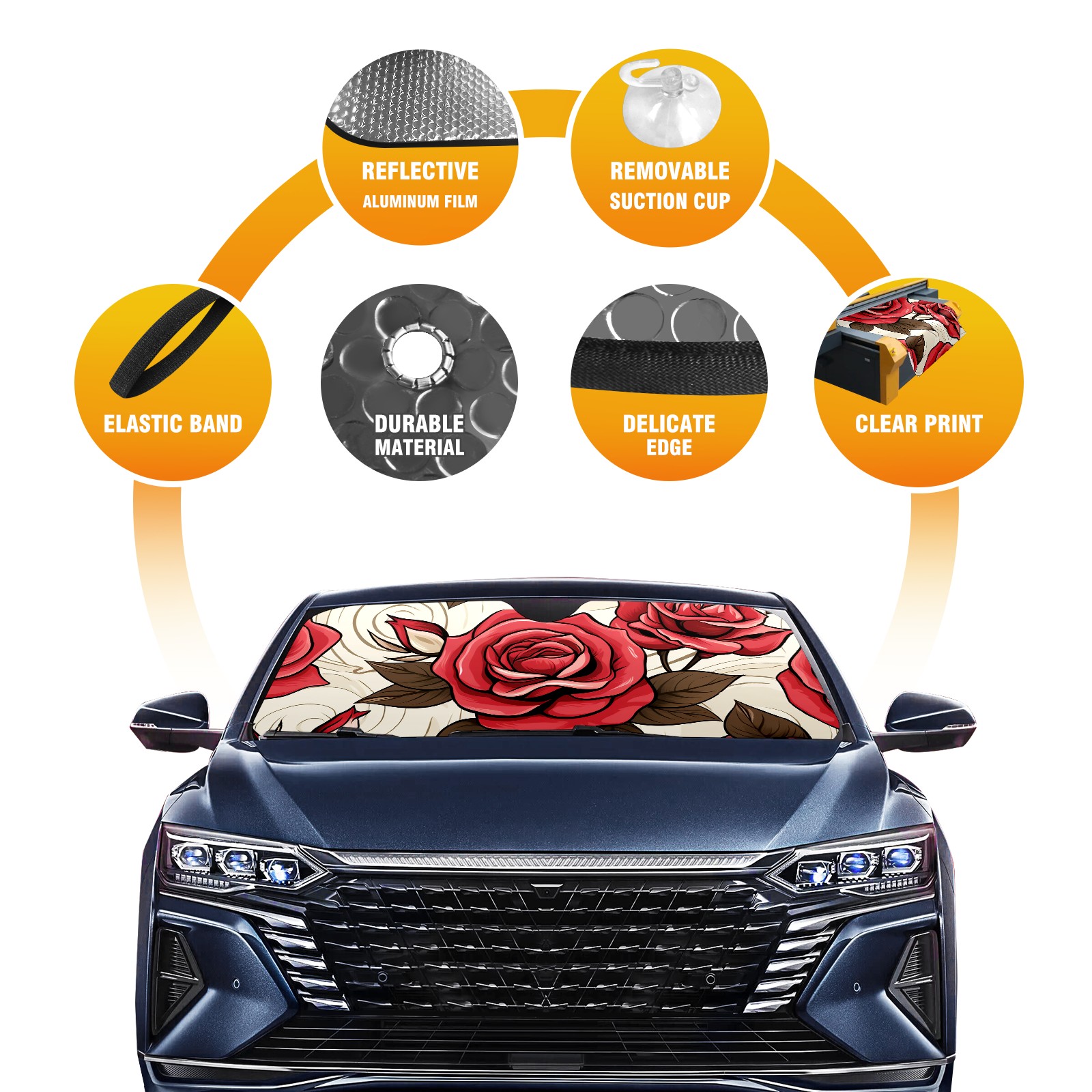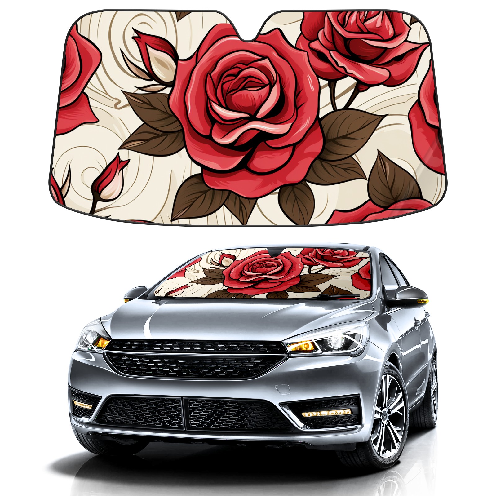 Car Windshield Sun Shade for Front Window Cute Roses (10) Foldable Vehicle Windshield Car Sun Visor Covers Automotive Window Protector Car Privacy Sun Blocker