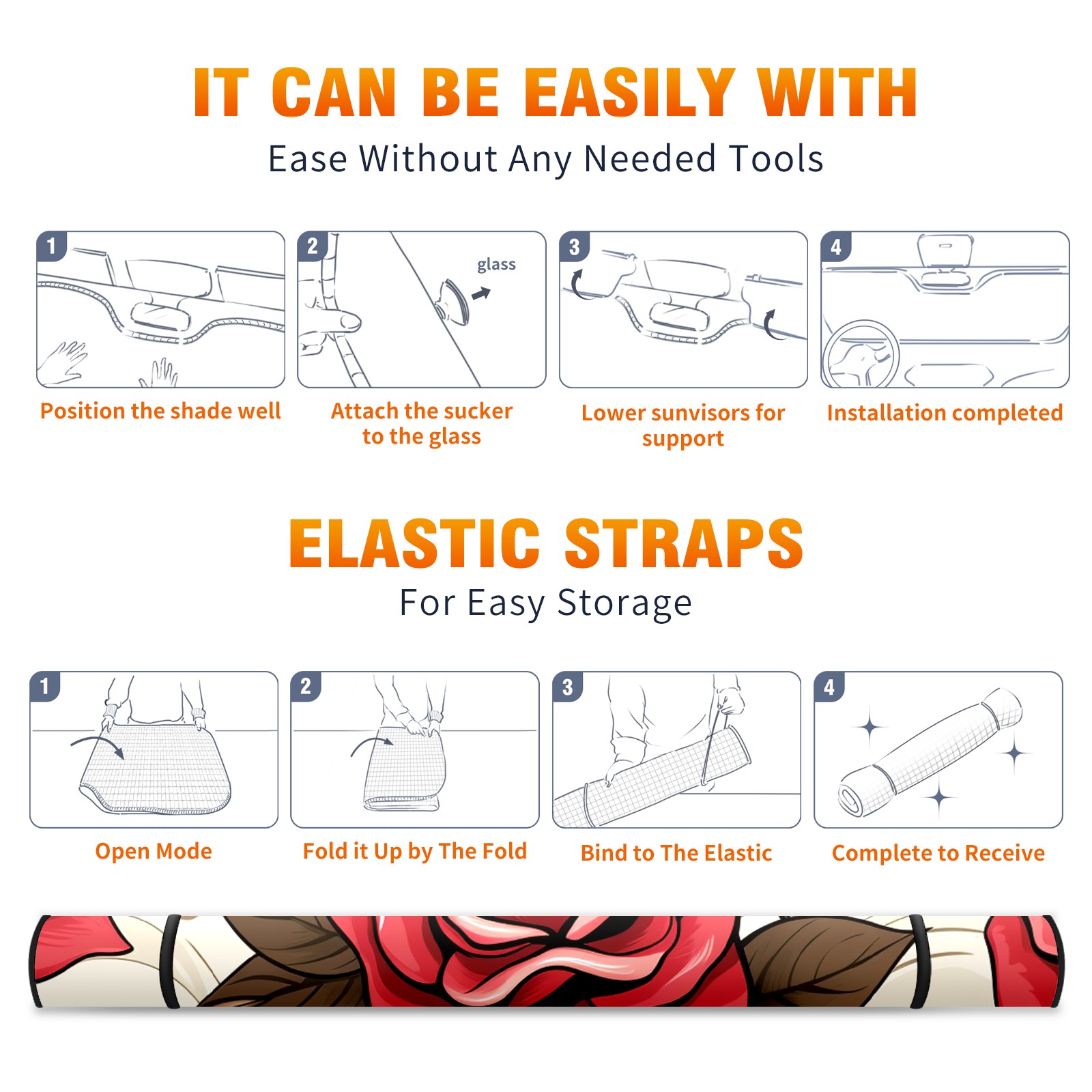 • <b>ZXIVGOQFR Foldable Premium Car Windshield Sunshade is your great solution to reduce your car’s interior temperature dramatically! This is definitely a must-have item for your summer travel! </b> <br> ●<b>Size: 63"L x 33.5"W </b> <br></b> ●<b>Blocking Uv Rays & Heat Insulation<br></b> Our vehicle sunshade provides effective UV, sun, and summer heat protection .Maintains dashboards by preventing fading and cracking <br> ●<b>Easy-To-Store Folding Design Makes Storage Convenient <br></b> ZXIVGOQFR car sunshades come with removable suction cups and elastic bands that you can install easily and quickly, and the removable suction cups will not leave any marks on your windows when removed. Within seconds, windshield visor can be installed and removed. When not in use,the front windshield can be easily and effectively placed on the door pocket or the dashboard, which is beautiful and does not take up space in the car.<br> <br> <b>PUT UP A 'PROTECTIVE UMBRELLA' FOR YOUR BELOVED CAR!</b>