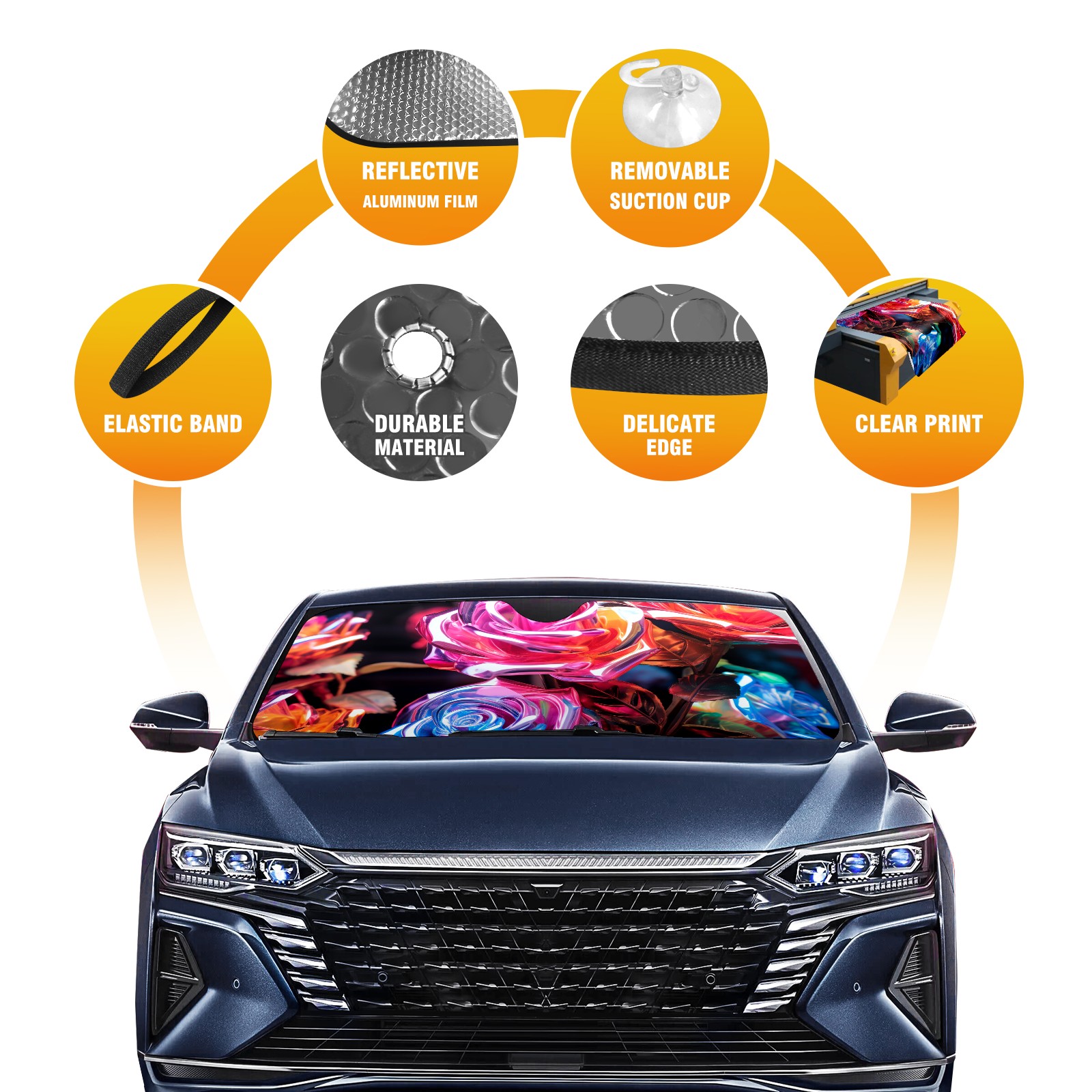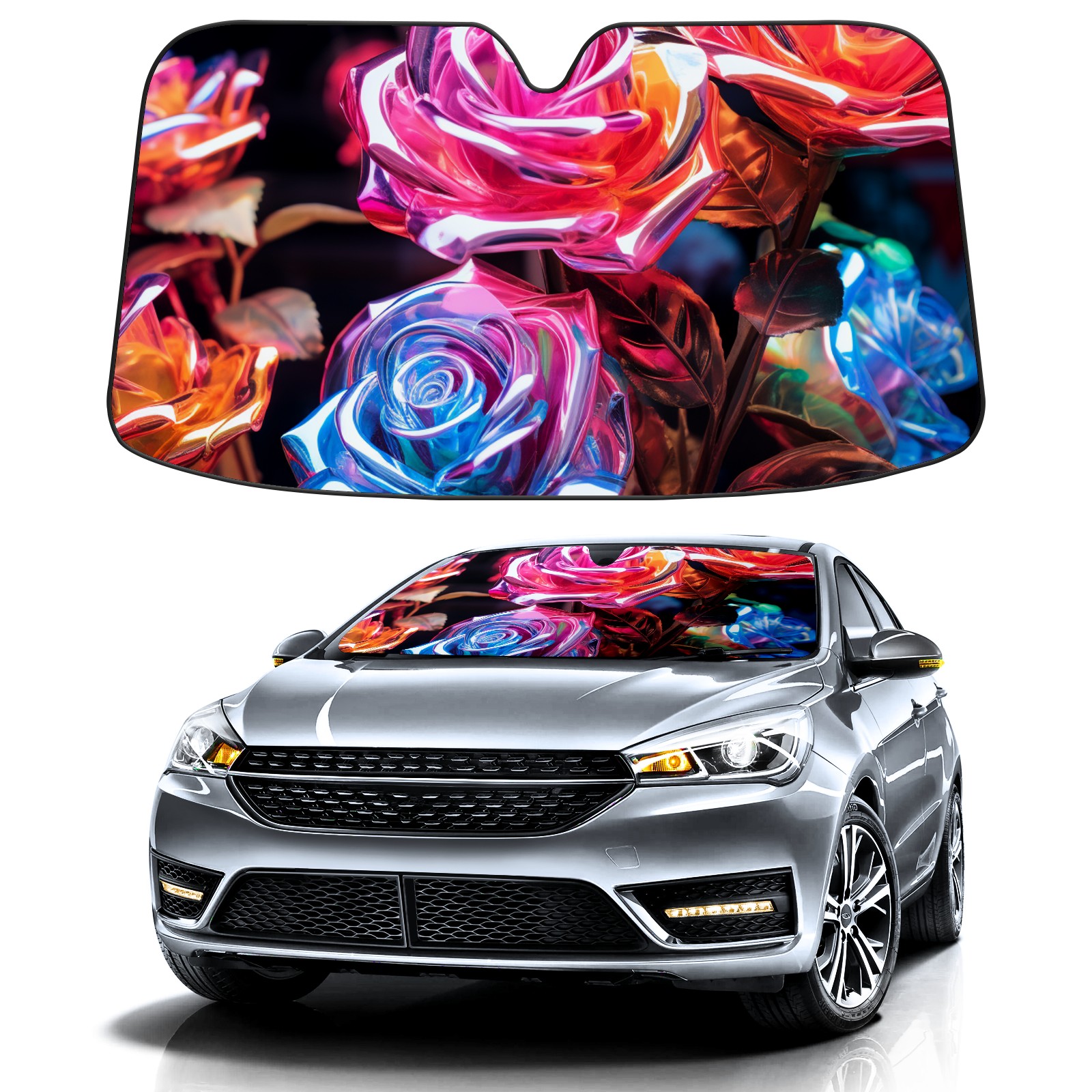 Car Windshield Sun Shade for Front Window Fantasy Rose (4) Foldable Vehicle Windshield Car Sun Visor Covers Automotive Window Protector Car Privacy Sun Blocker