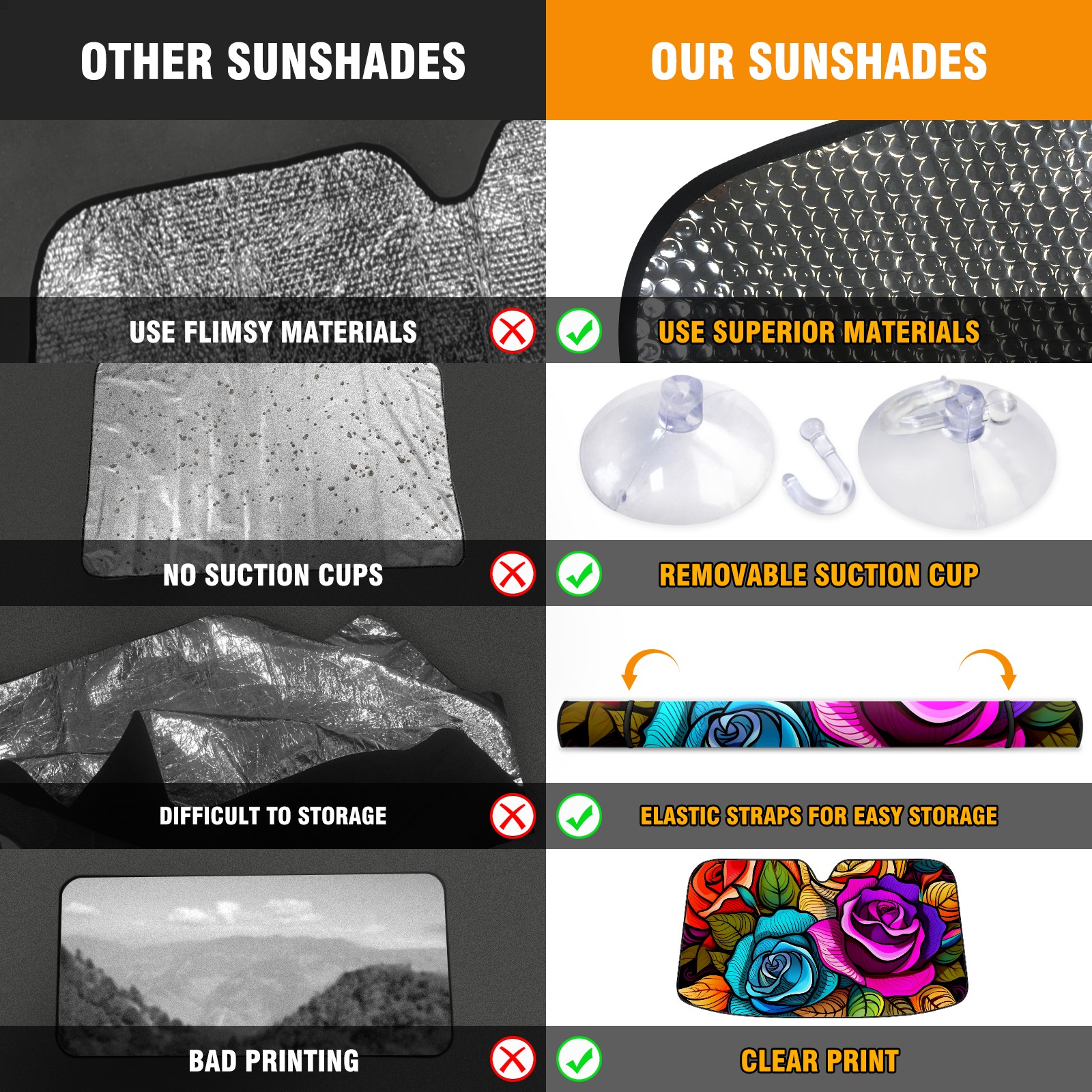 <b>ZXIVGOQFR Foldable Premium Car Windshield Sunshade is your great solution to reduce your car’s interior temperature dramatically! This is definitely a must-have item for your summer travel! </b> <br> ●<b>Size: 63"L x 33.5"W </b> <br></b> ●<b>Blocking Uv Rays & Heat Insulation<br></b> Our vehicle sunshade provides effective UV, sun, and summer heat protection .Maintains dashboards by preventing fading and cracking <br> ●<b>Easy-To-Store Folding Design Makes Storage Convenient <br></b> ZXIVGOQFR car sunshades come with removable suction cups and elastic bands that you can install easily and quickly, and the removable suction cups will not leave any marks on your windows when removed. Within seconds, windshield visor can be installed and removed. When not in use,the front windshield can be easily and effectively placed on the door pocket or the dashboard, which is beautiful and does not take up space in the car.<br> <br> <b>PUT UP A 'PROTECTIVE UMBRELLA' FOR YOUR BELOVED CAR!</b>