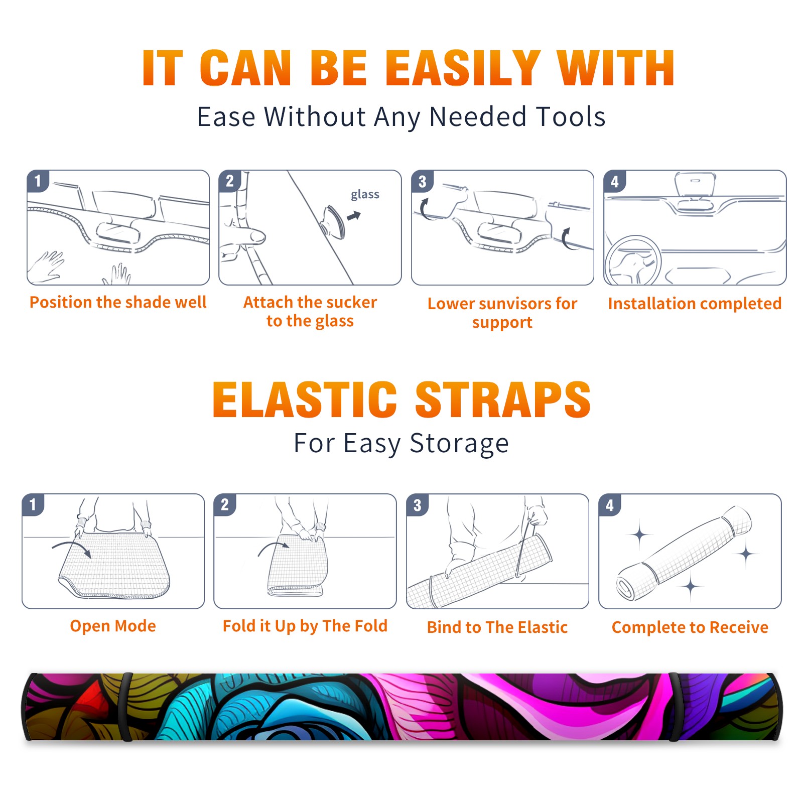 • <b>ZXIVGOQFR Foldable Premium Car Windshield Sunshade is your great solution to reduce your car’s interior temperature dramatically! This is definitely a must-have item for your summer travel! </b> <br> ●<b>Size: 63"L x 33.5"W </b> <br></b> ●<b>Blocking Uv Rays & Heat Insulation<br></b> Our vehicle sunshade provides effective UV, sun, and summer heat protection .Maintains dashboards by preventing fading and cracking <br> ●<b>Easy-To-Store Folding Design Makes Storage Convenient <br></b> ZXIVGOQFR car sunshades come with removable suction cups and elastic bands that you can install easily and quickly, and the removable suction cups will not leave any marks on your windows when removed. Within seconds, windshield visor can be installed and removed. When not in use,the front windshield can be easily and effectively placed on the door pocket or the dashboard, which is beautiful and does not take up space in the car.<br> <br> <b>PUT UP A 'PROTECTIVE UMBRELLA' FOR YOUR BELOVED CAR!</b>