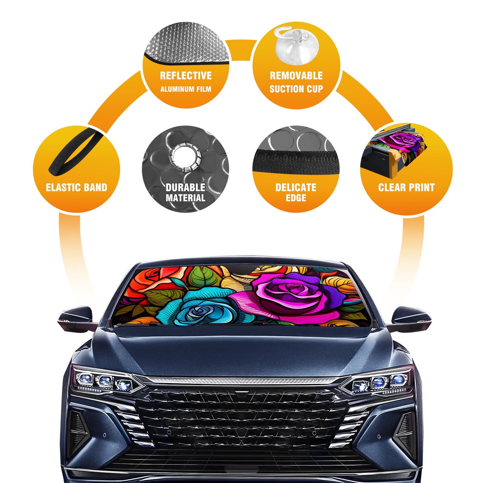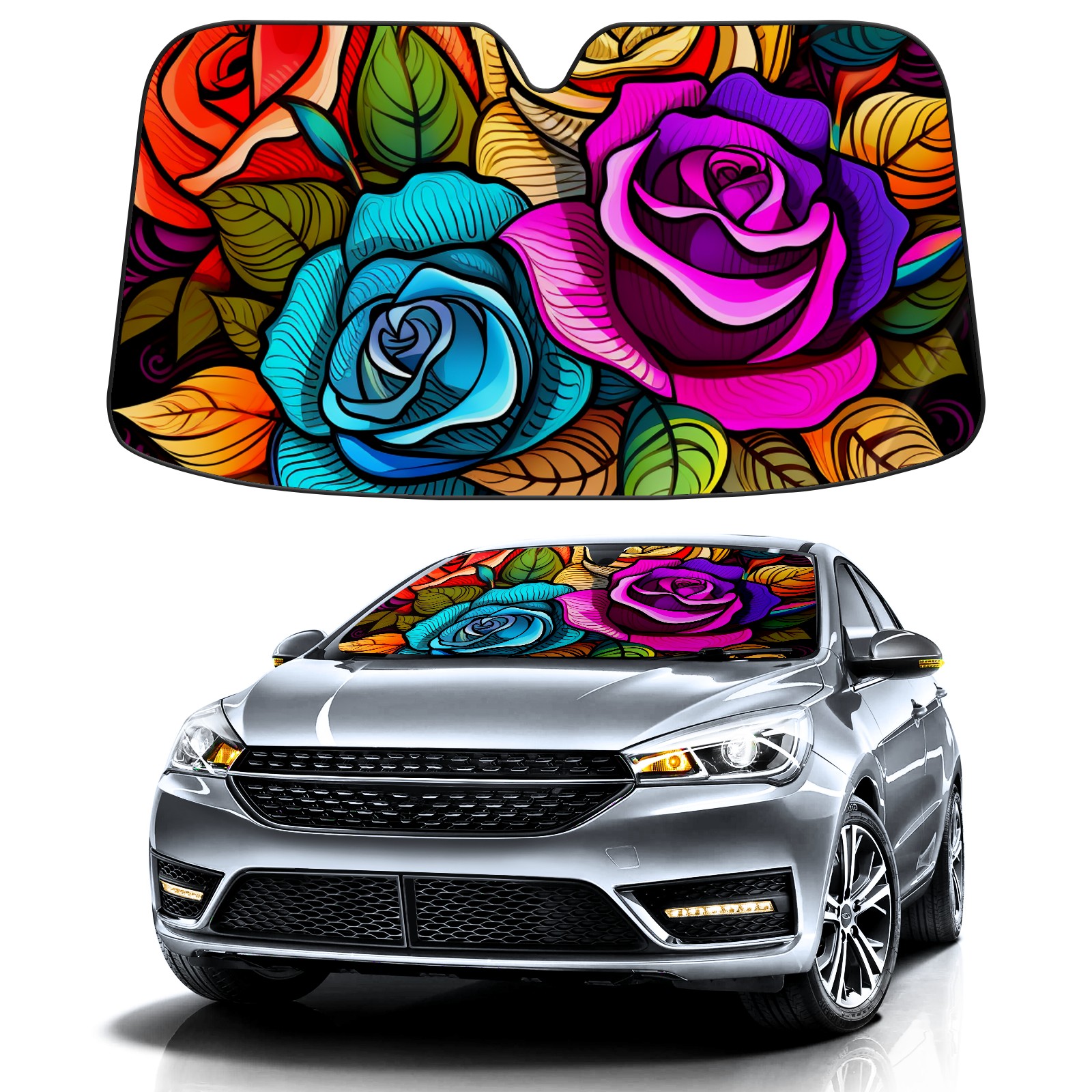 Car Windshield Sun Shade for Front Window Cute Roses (5) Foldable Vehicle Windshield Car Sun Visor Covers Automotive Window Protector Car Privacy Sun Blocker