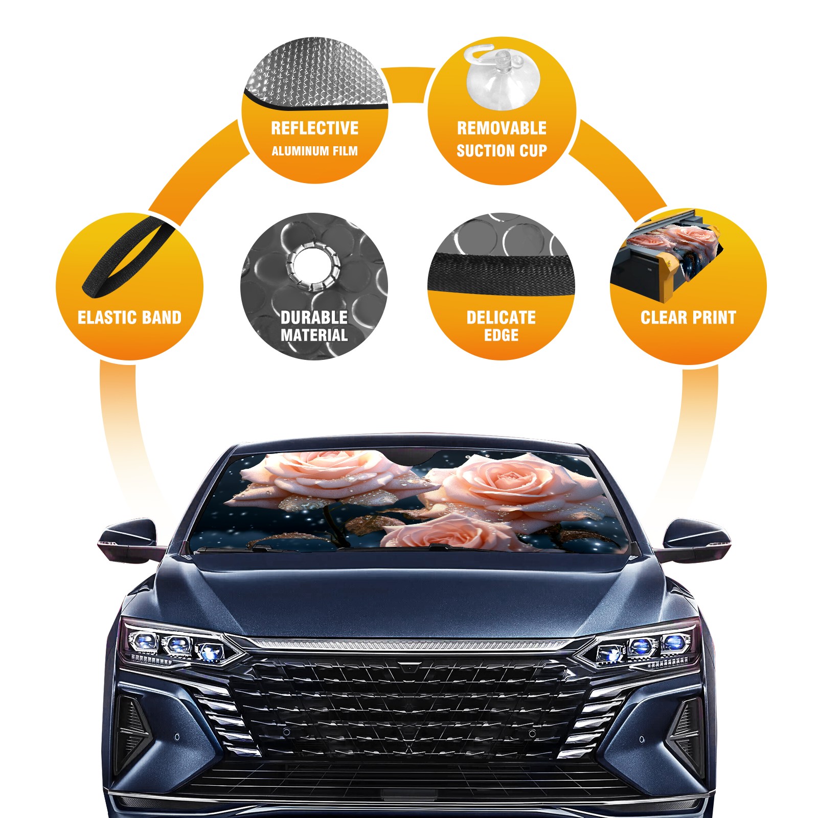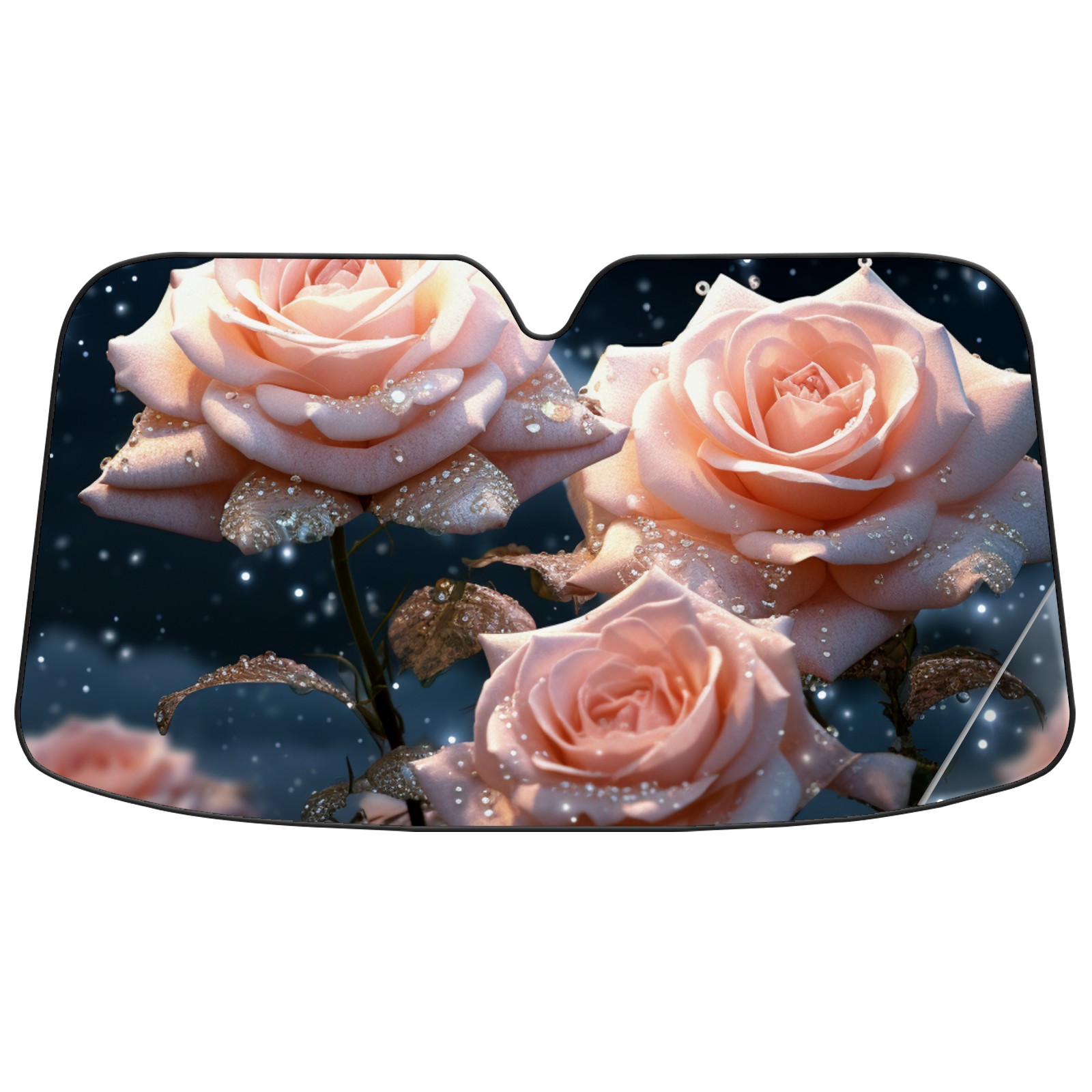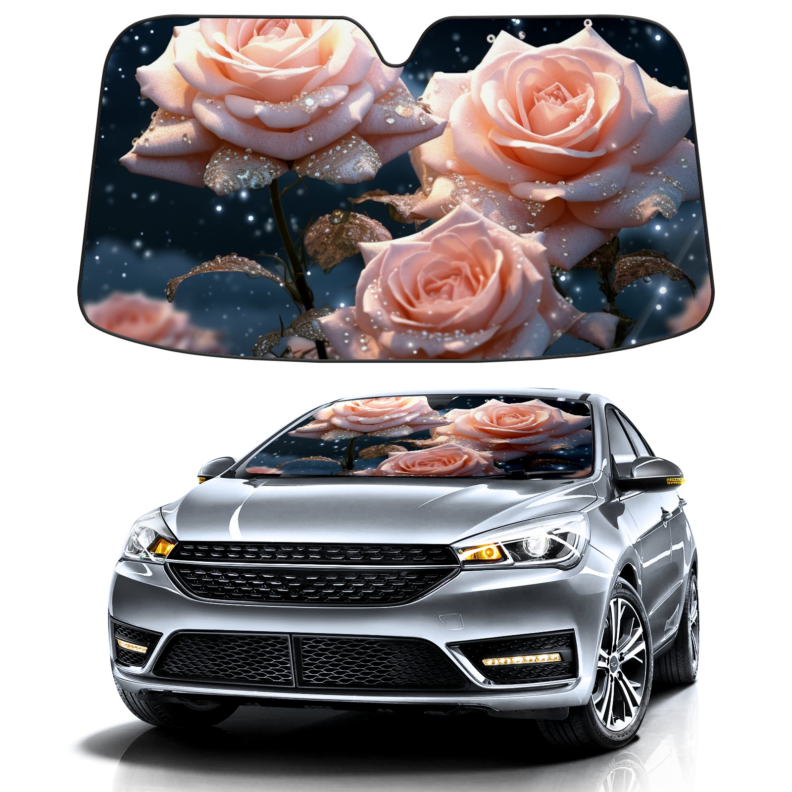 Car Windshield Sun Shade for Front Window Roses Under The Stars (2) Foldable Vehicle Windshield Car Sun Visor Covers Automotive Window Protector Car Privacy Sun Blocker