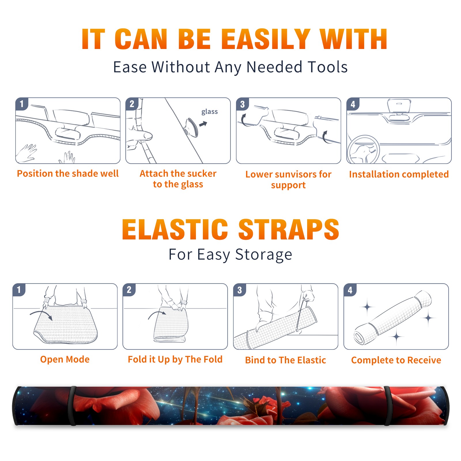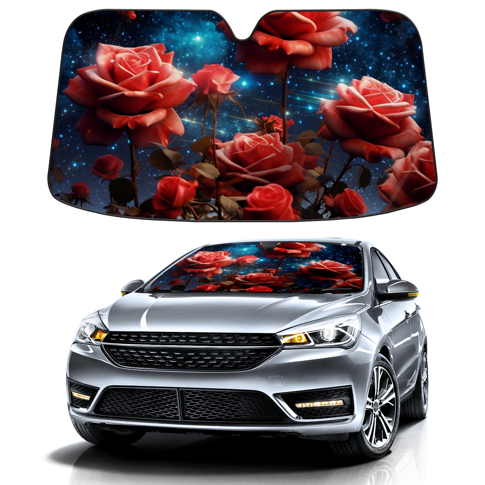 Car Windshield Sun Shade for Front Window Roses Under The Stars (1) Foldable Vehicle Windshield Car Sun Visor Covers Automotive Window Protector Car Privacy Sun Blocker