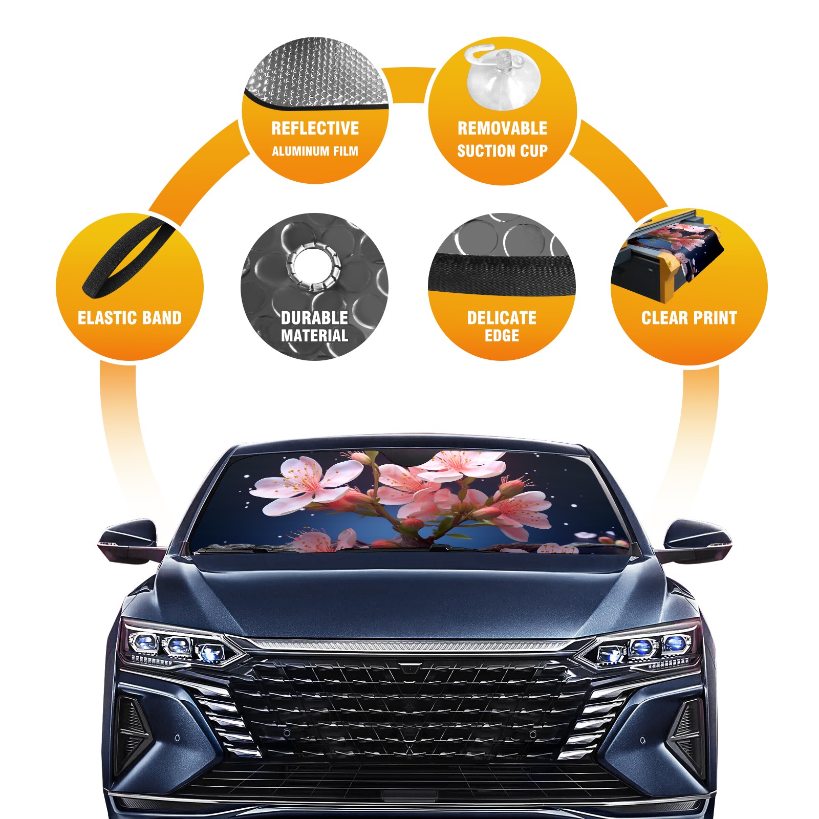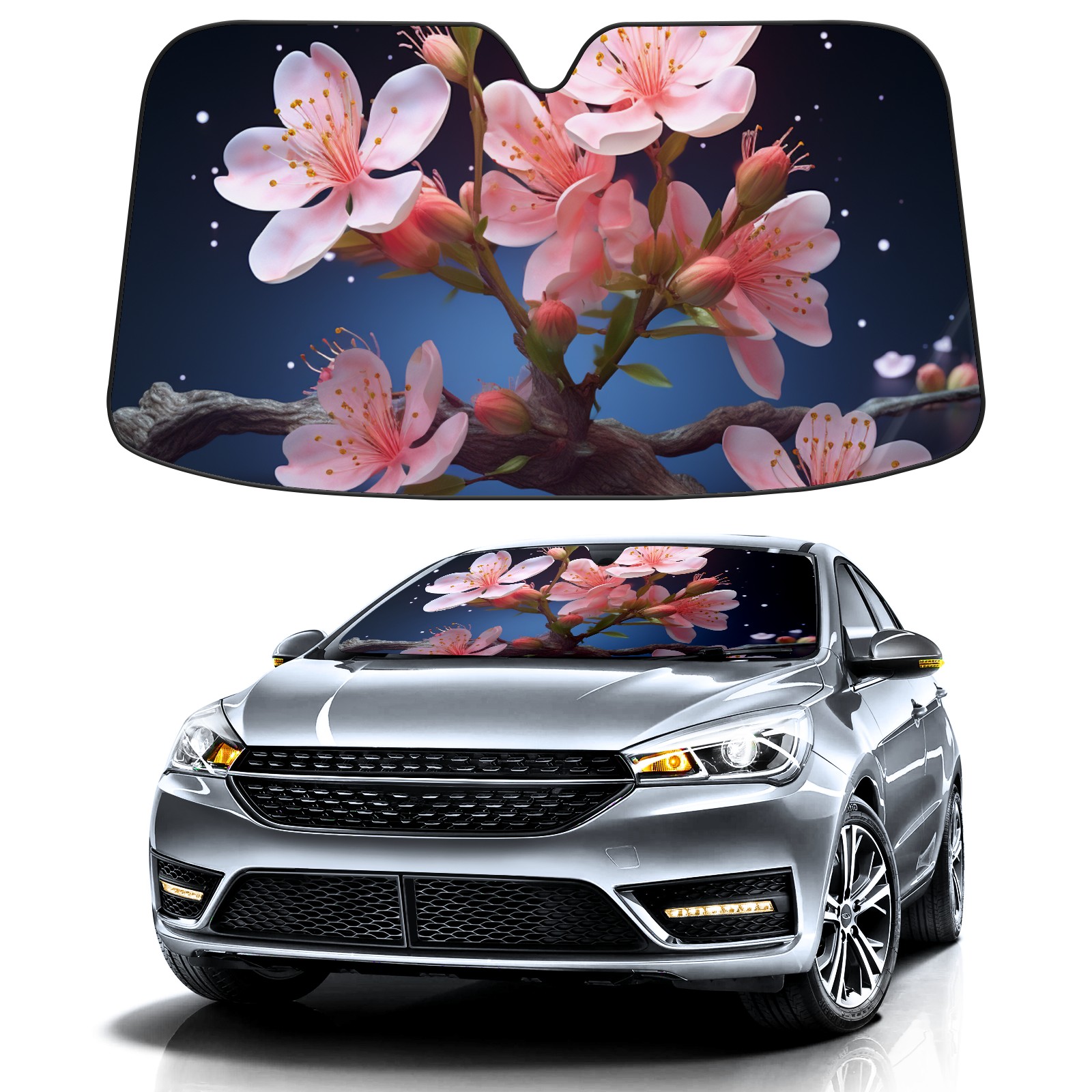 Car Windshield Sun Shade for Front Window Peach Blossoms Under The Starry Sky (3) Foldable Vehicle Windshield Car Sun Visor Covers Automotive Window Protector Car Privacy Sun Blocker