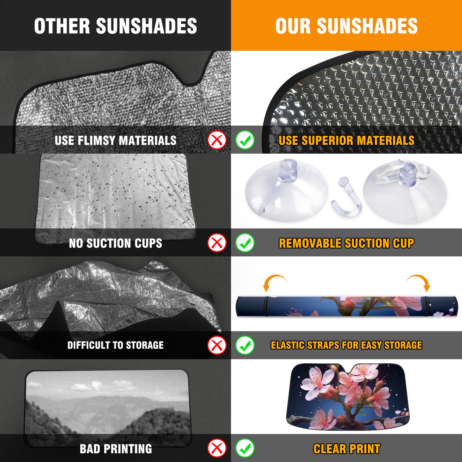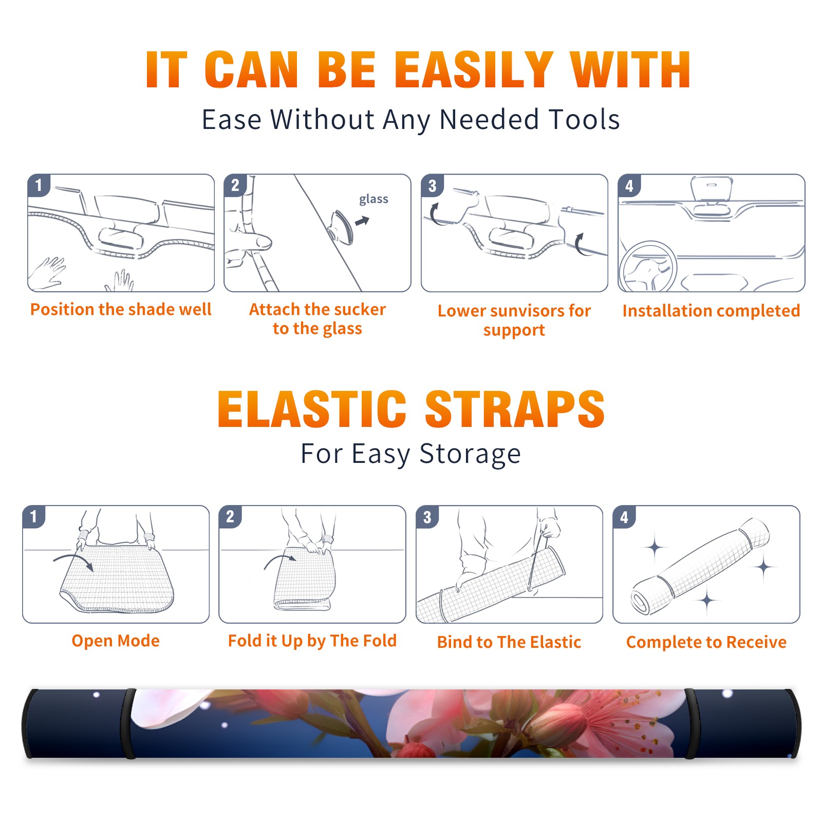 • <b>ZXIVGOQFR Foldable Premium Car Windshield Sunshade is your great solution to reduce your car’s interior temperature dramatically! This is definitely a must-have item for your summer travel! </b> <br> ●<b>Size: 63"L x 33.5"W </b> <br></b> ●<b>Blocking Uv Rays & Heat Insulation<br></b> Our vehicle sunshade provides effective UV, sun, and summer heat protection .Maintains dashboards by preventing fading and cracking <br> ●<b>Easy-To-Store Folding Design Makes Storage Convenient <br></b> ZXIVGOQFR car sunshades come with removable suction cups and elastic bands that you can install easily and quickly, and the removable suction cups will not leave any marks on your windows when removed. Within seconds, windshield visor can be installed and removed. When not in use,the front windshield can be easily and effectively placed on the door pocket or the dashboard, which is beautiful and does not take up space in the car.<br> <br> <b>PUT UP A 'PROTECTIVE UMBRELLA' FOR YOUR BELOVED CAR!</b>