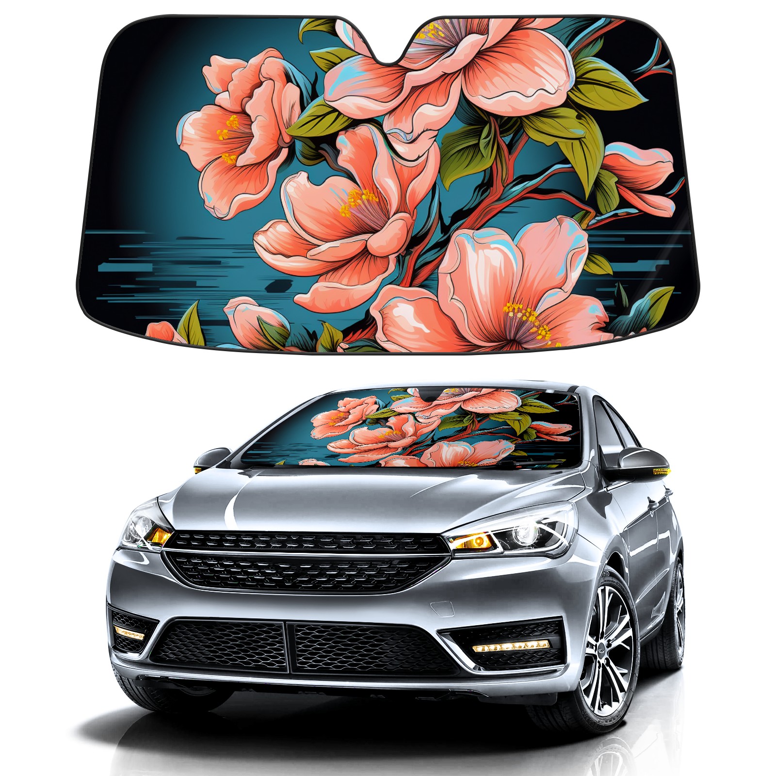 Car Windshield Sun Shade for Front Window Cute Peach Blossom (14) Foldable Vehicle Windshield Car Sun Visor Covers Automotive Window Protector Car Privacy Sun Blocker
