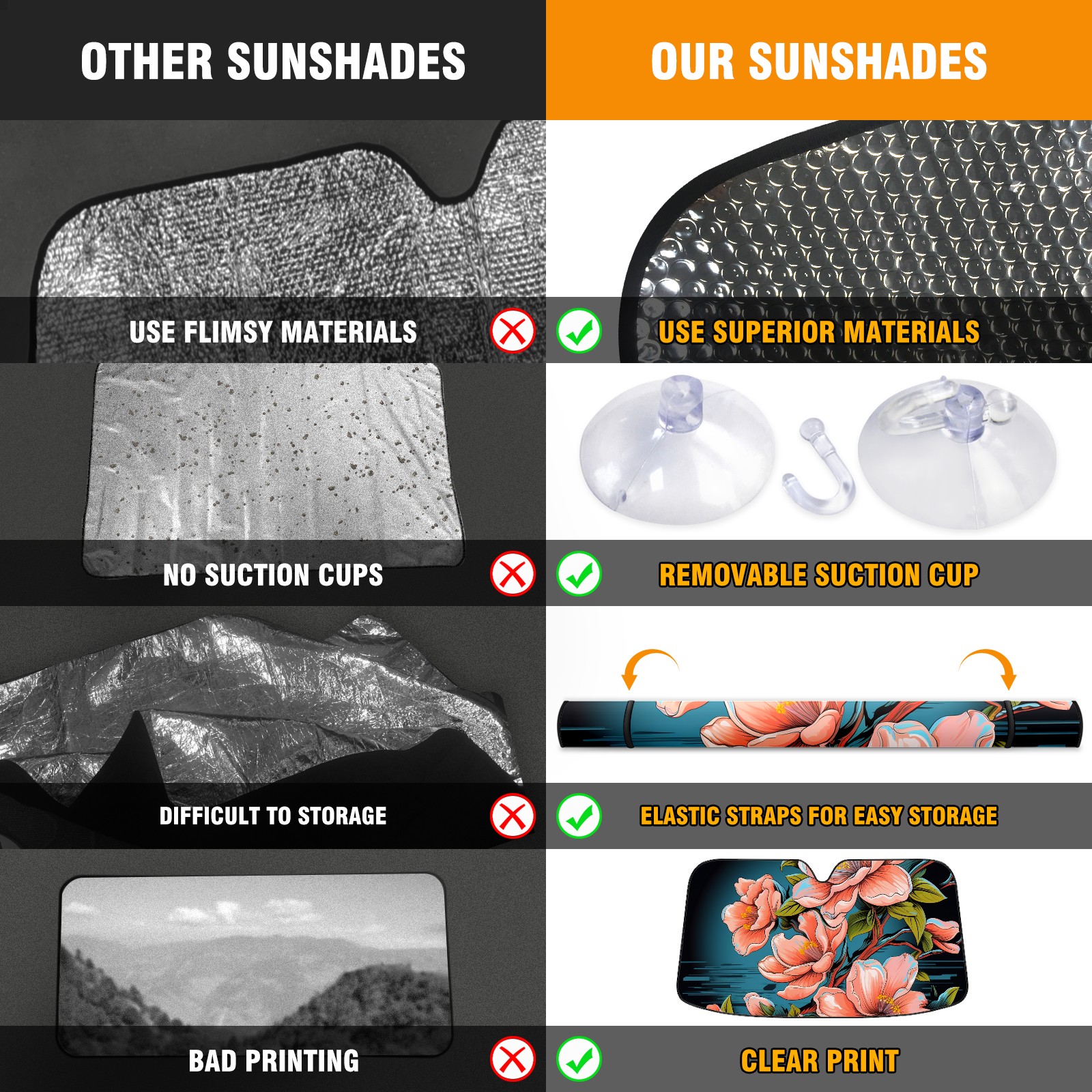 <b>ZXIVGOQFR Foldable Premium Car Windshield Sunshade is your great solution to reduce your car’s interior temperature dramatically! This is definitely a must-have item for your summer travel! </b> <br> ●<b>Size: 63"L x 33.5"W </b> <br></b> ●<b>Blocking Uv Rays & Heat Insulation<br></b> Our vehicle sunshade provides effective UV, sun, and summer heat protection .Maintains dashboards by preventing fading and cracking <br> ●<b>Easy-To-Store Folding Design Makes Storage Convenient <br></b> ZXIVGOQFR car sunshades come with removable suction cups and elastic bands that you can install easily and quickly, and the removable suction cups will not leave any marks on your windows when removed. Within seconds, windshield visor can be installed and removed. When not in use,the front windshield can be easily and effectively placed on the door pocket or the dashboard, which is beautiful and does not take up space in the car.<br> <br> <b>PUT UP A 'PROTECTIVE UMBRELLA' FOR YOUR BELOVED CAR!</b>