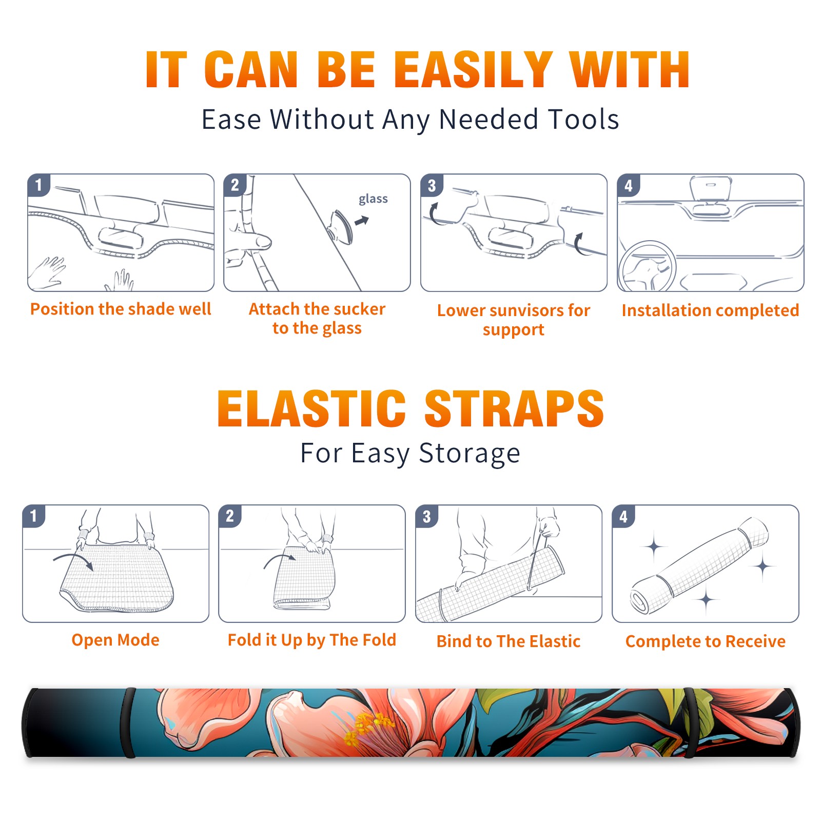 • <b>ZXIVGOQFR Foldable Premium Car Windshield Sunshade is your great solution to reduce your car’s interior temperature dramatically! This is definitely a must-have item for your summer travel! </b> <br> ●<b>Size: 63"L x 33.5"W </b> <br></b> ●<b>Blocking Uv Rays & Heat Insulation<br></b> Our vehicle sunshade provides effective UV, sun, and summer heat protection .Maintains dashboards by preventing fading and cracking <br> ●<b>Easy-To-Store Folding Design Makes Storage Convenient <br></b> ZXIVGOQFR car sunshades come with removable suction cups and elastic bands that you can install easily and quickly, and the removable suction cups will not leave any marks on your windows when removed. Within seconds, windshield visor can be installed and removed. When not in use,the front windshield can be easily and effectively placed on the door pocket or the dashboard, which is beautiful and does not take up space in the car.<br> <br> <b>PUT UP A 'PROTECTIVE UMBRELLA' FOR YOUR BELOVED CAR!</b>