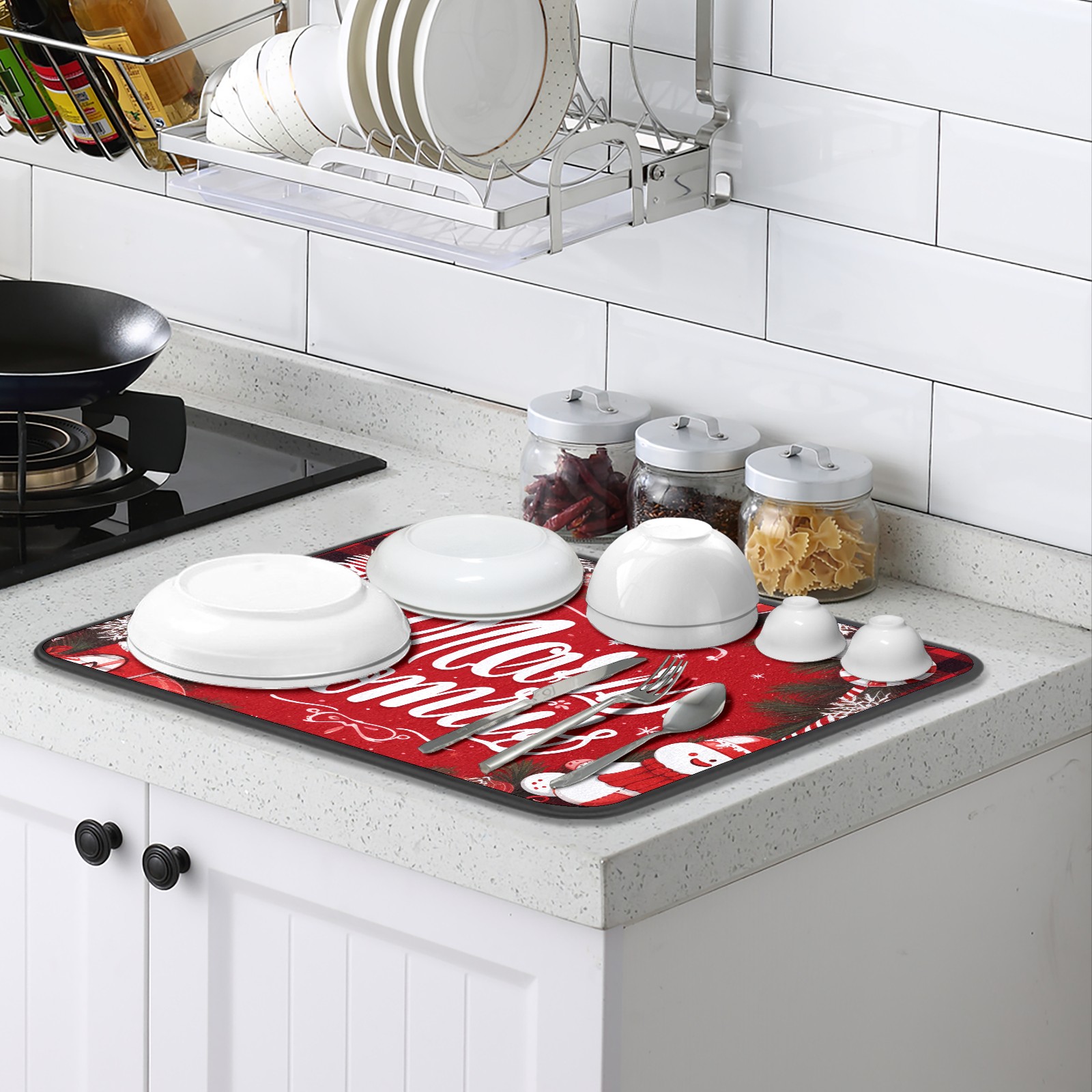 Handed down from an ancient tradition, drying mats are the original solution to the age-old tradition of leaving dish towels on the counter when hand washing pots, pans, dishes and glassware. Let our drying mats do the work for you! No more soggy kitchen towels and damp countertops when the kitchen is lined with drying mats. Pots and pans can be placed on top of the drying mat is makes our kitchen neat and organized. Combined with a thick foam core that absorbs up to 4 times its weight in water, our drying mat dries dishes quickly and keeps surfaces dry. We've spent years crafting our dish drying mats and putting them to scientific use. We're confident you'll love the quality and durability of each of our dish drying mats.