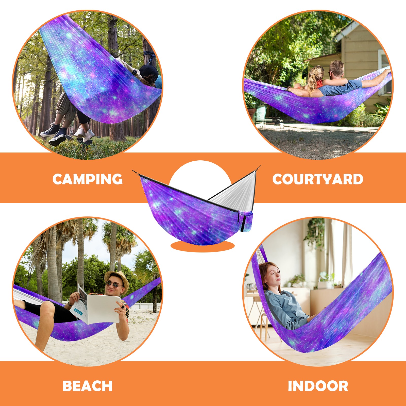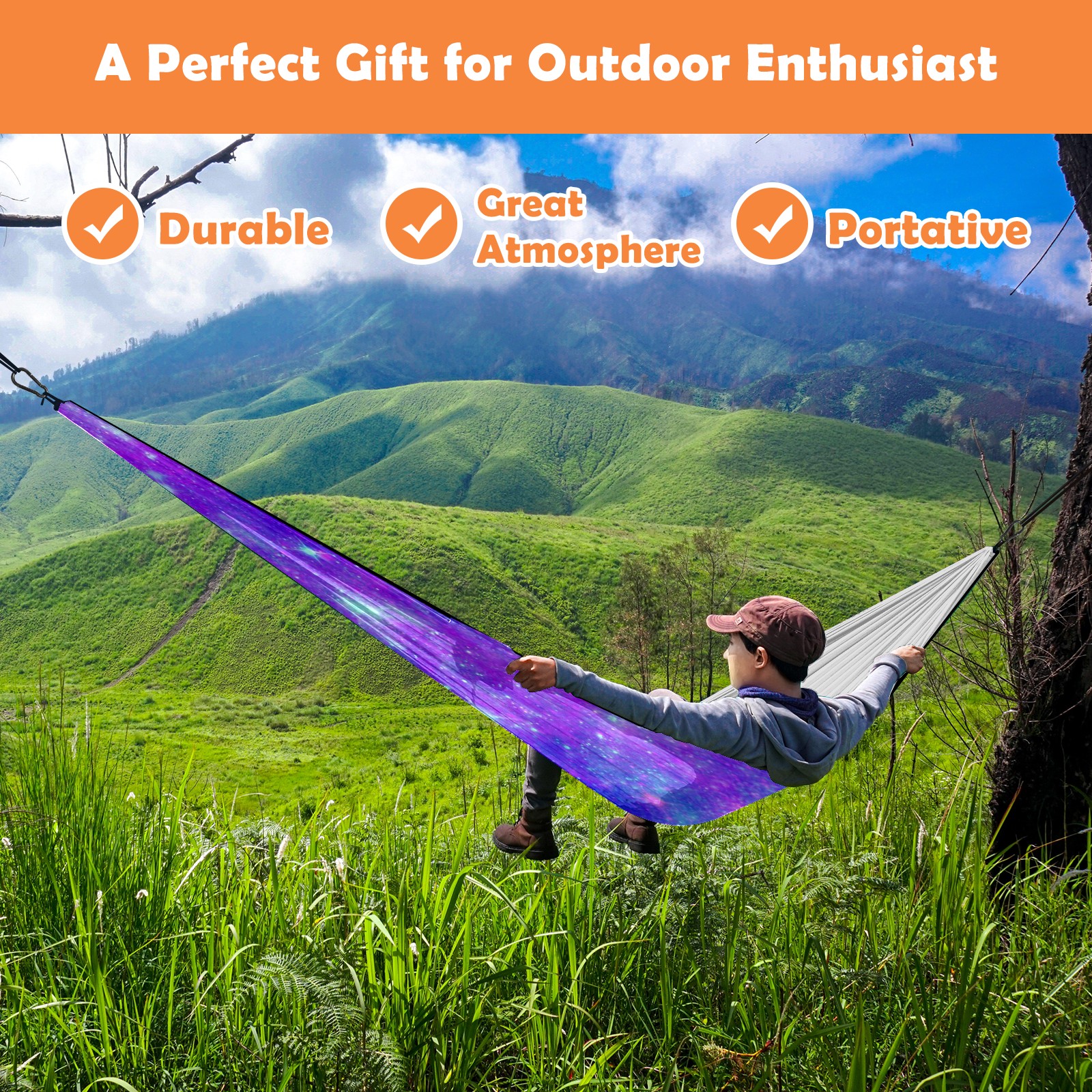 The ideal gift for travelers to relax! Campers who specialize in camping gear, especially quality camping hammocks hurry up and get your hands on one. Our goal is to provide the best camping gear to all our customers. Each of our products is designed to improve our customers' outdoor experience. They are of superior quality, easy to use, comfortable and lightweight! This one is our upgraded camping hammock. Each camping hammock comes with two tree straps and two sturdy steel carabiners. The portable hammock has it all. It comes well packaged and is super lightweight and convenient. You can easily put it in your backpack and use it when you go hiking or overnight camping or relaxing in your family's backyard and swinging. It's sturdy, comfortable, secure and very easy to set up. Multiple colors are available. Take it with you and enjoy your trip!