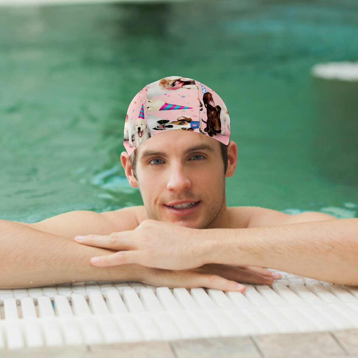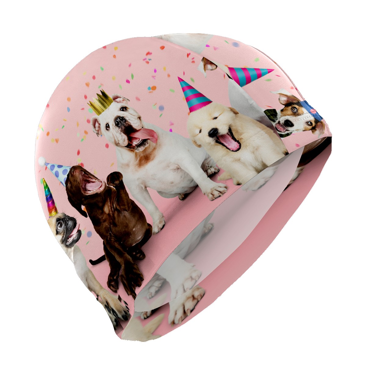 Animal Dog Happy Birthday Swim Caps for Men High Elasticity Male Swimming Cap Women Swimming Pool Water Hats Unisex Adult Teens Youth Size