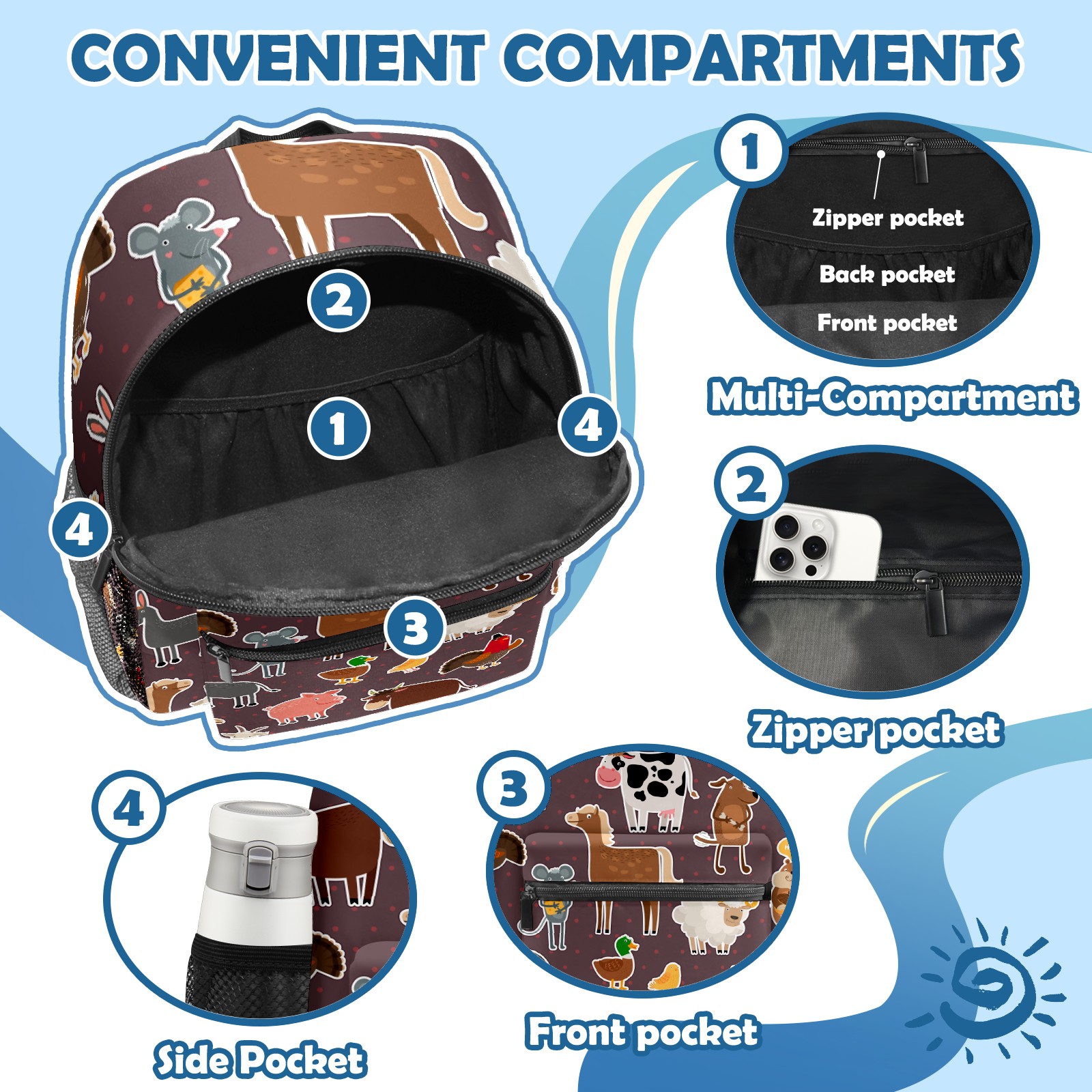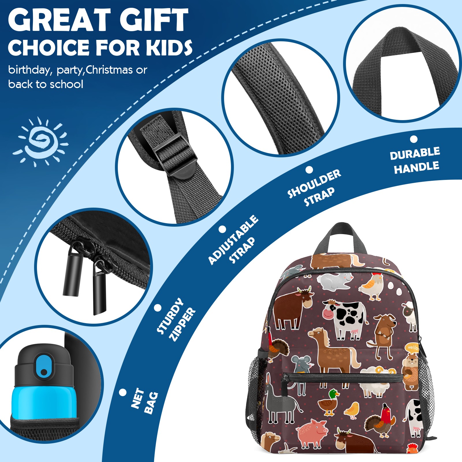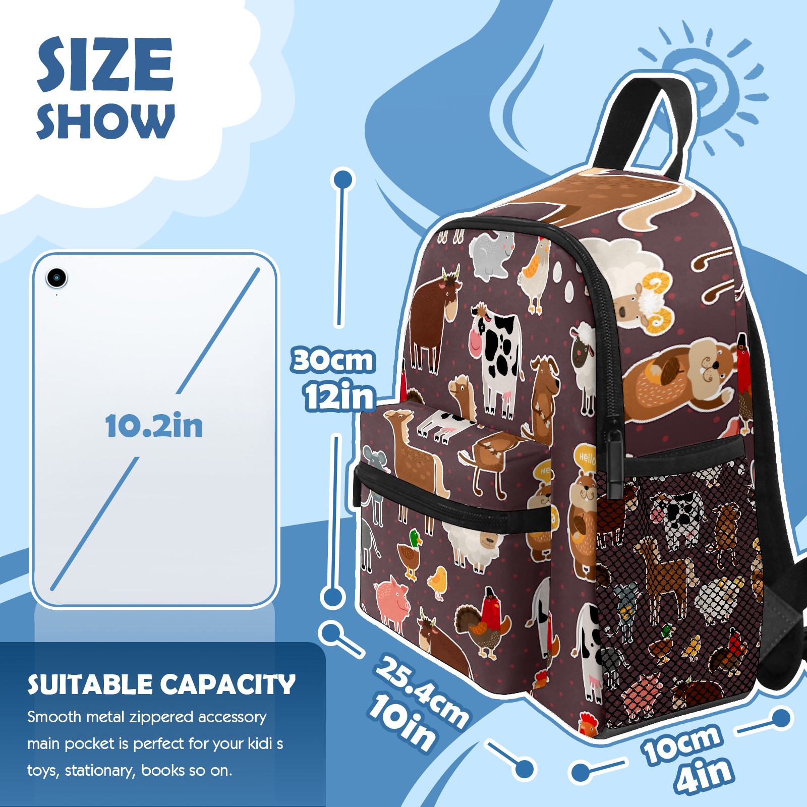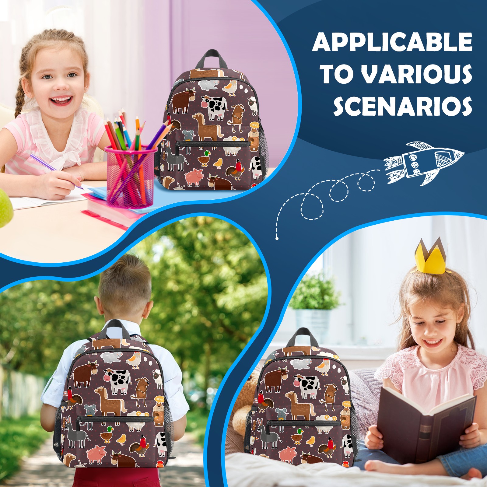 LBTIUC Schoolbag for Boys Girls Cute Kid's Toddler Backpack Farm Animal Cow And Sheep, Pig And Horse Children Bag, One Size (A01E18011)