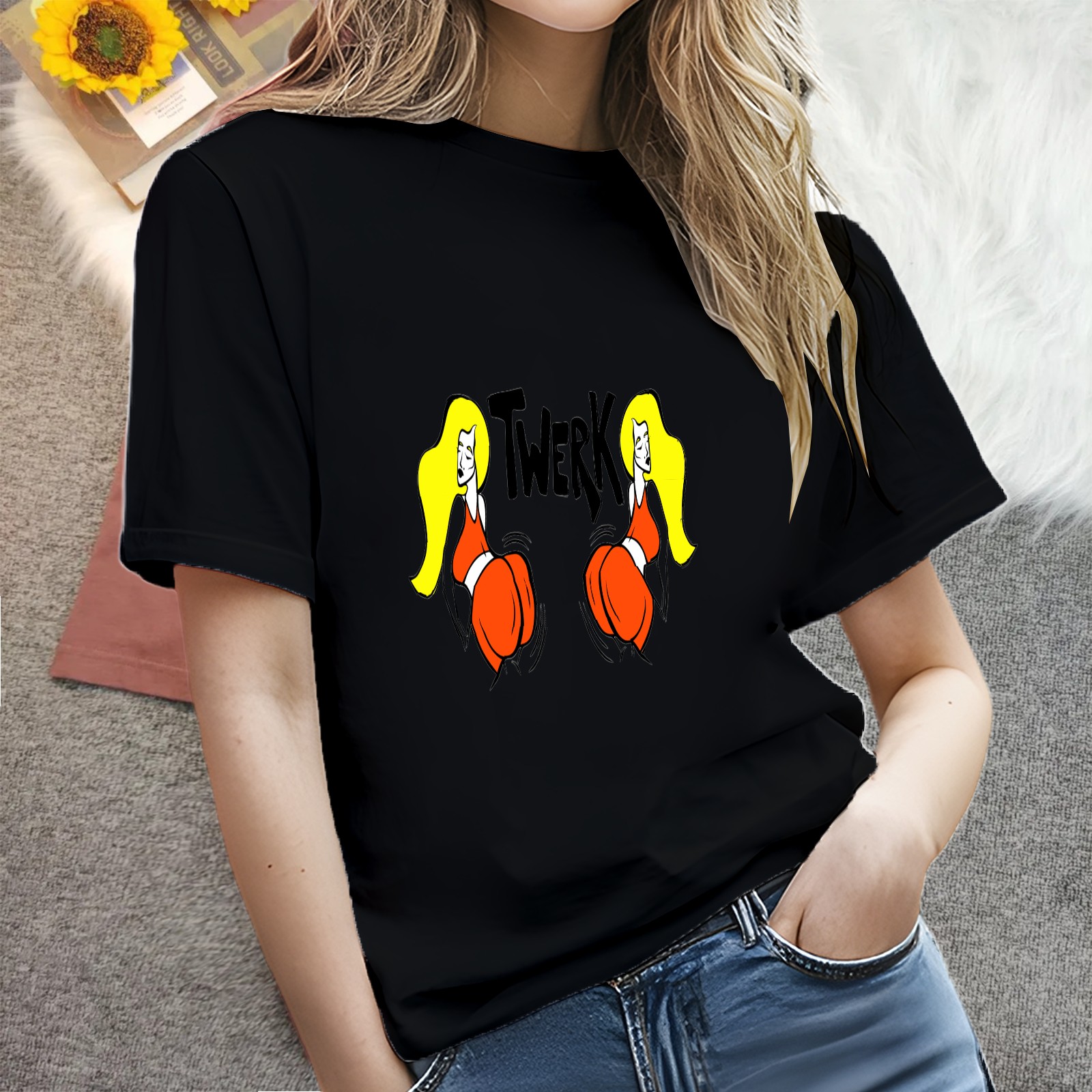 Ladies TWERK Casual Versatile Short Sleeve T-shirt Fashion Round Neck T-shirt for Outdoor Daily Wear Suitable As a Holiday Gift for Her