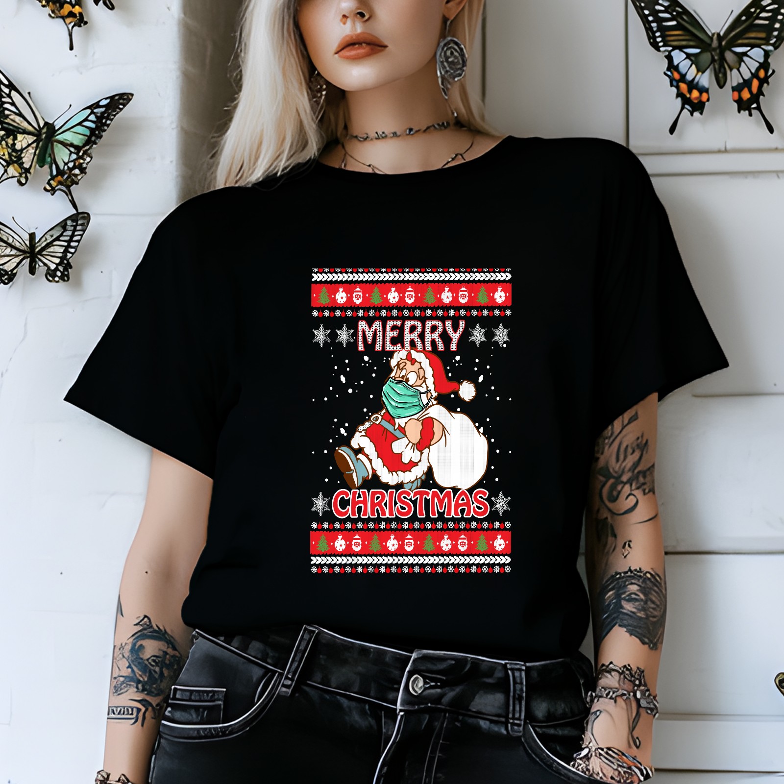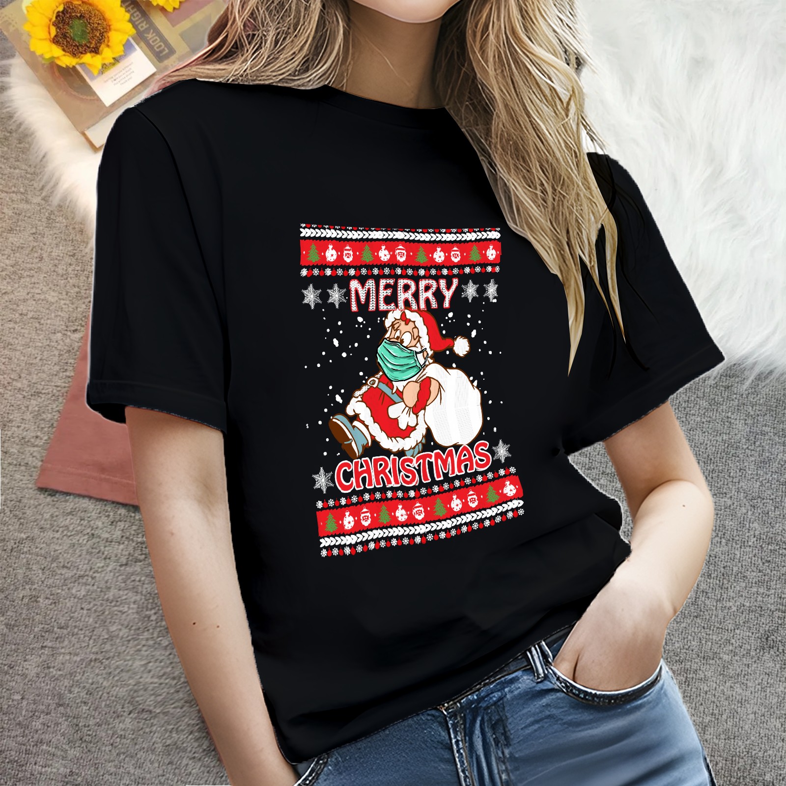 Ladies Vintage Christmas Casual Versatile Short Sleeve T-shirt Fashion Round Neck T-shirt for Outdoor Daily Wear Suitable As a Holiday Gift for Her
