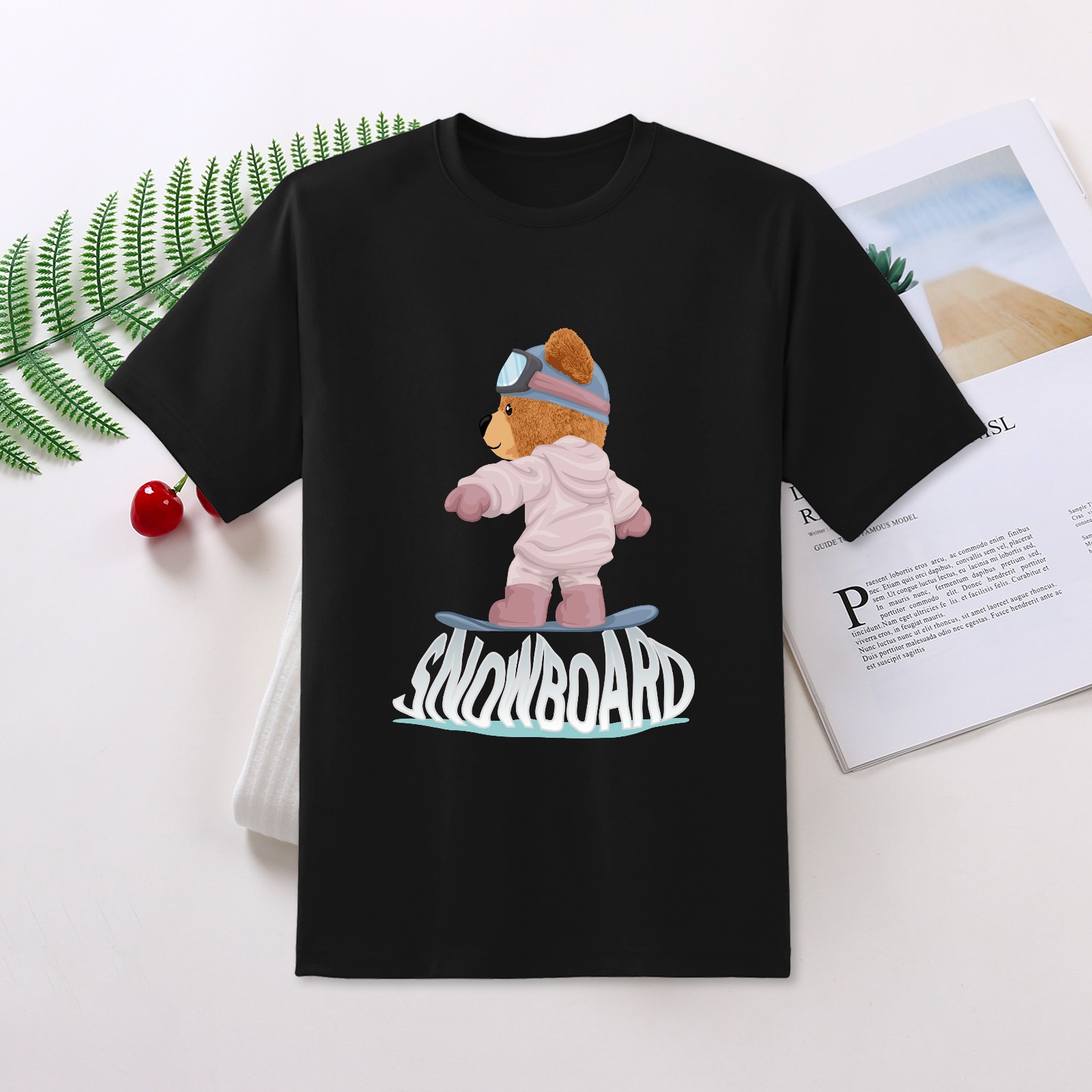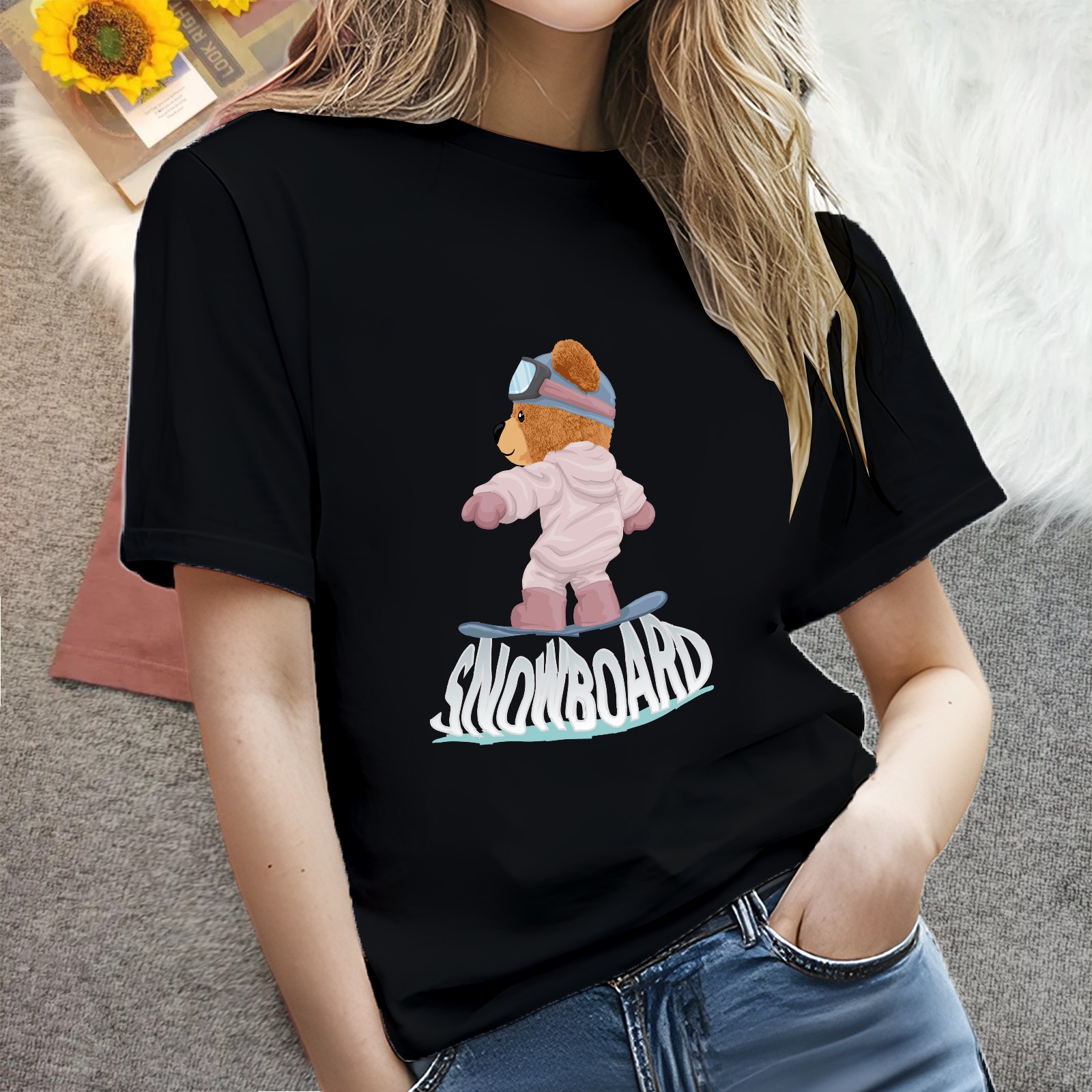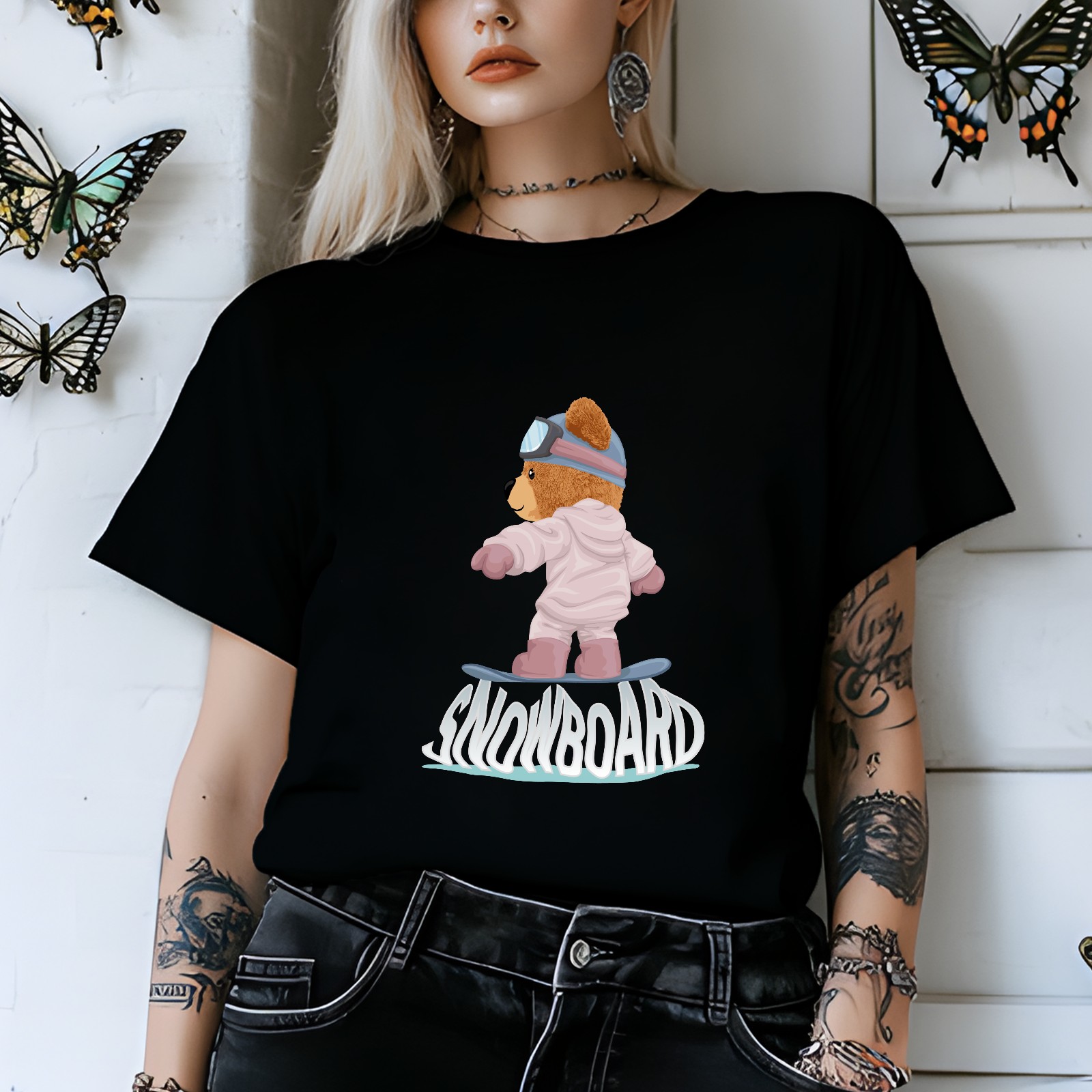 Ladies Snowboard Casual Versatile Short Sleeve T-shirt Fashion Round Neck T-shirt for Outdoor Daily Wear Suitable As a Holiday Gift for Her