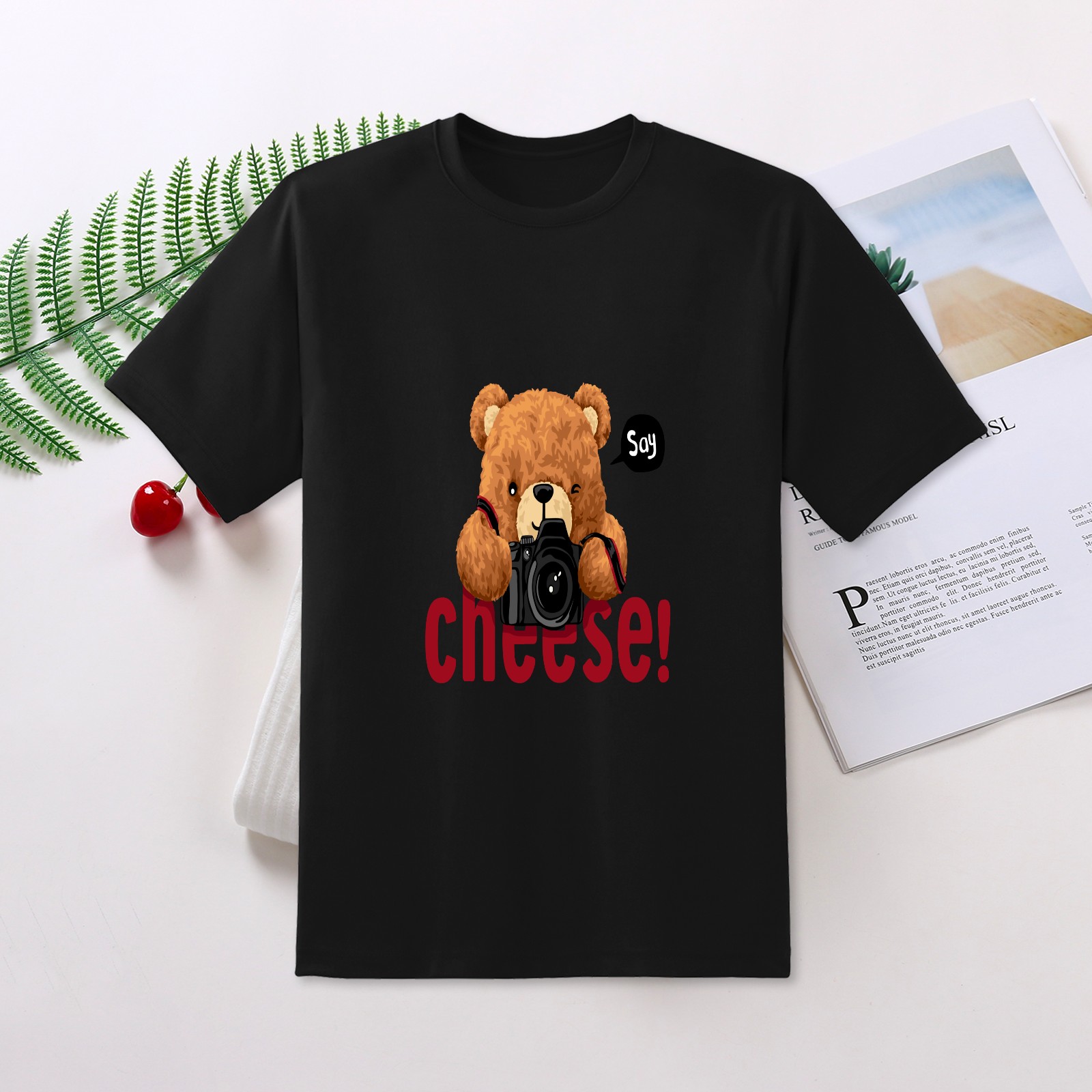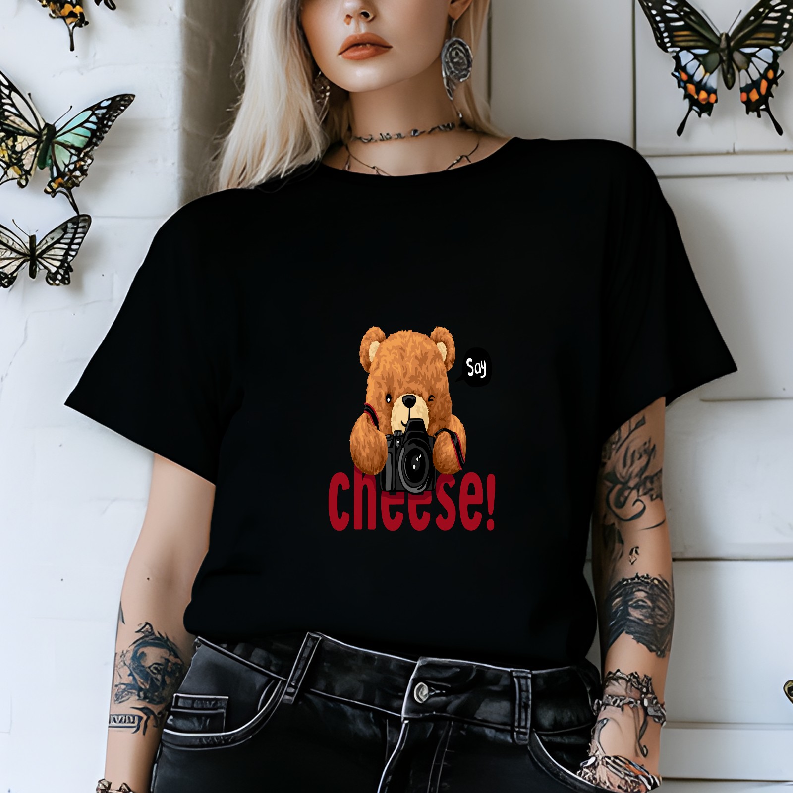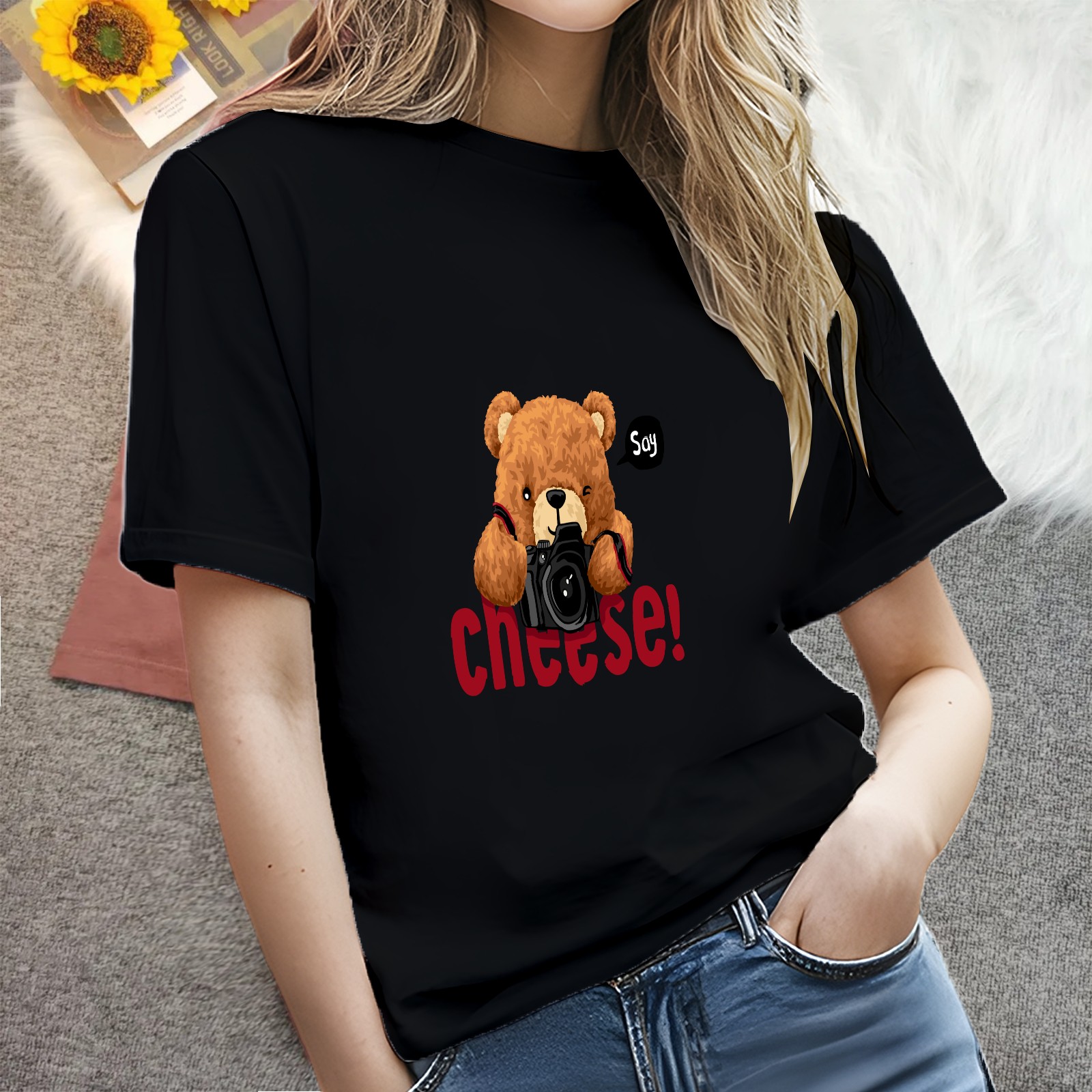 Ladies Say Cheese Casual Versatile Short Sleeve T-shirt Fashion Round Neck T-shirt for Outdoor Daily Wear Suitable As a Holiday Gift for Her