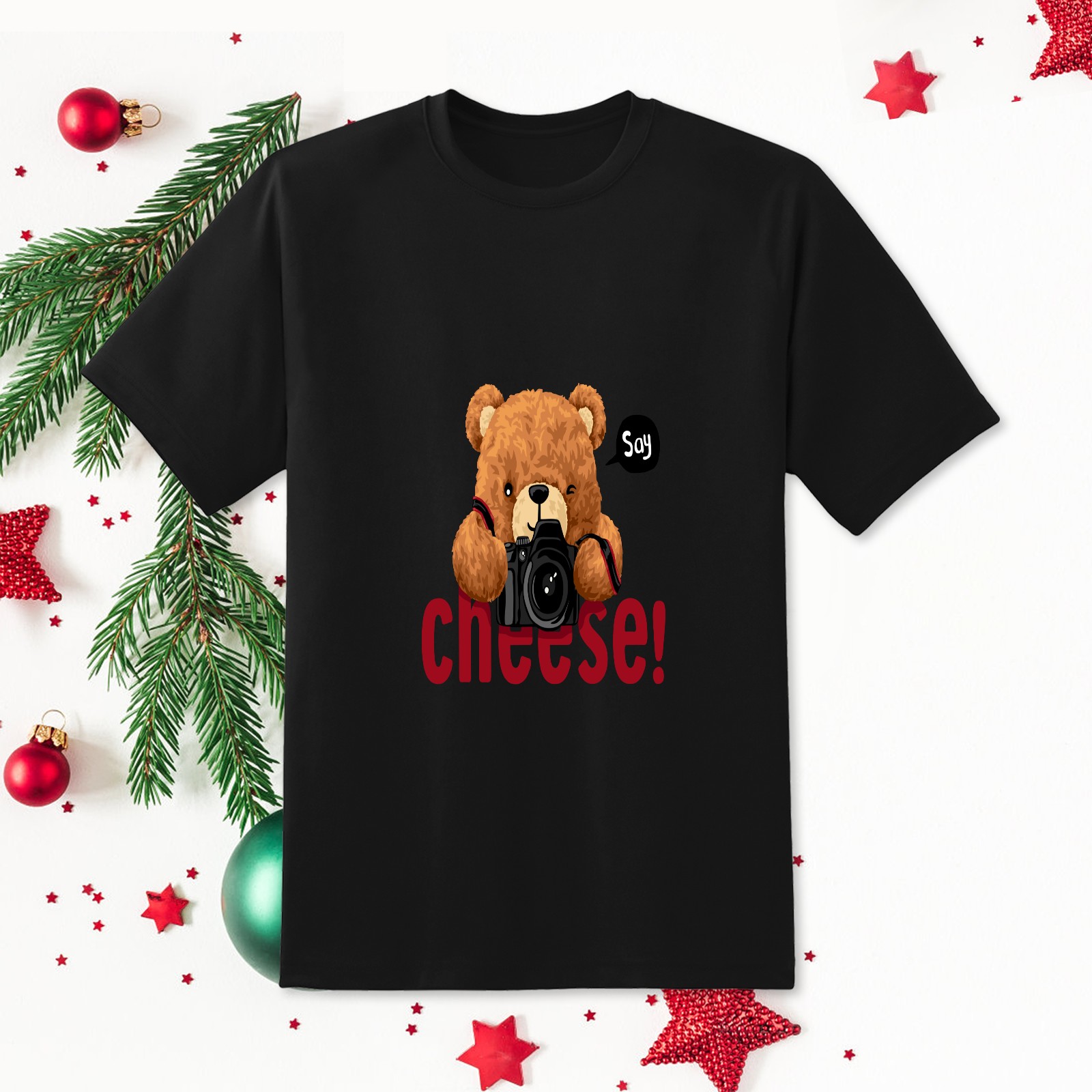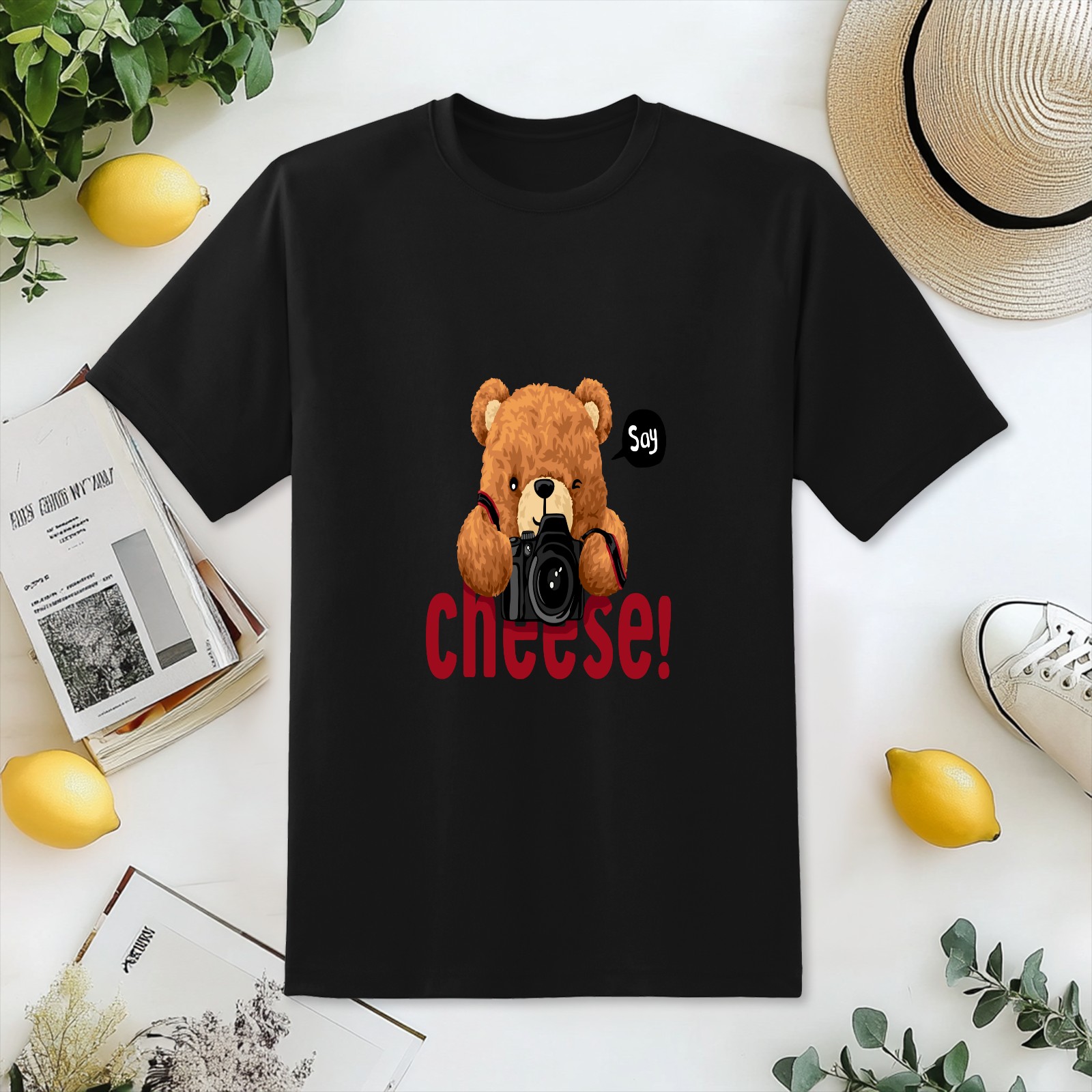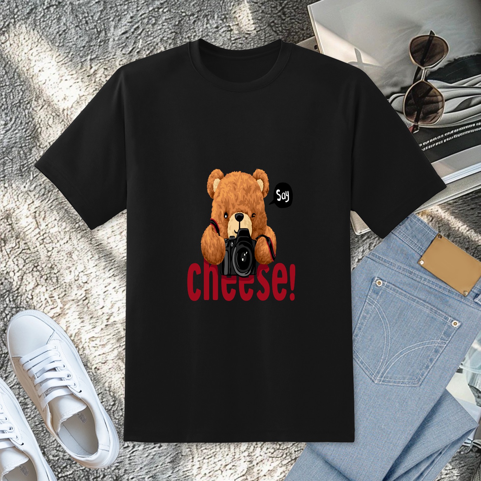 Ladies Say Cheese Casual Versatile Short Sleeve T-shirt Fashion Round Neck T-shirt for Outdoor Daily Wear Suitable As a Holiday Gift for Her