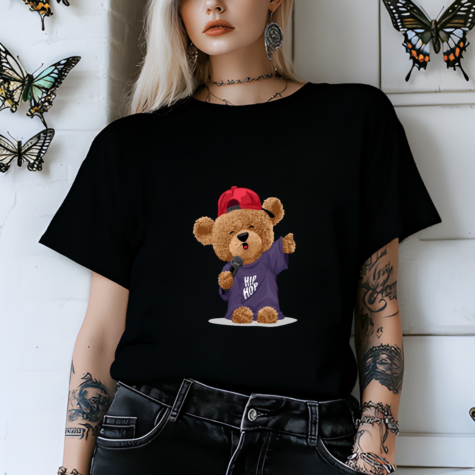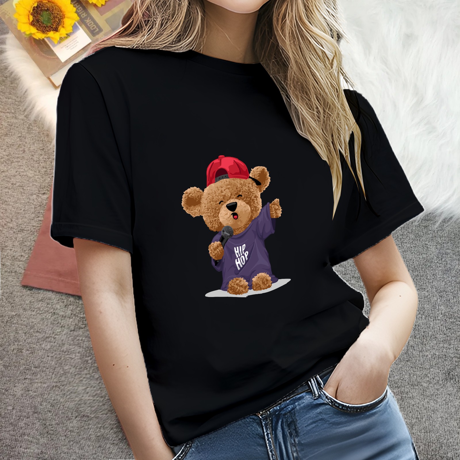 Ladies Hip Hop Casual Versatile Short Sleeve T-shirt Fashion Round Neck T-shirt for Outdoor Daily Wear Suitable As a Holiday Gift for Her