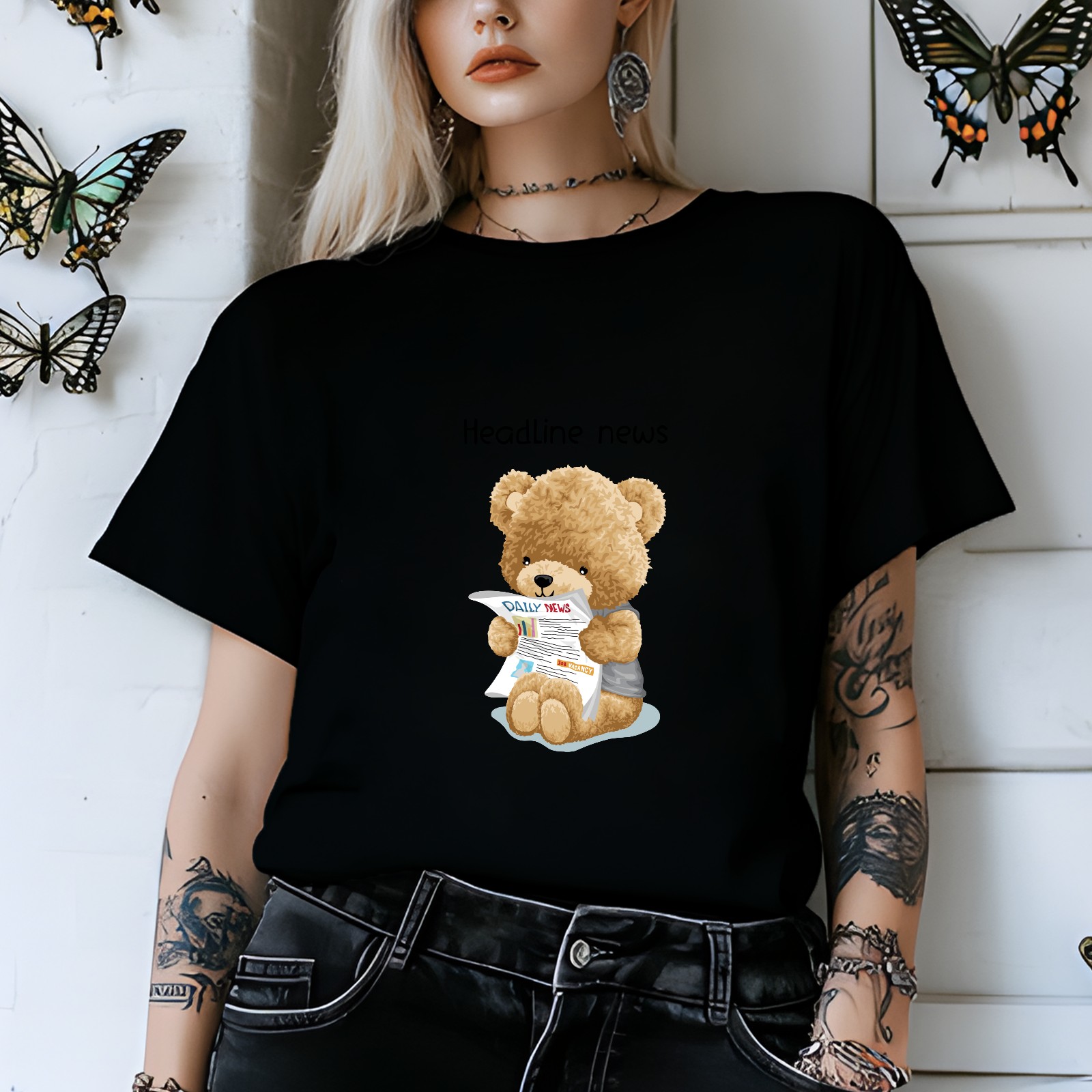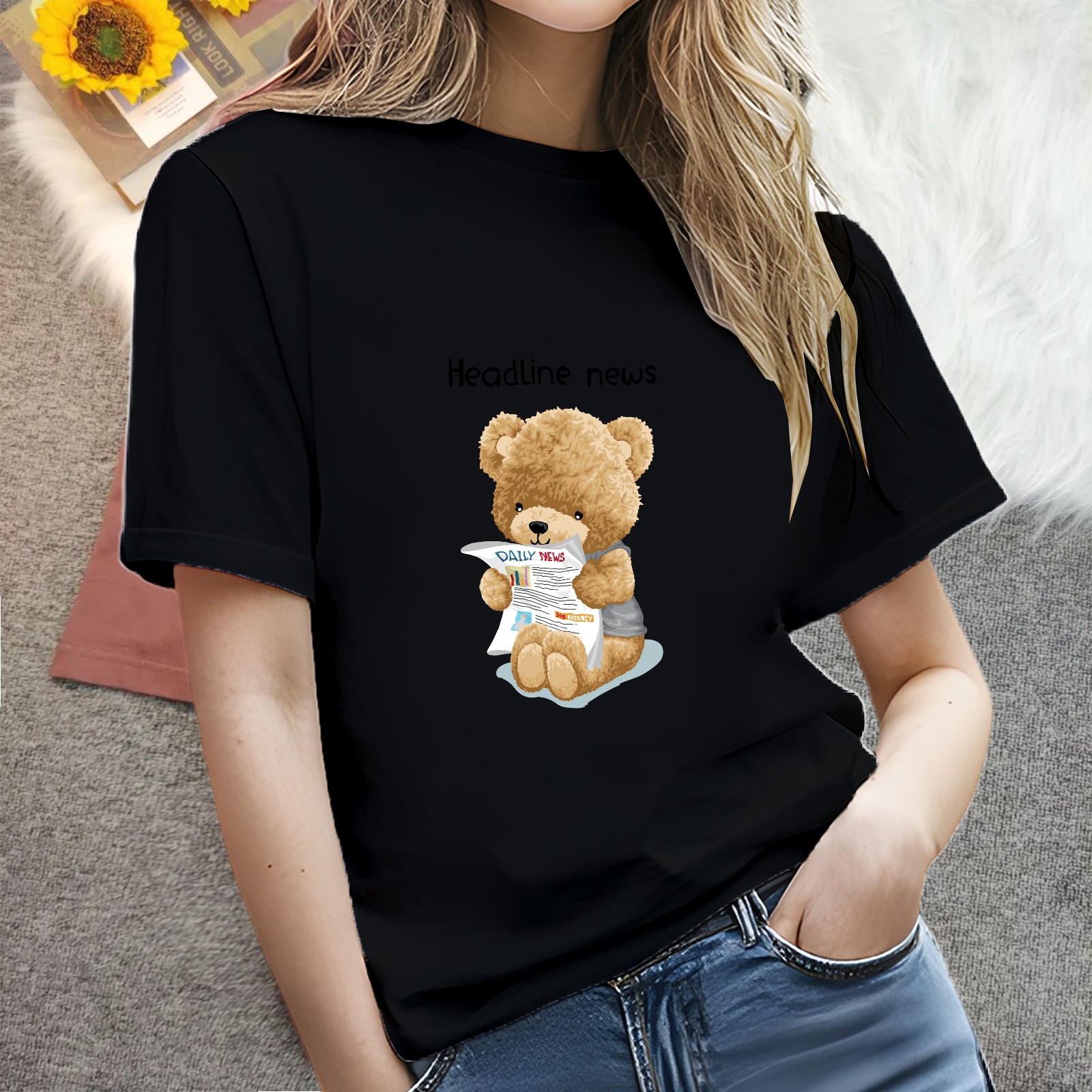 Ladies Headline News Casual Versatile Short Sleeve T-shirt Fashion Round Neck T-shirt for Outdoor Daily Wear Suitable As a Holiday Gift for Her