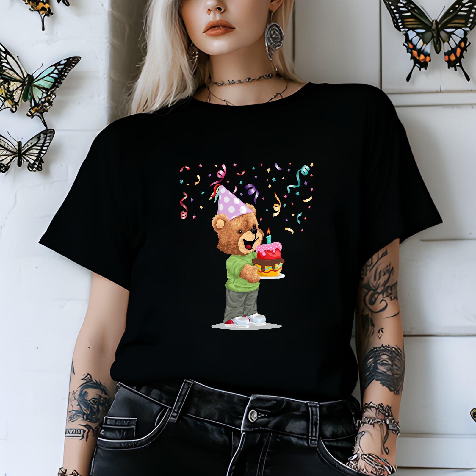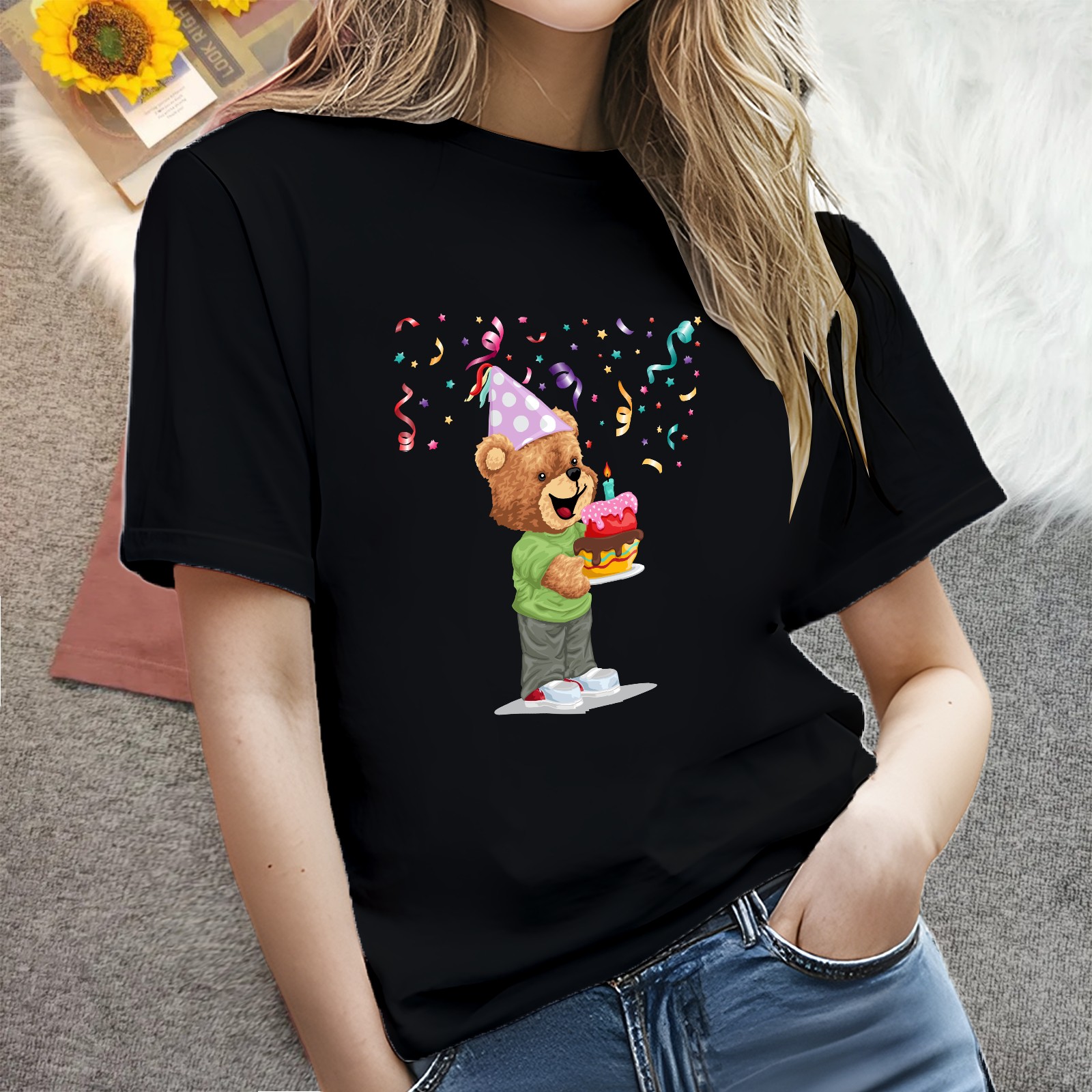 Ladies Happy Casual Versatile Short Sleeve T-shirt Fashion Round Neck T-shirt for Outdoor Daily Wear Suitable As a Holiday Gift for Her