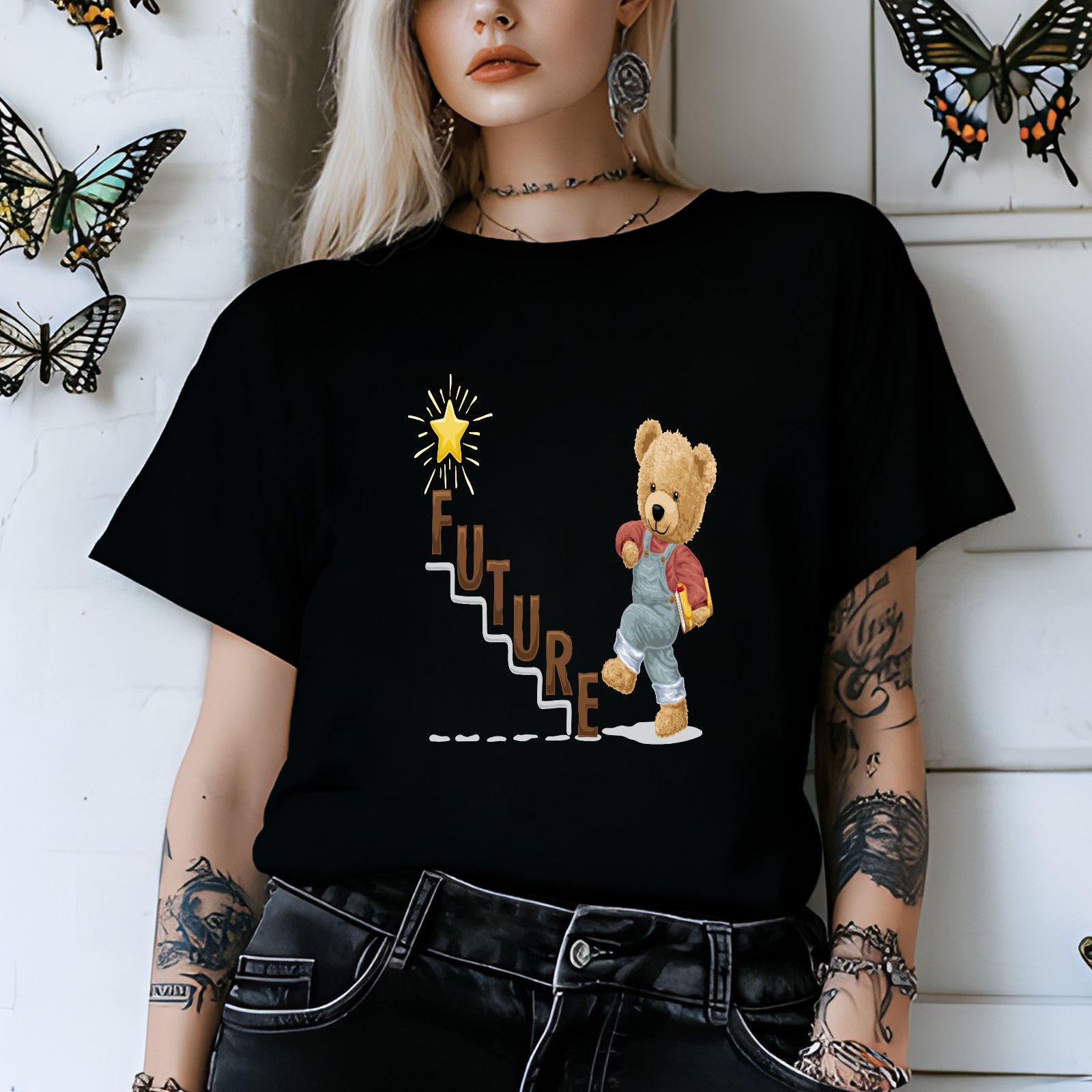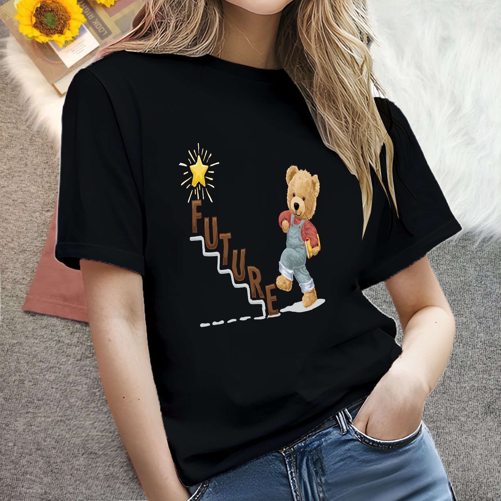 Ladies Future Casual Versatile Short Sleeve T-shirt Fashion Round Neck T-shirt for Outdoor Daily Wear Suitable As a Holiday Gift for Her