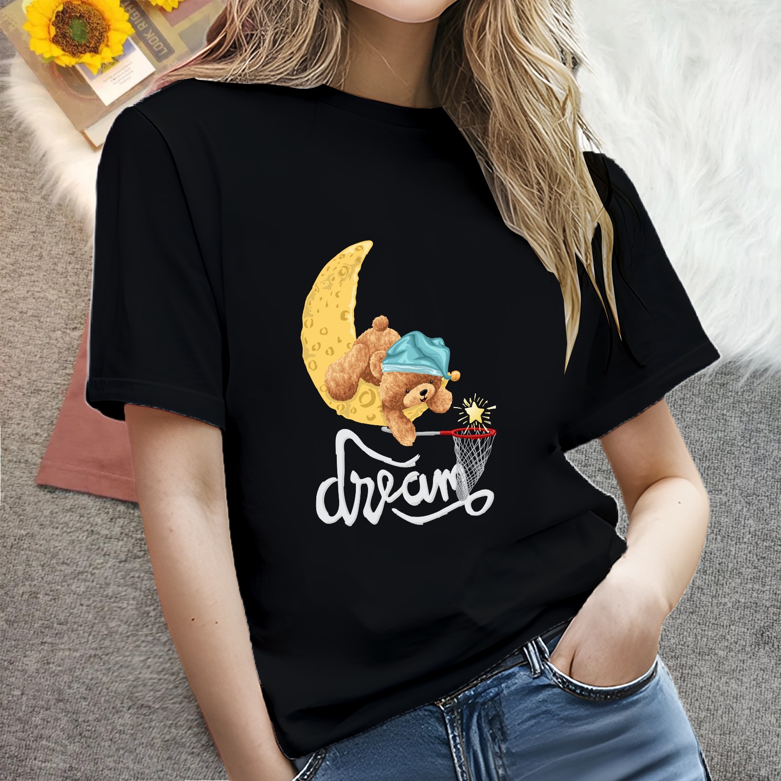 • Ladies #replace# Casual Versatile Short Sleeve T-shirt Fashion Round Neck T-shirt for Outdoor Daily Wear Suitable As a Holiday Gift for Her