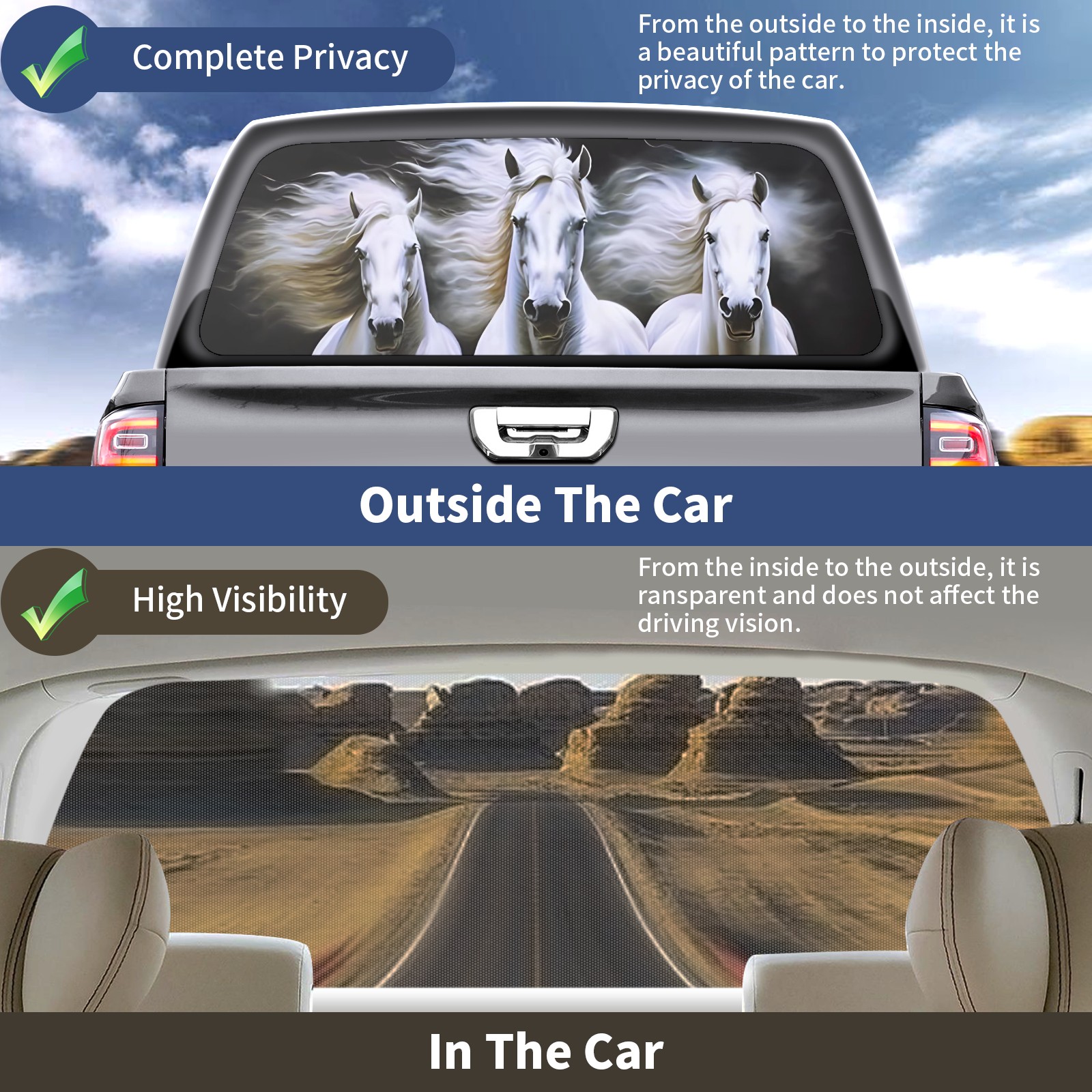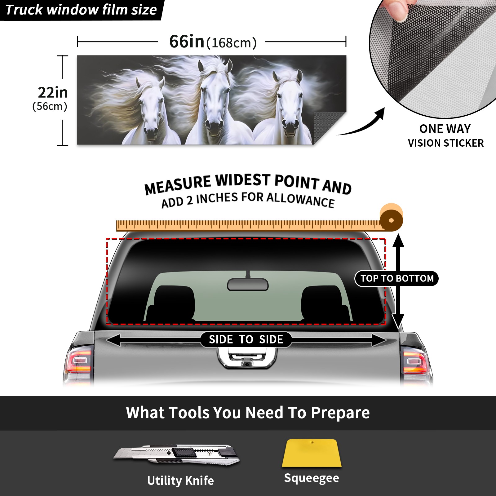 • <p><strong>Truck Rear Window Graphics Decals Pickup Trucks Back Window Film Stickers 66" x 22" Perforated Vinyl Wrap Stickers Decorations for Car Rear Window</strong></p><p><strong><br /></strong></p><p><strong>Features :</strong></p><p>- Size of the rear window decals for trucks is 66x22 Inches (168x56cm).</p><p>- High quality perforated vinyl window film, one way vision sticker.</p><p>- Perforated is see through from the inside but not from outside.</p><p>- Clear printing, waterproof and durable.</p><p>- The car back window graphics stickers fits most truck and makes your vehicle more beautiful.&nbsp;</p><p><br /></p><p><strong>【Installation Instructions】</strong></p><p><strong>1. CLEAN SURFACE -</strong> Clean the rear window thoroughly and make sure the surface clean.</p><p><strong>2. STICK THE DECALS -</strong> Tear off the paper on the back and stick the decal on the window.</p><p><strong>3. SCRAPE OFF AIR BUBBLES -</strong> Use a squeegee or other card to scrape off the excess air bubbles.</p><p><strong>4. TRIM THE EXCESS -</strong> Use a knife to cut off the excess stickers of the window, finally complete.</p><p><br /></p><p>1. Please measure the size before purchasing, back window graphics decal for truck can be cut to your desired size.</p><p>2.The graphics stickers for truck back window is a great gift for yourself also can as a birthday / halloween / christmas gift for your friends and family.</p>